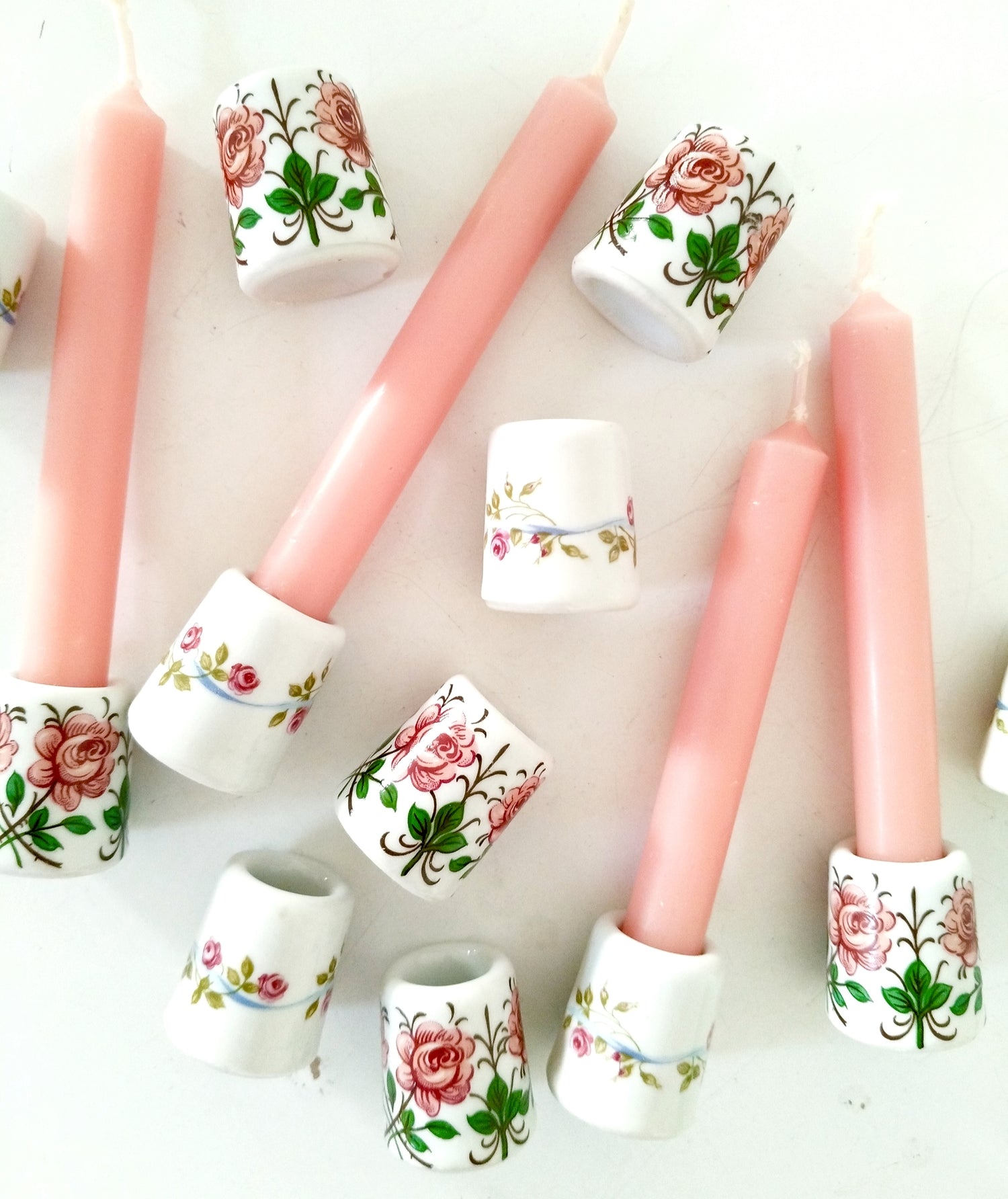 2 mini-bougeoirs en porcelaine Rösler Exquisit West Germany au choix + 2 bougies