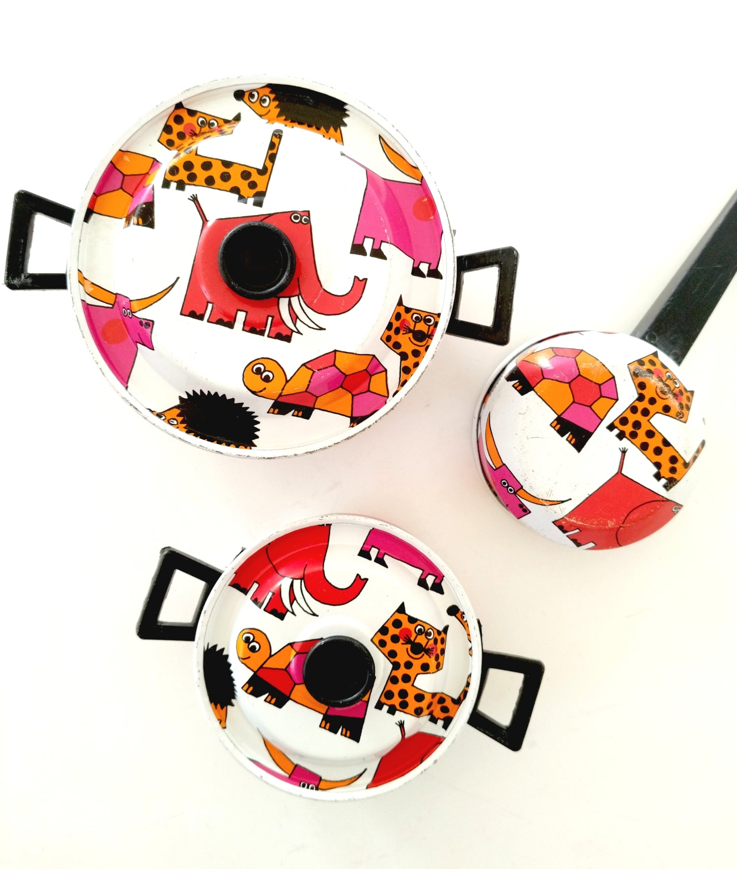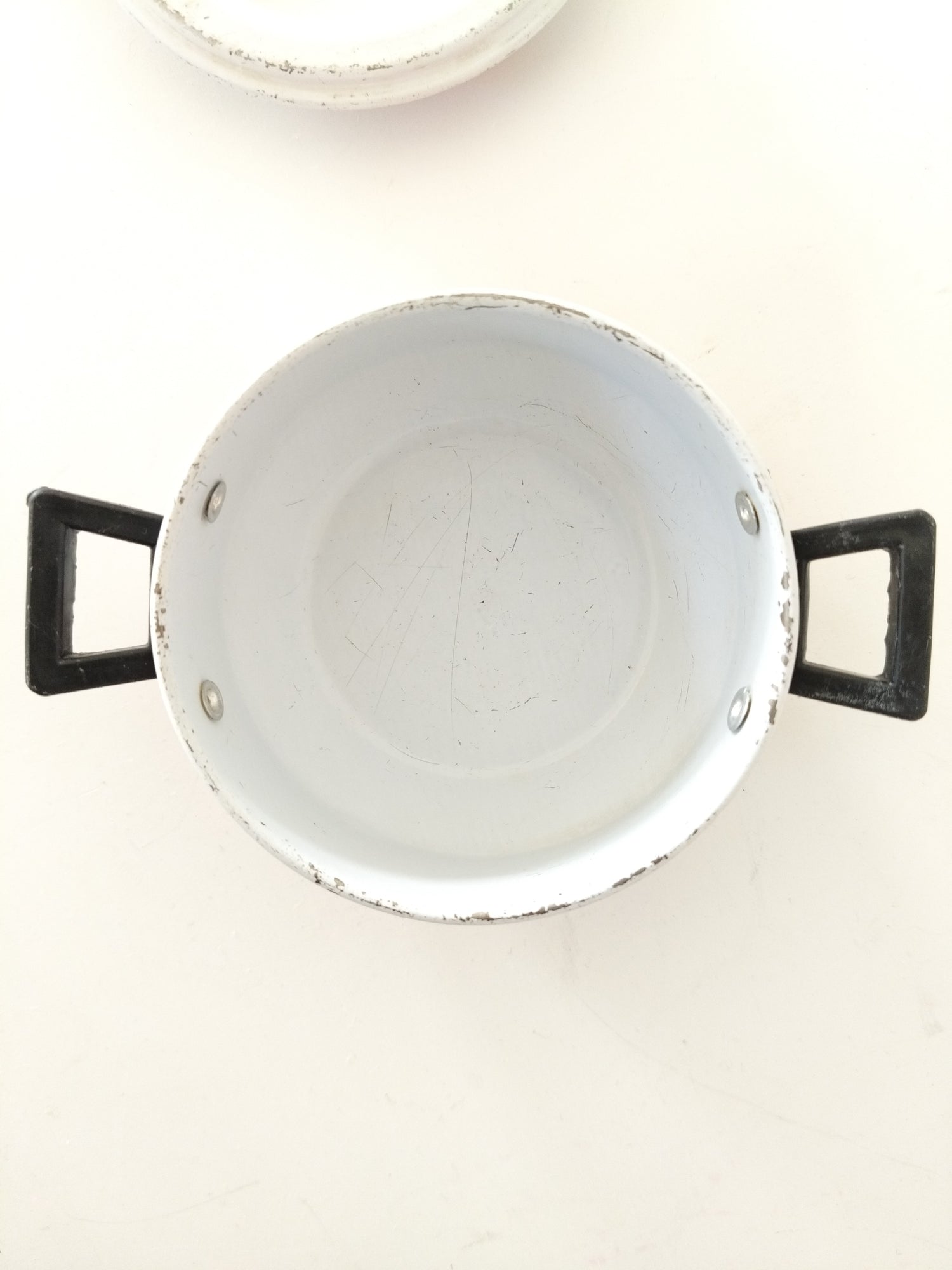 Métal - voir photos pour état, encore adorables! 9, 7 et 6cm de diamètre sans les anses.