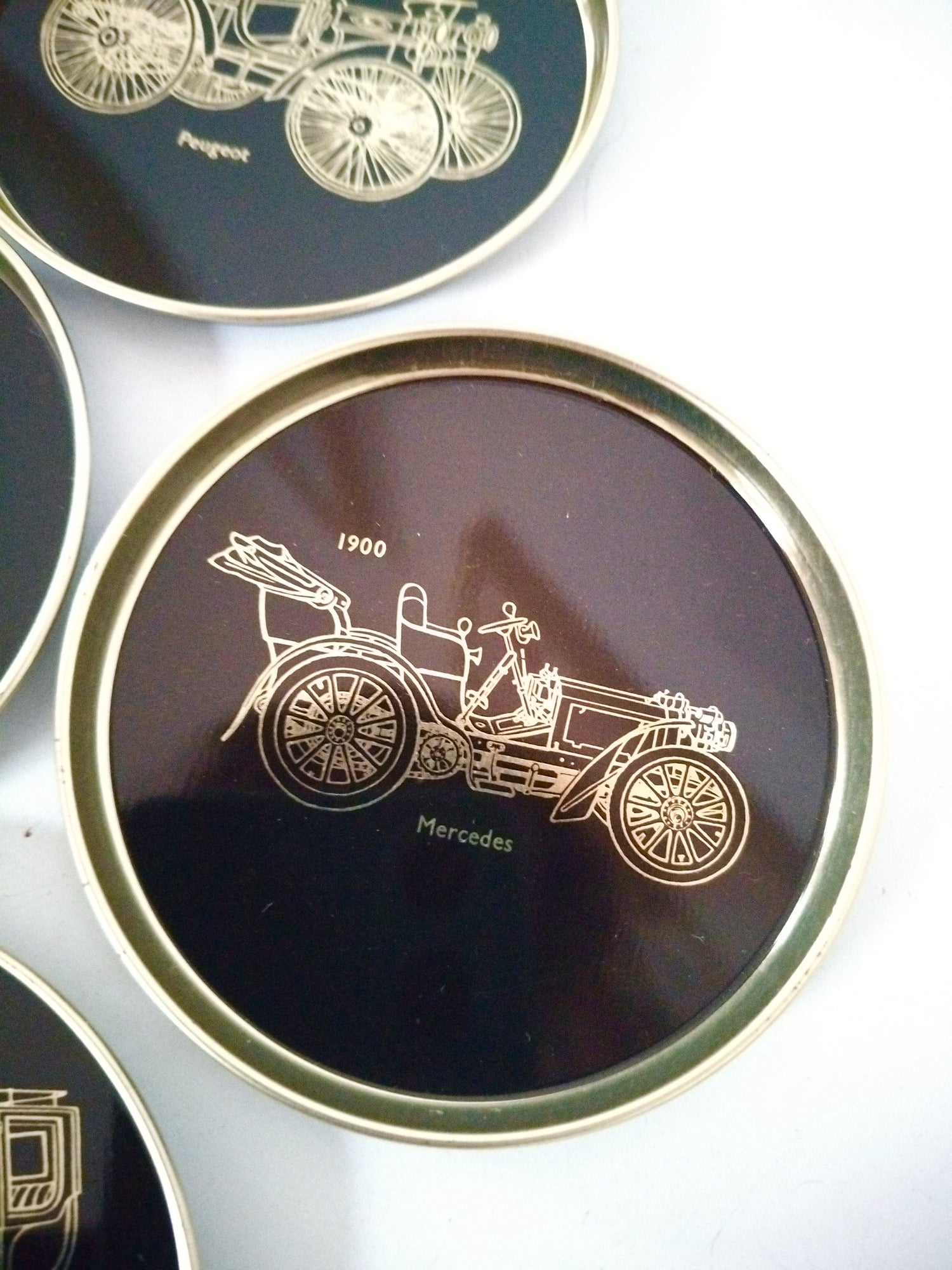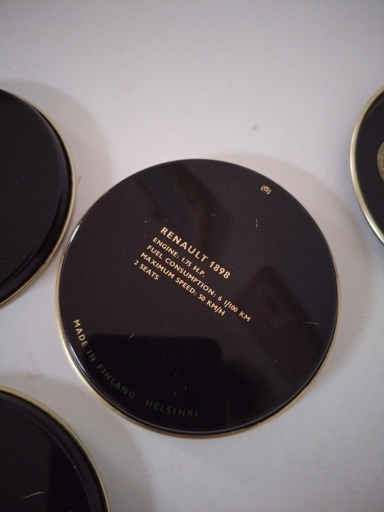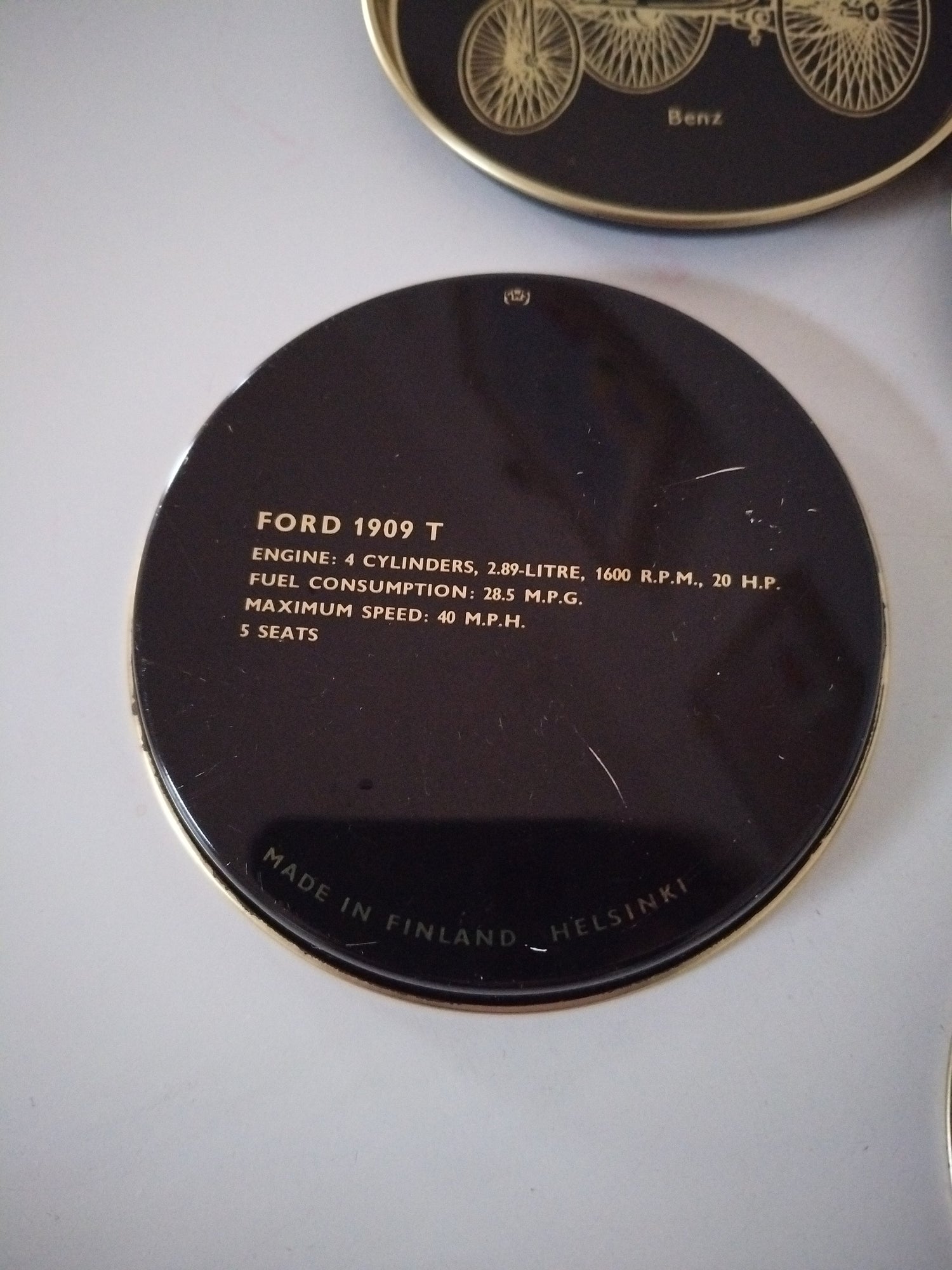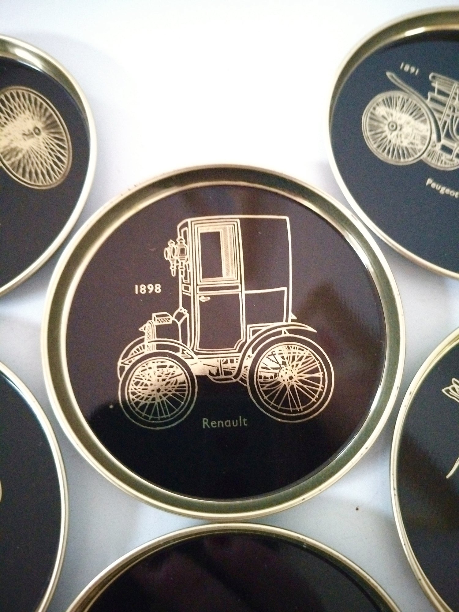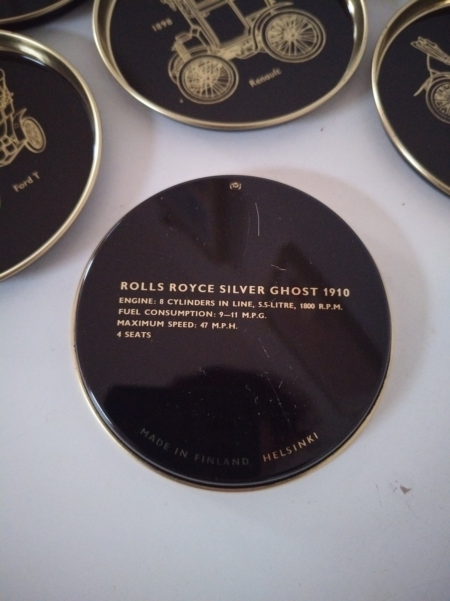 6 sous-verres métalliques voitures anciennes fin 1800 début 1900 made in Finlande