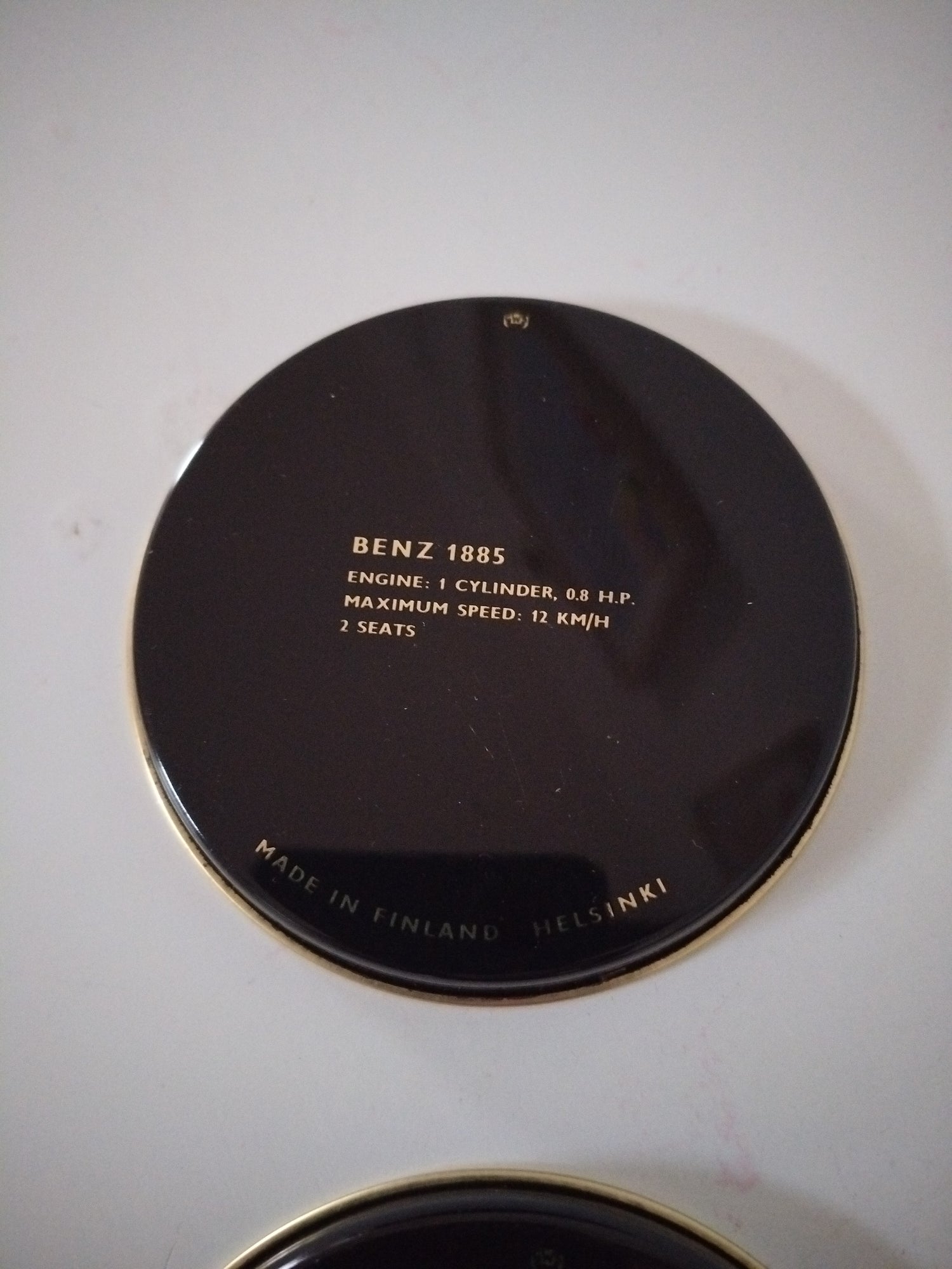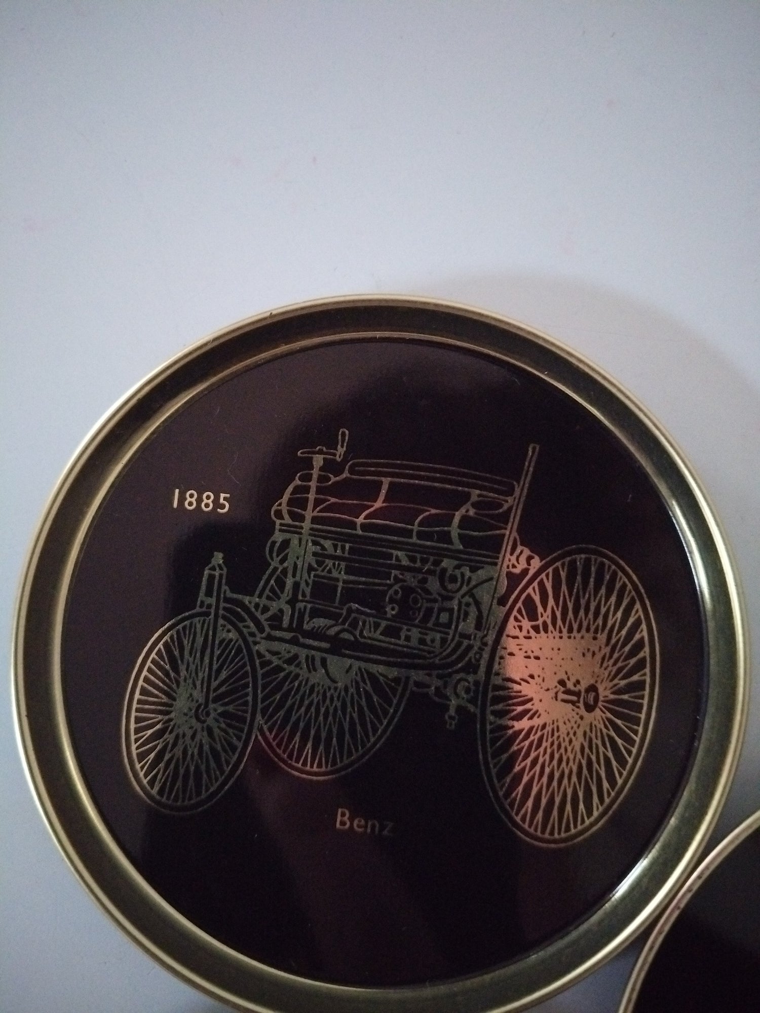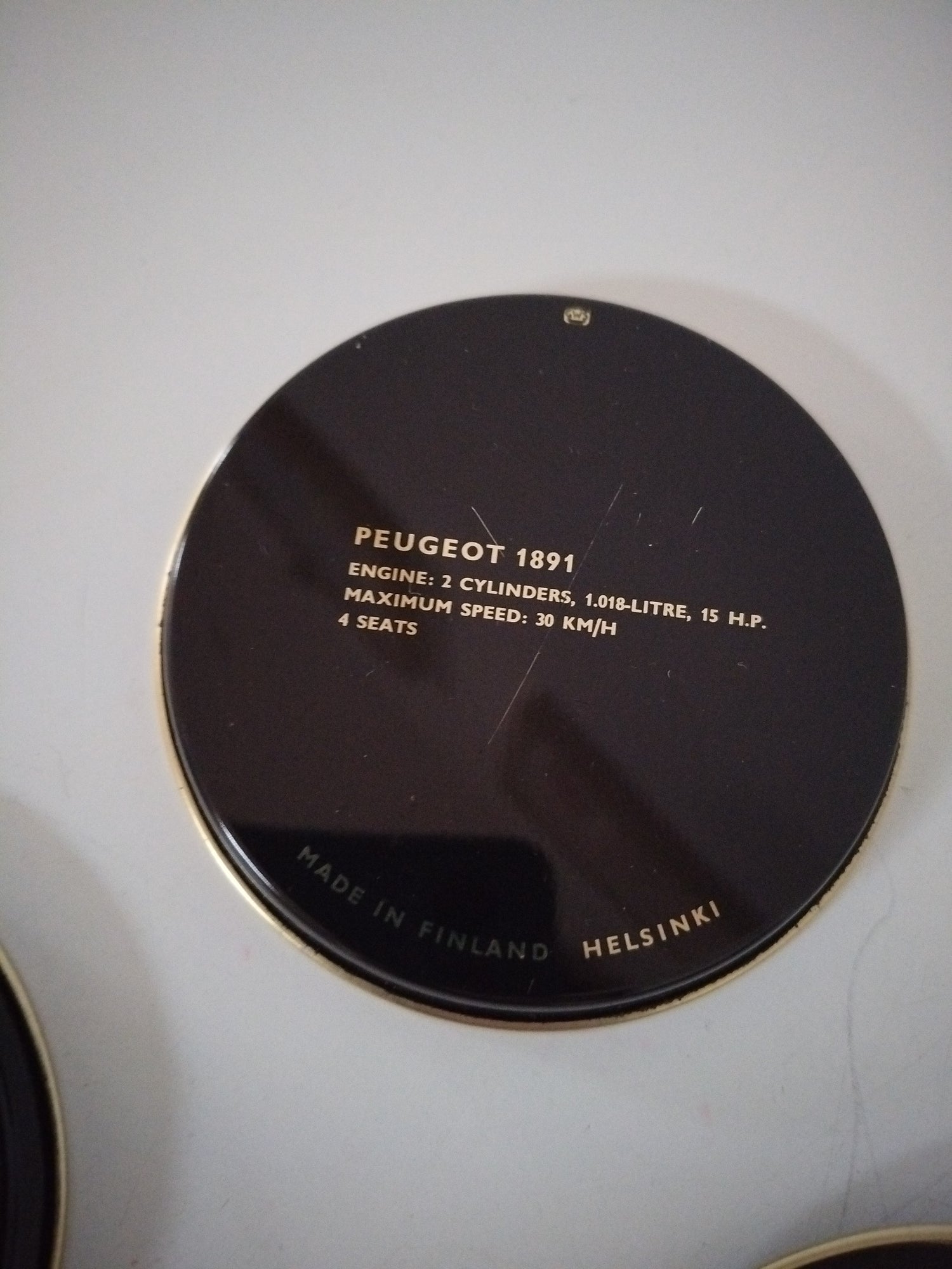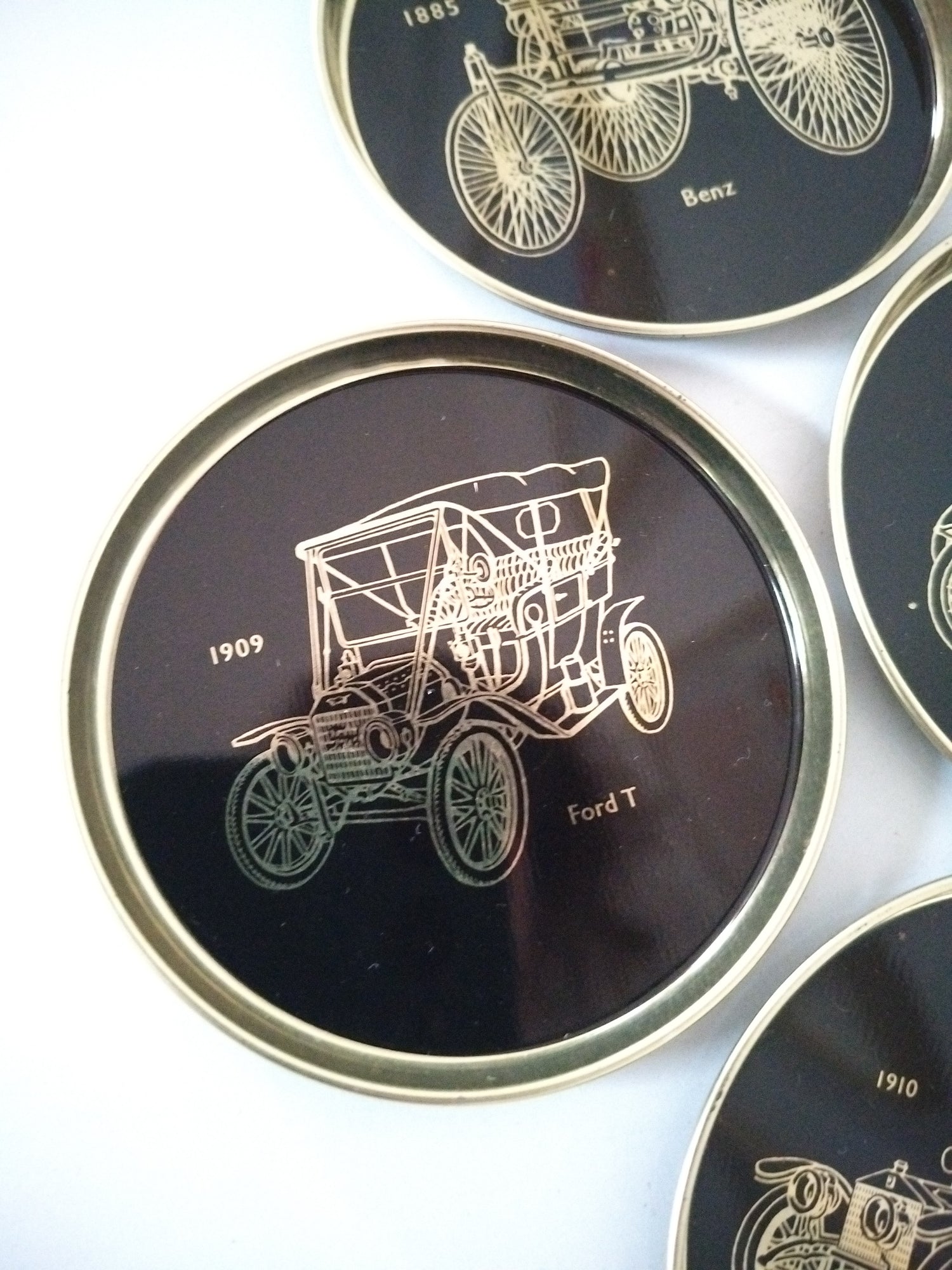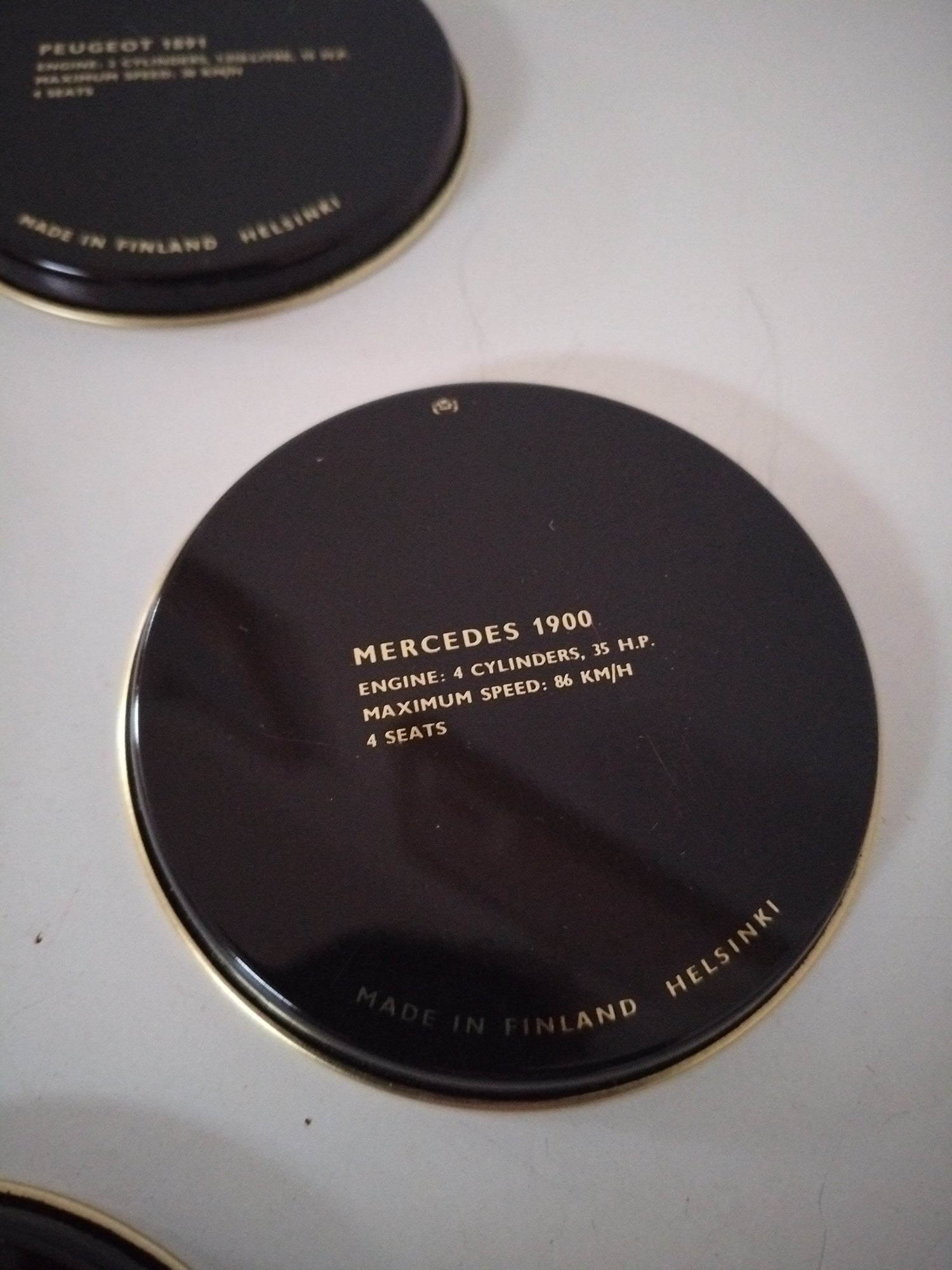 6 sous-verres métalliques voitures anciennes fin 1800 début 1900 made in Finlande