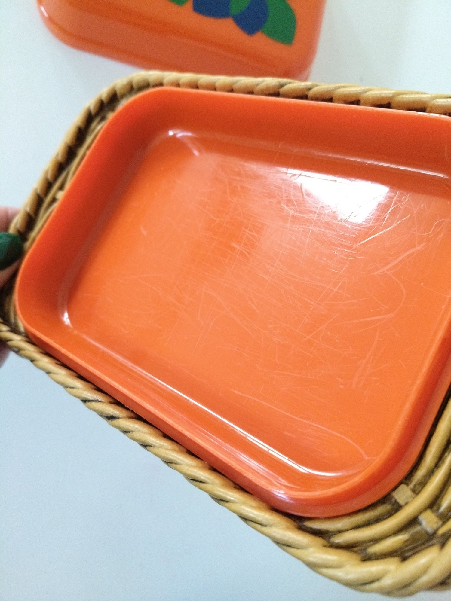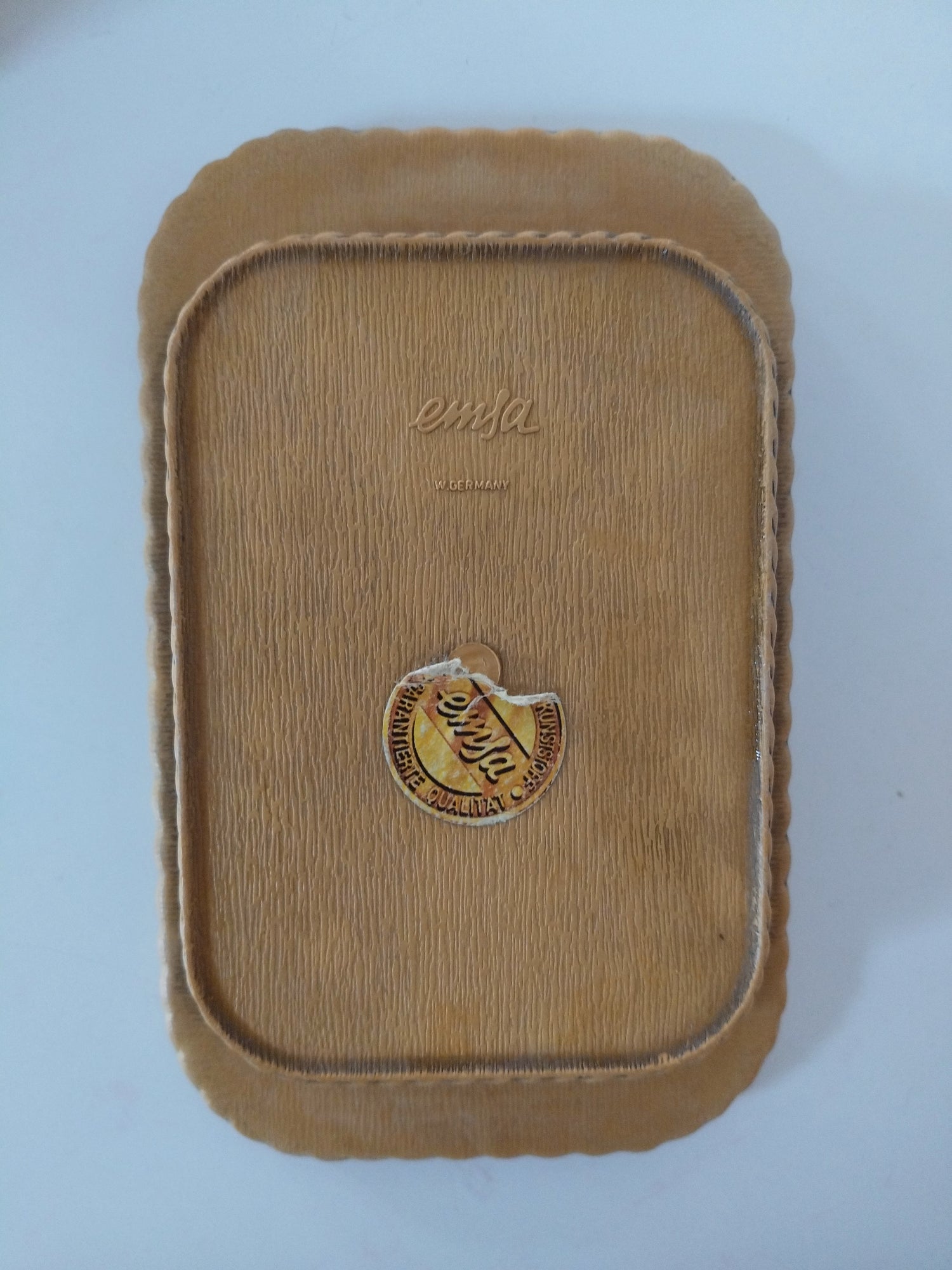 Tout plastique - marques d'usage visibles sur les photos, décor encore très beau, ce qui est rare. Intérieur bien rayé. 18 x 11cm (mesures max, base)