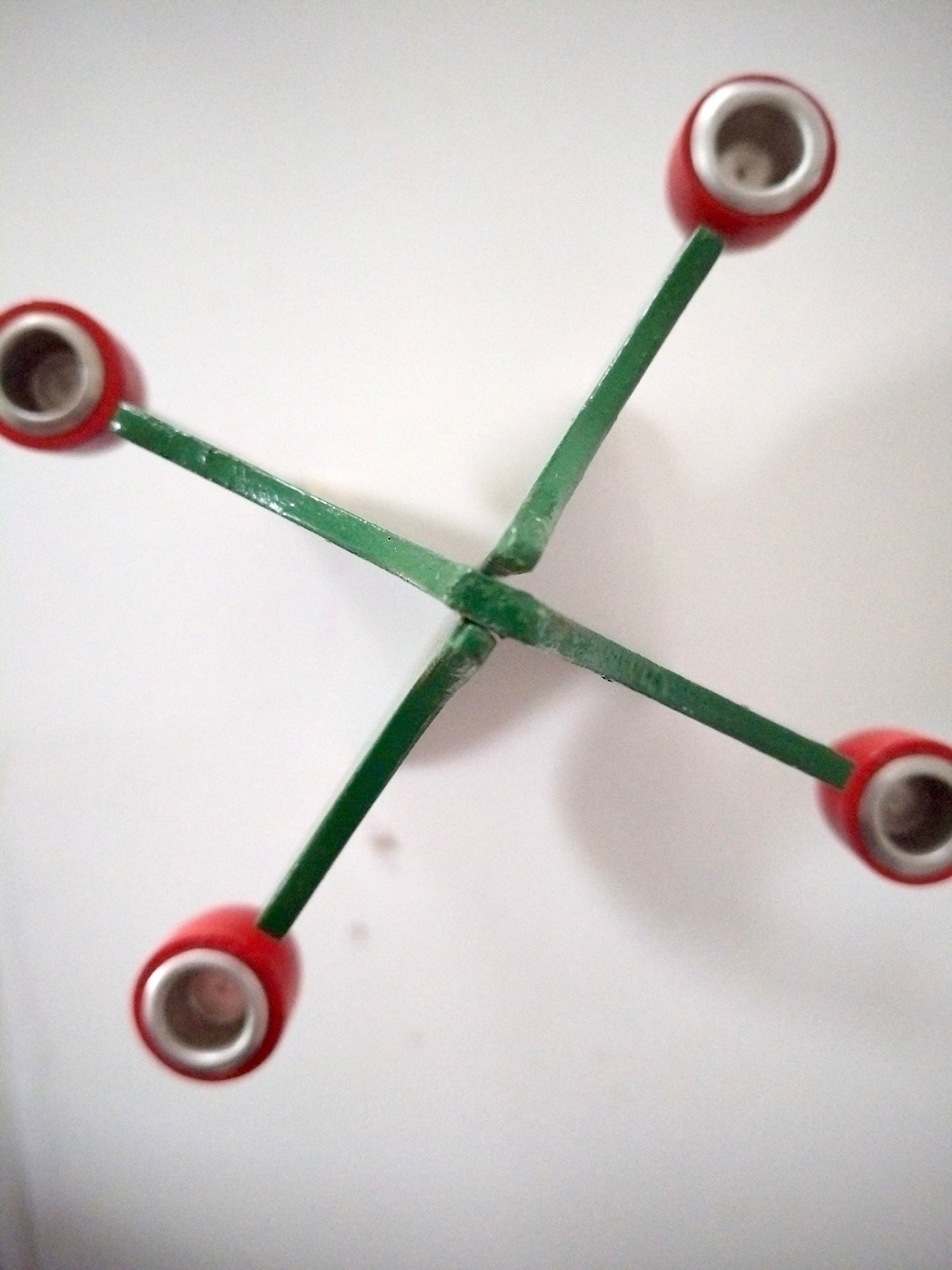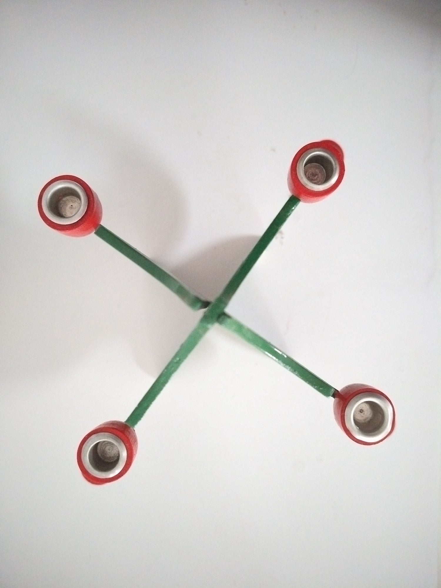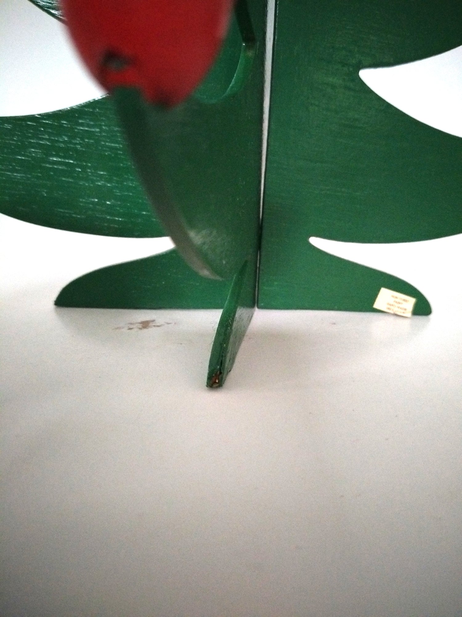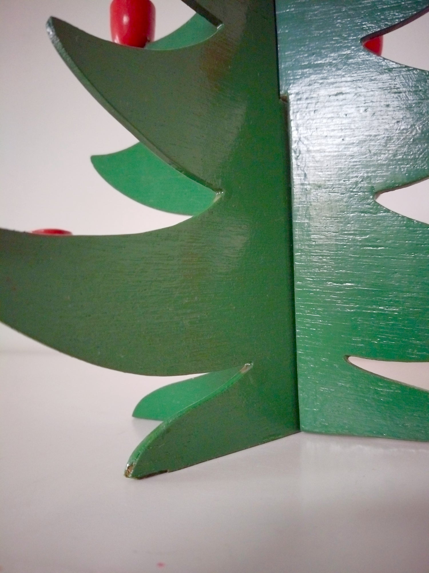 Bois, se démonte - quelques petites marques d'usage (dont petits éclats de peinture, un pied un peu abimé, ...), cf photos. Quelques petites imperfections de fabrication, normal ! 26cm de hauteur - 26cm de largeur.