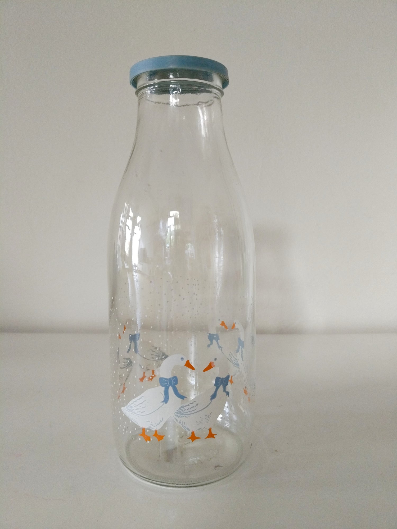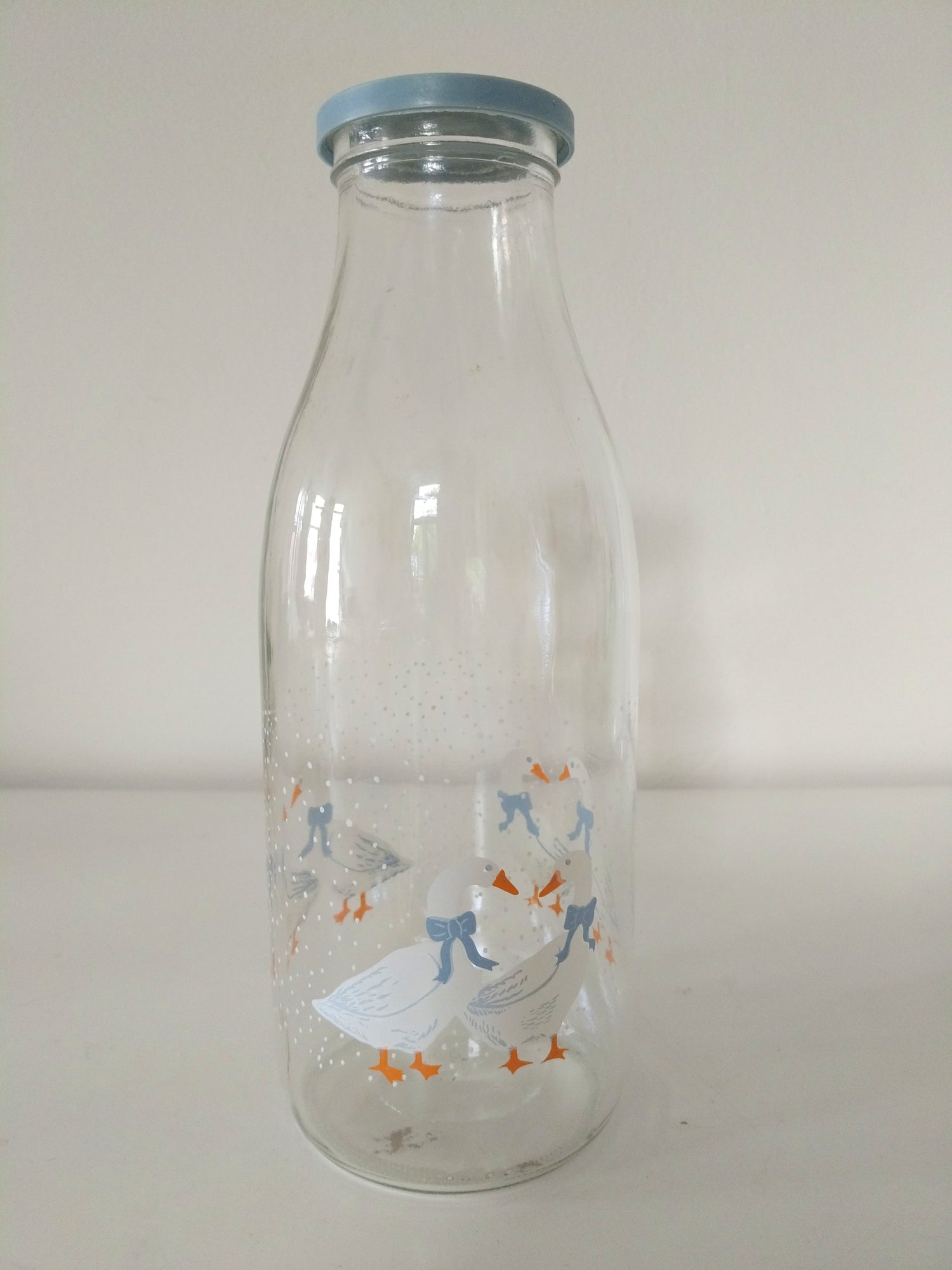 Verre et plastique - très bel état d'epoque, bouchon légèrement marqué - contenance de 104cl