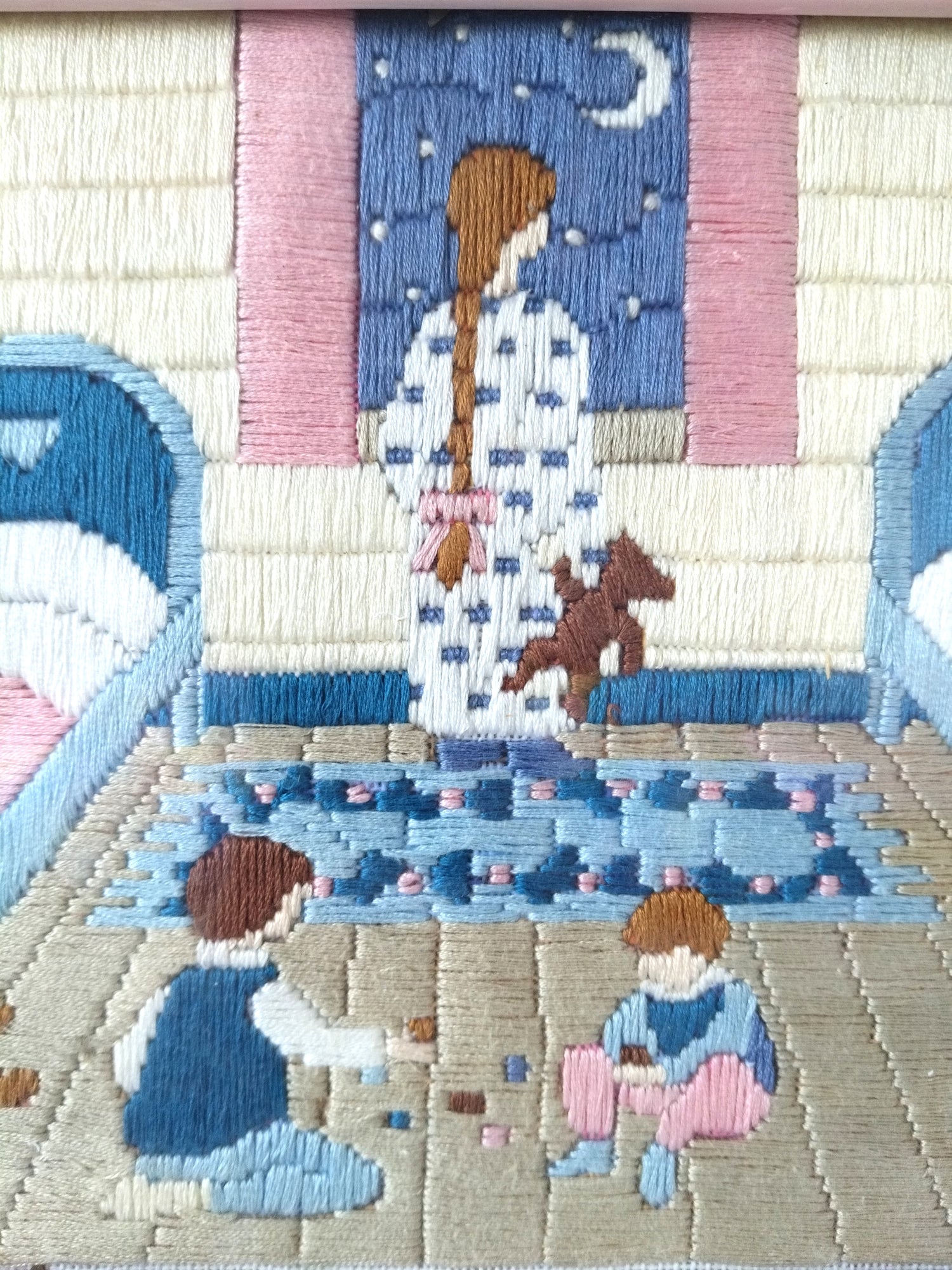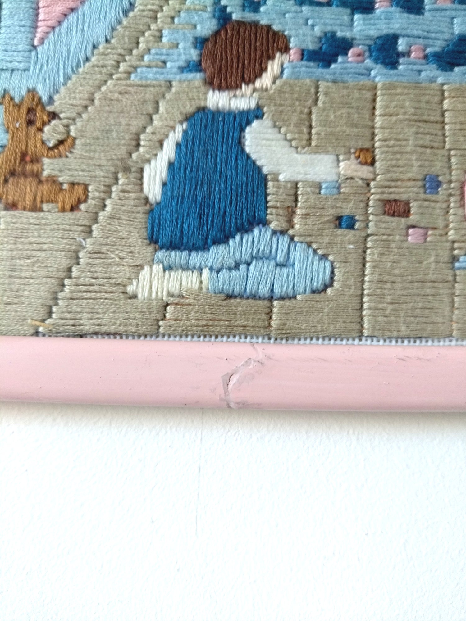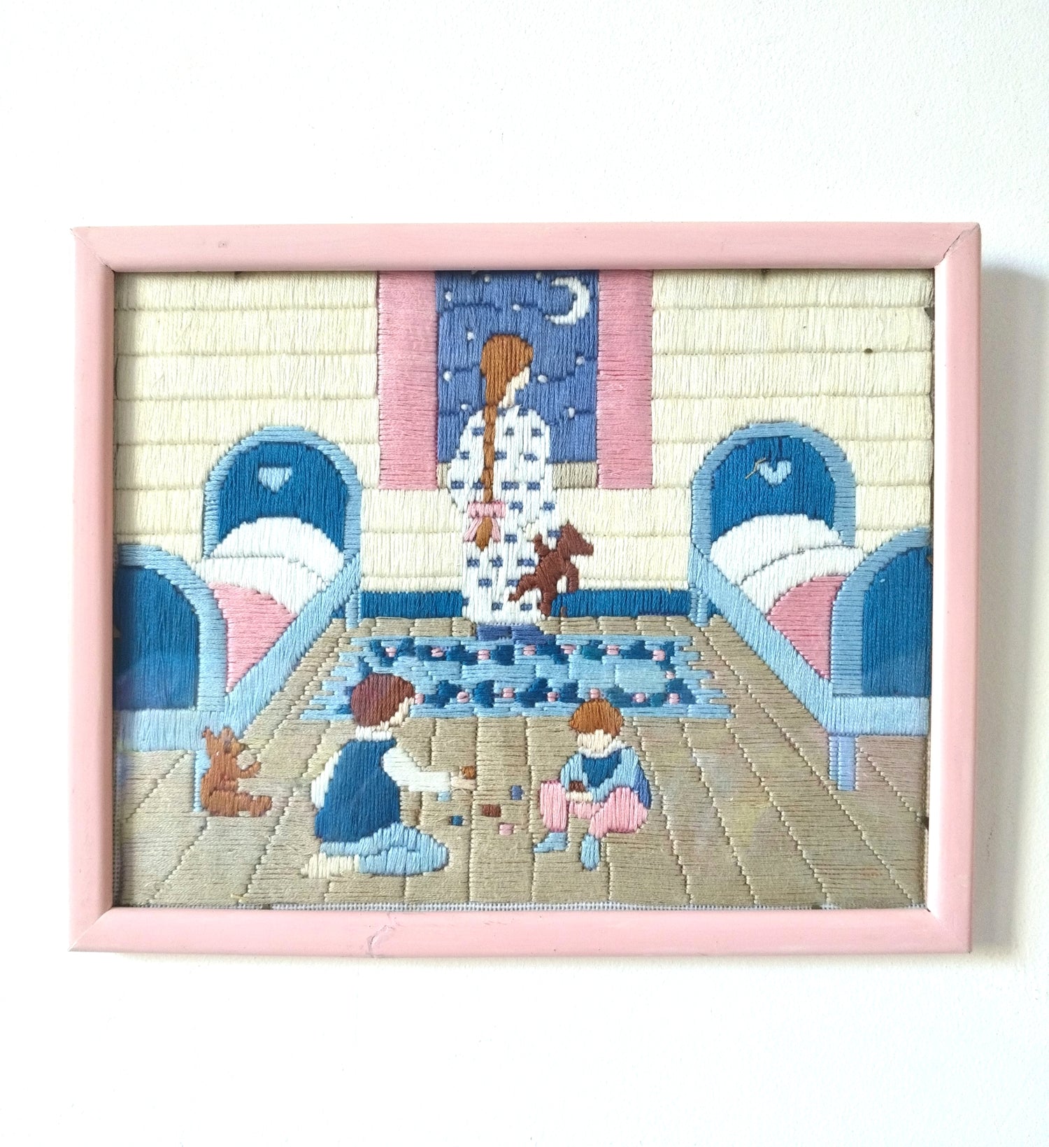 Broderie murale encadrée décor naïf enfantin