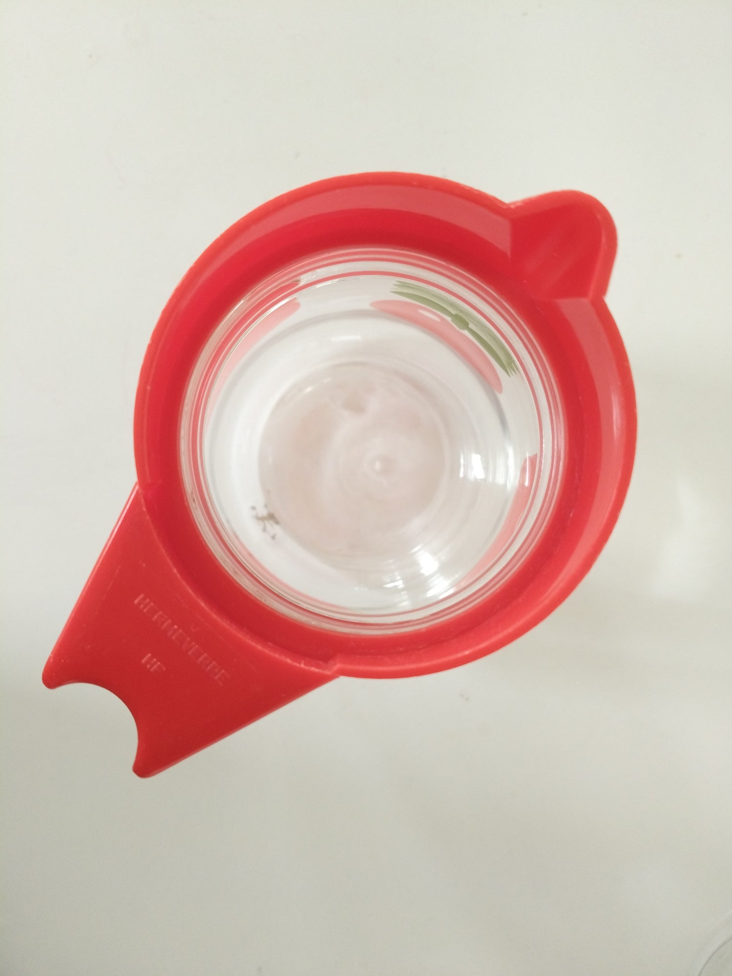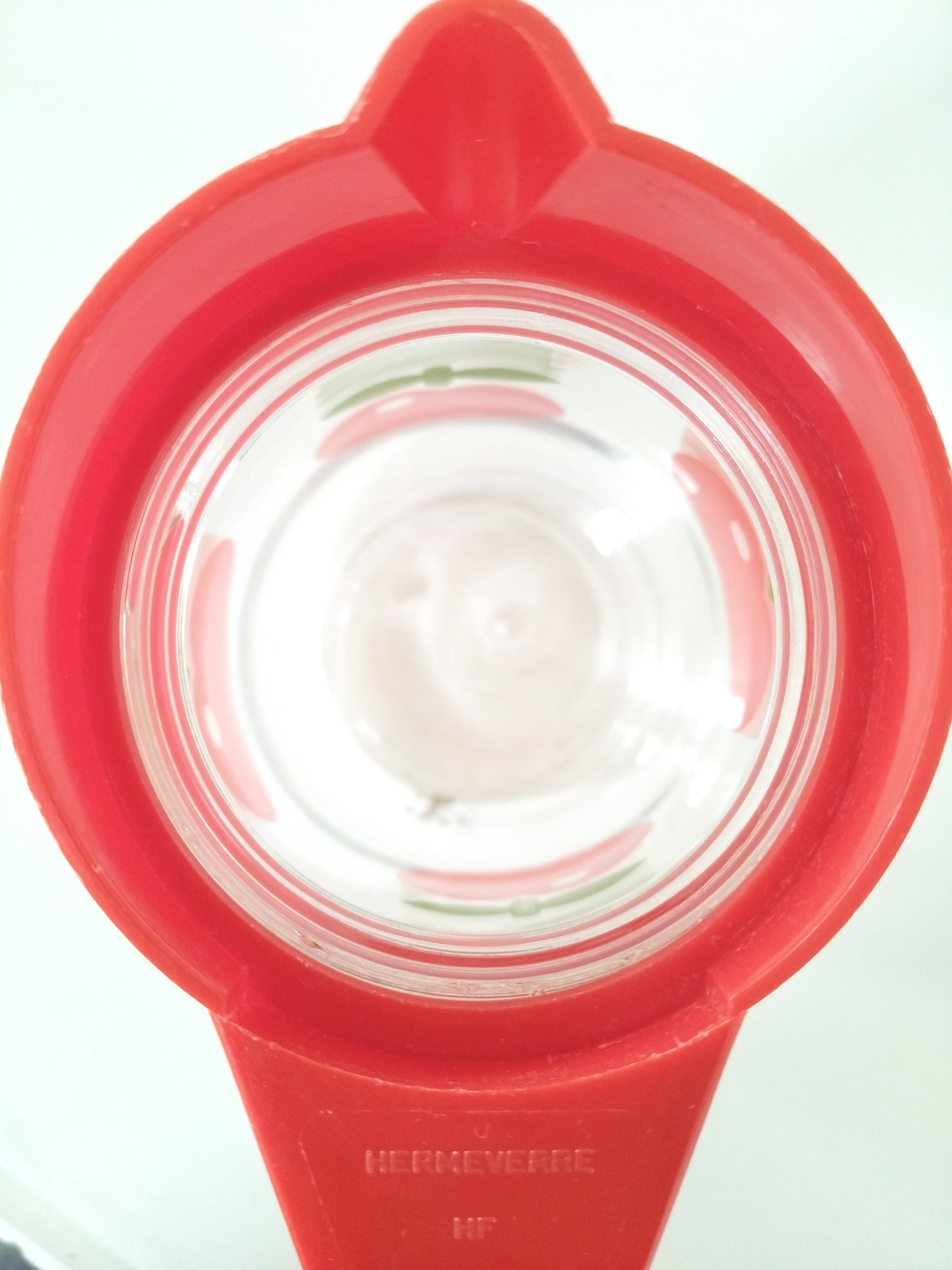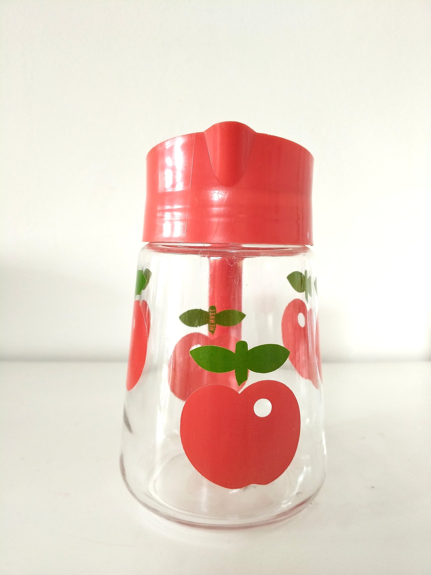 Verre et plastique - très bel état d'époque, quelques très petites marques dans le décor, cf photos + quelques très petites rayures (verre plastique) - +- 17,5cm de hauteur et 11cm de diamètre (au plus large)