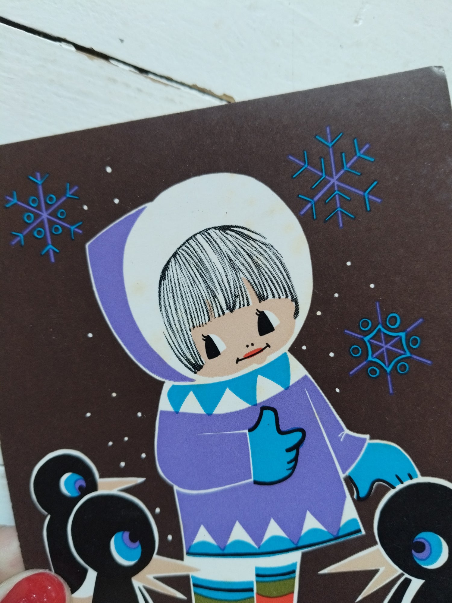 Carton fin (dont 2 encore plus, bleu ciel jardinier et bonhomme de neige) - voir photos pour état - bleu ciel et brune : 14,9 x 10,6cm - cirque : 15,5 x 10,9cm - noires et mauve : 15,3 X10,5cm - mauve foncé : 15 X10,5cm