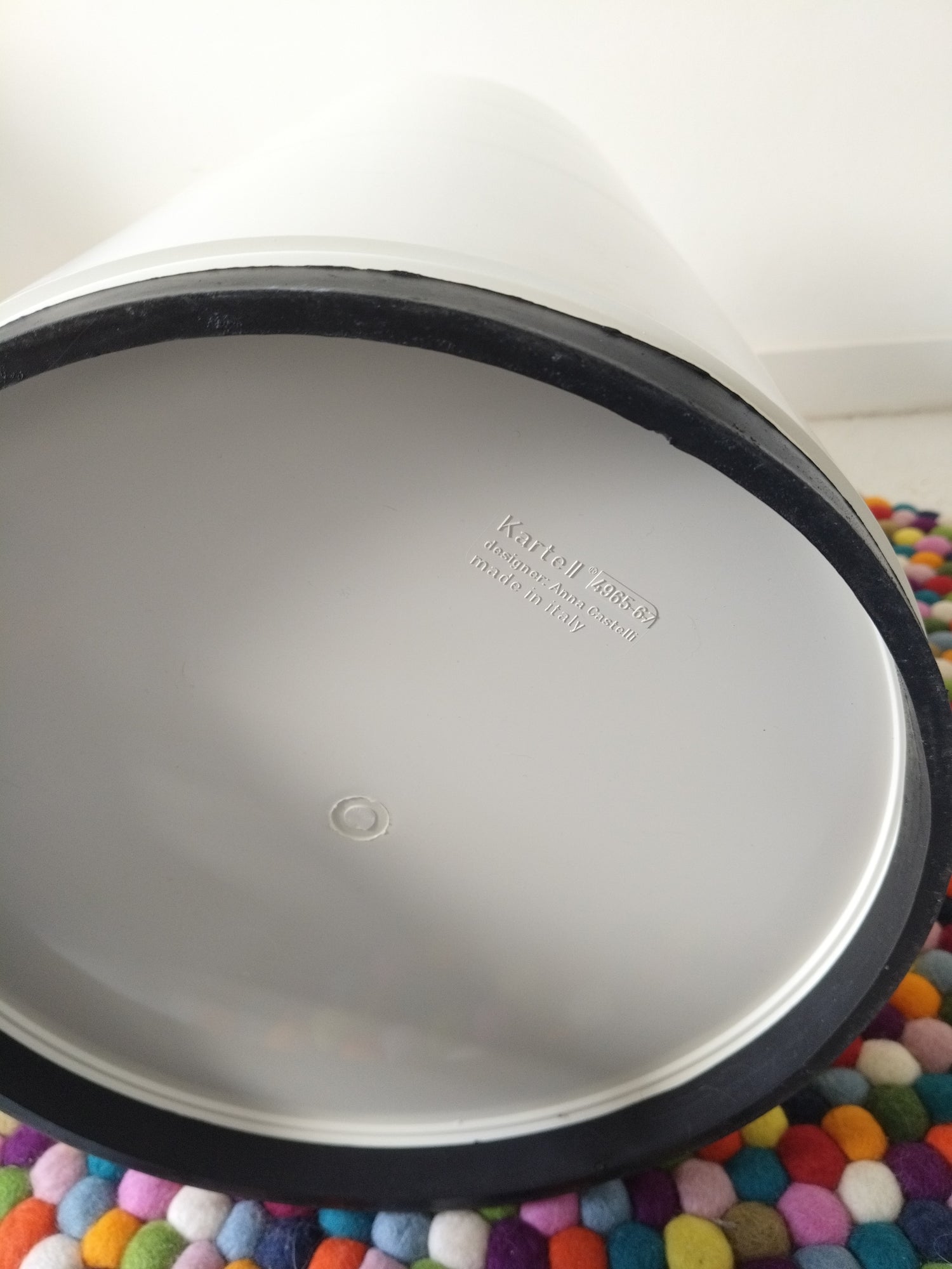 Plastique - très bel état, rayures globalement superficielles et très légère coloration sur les portes! 32cm de diamètre - 58cm de hauteur.