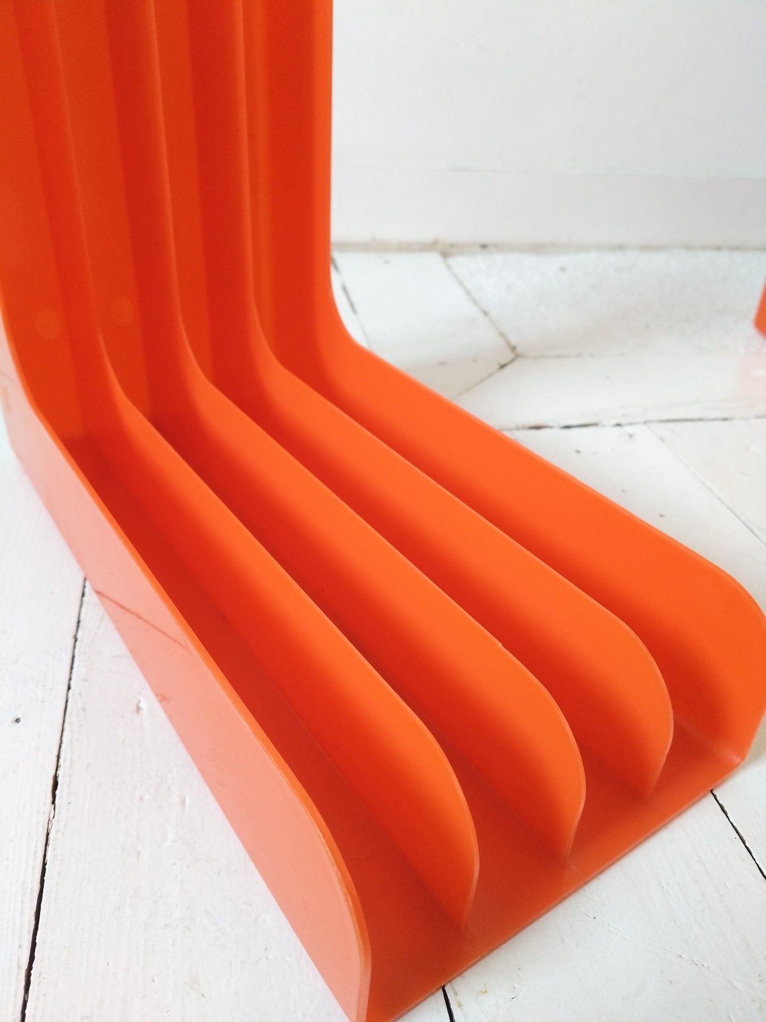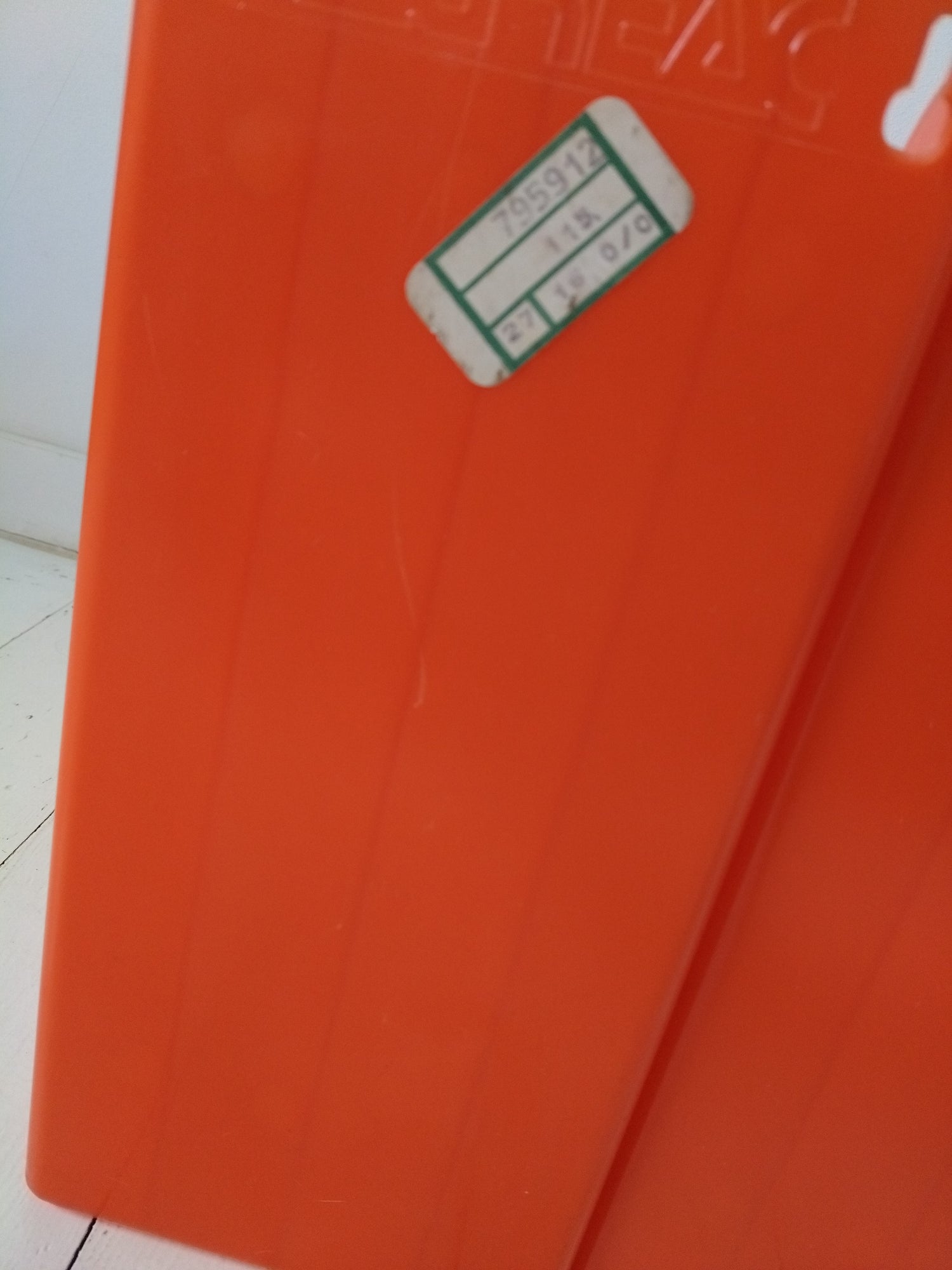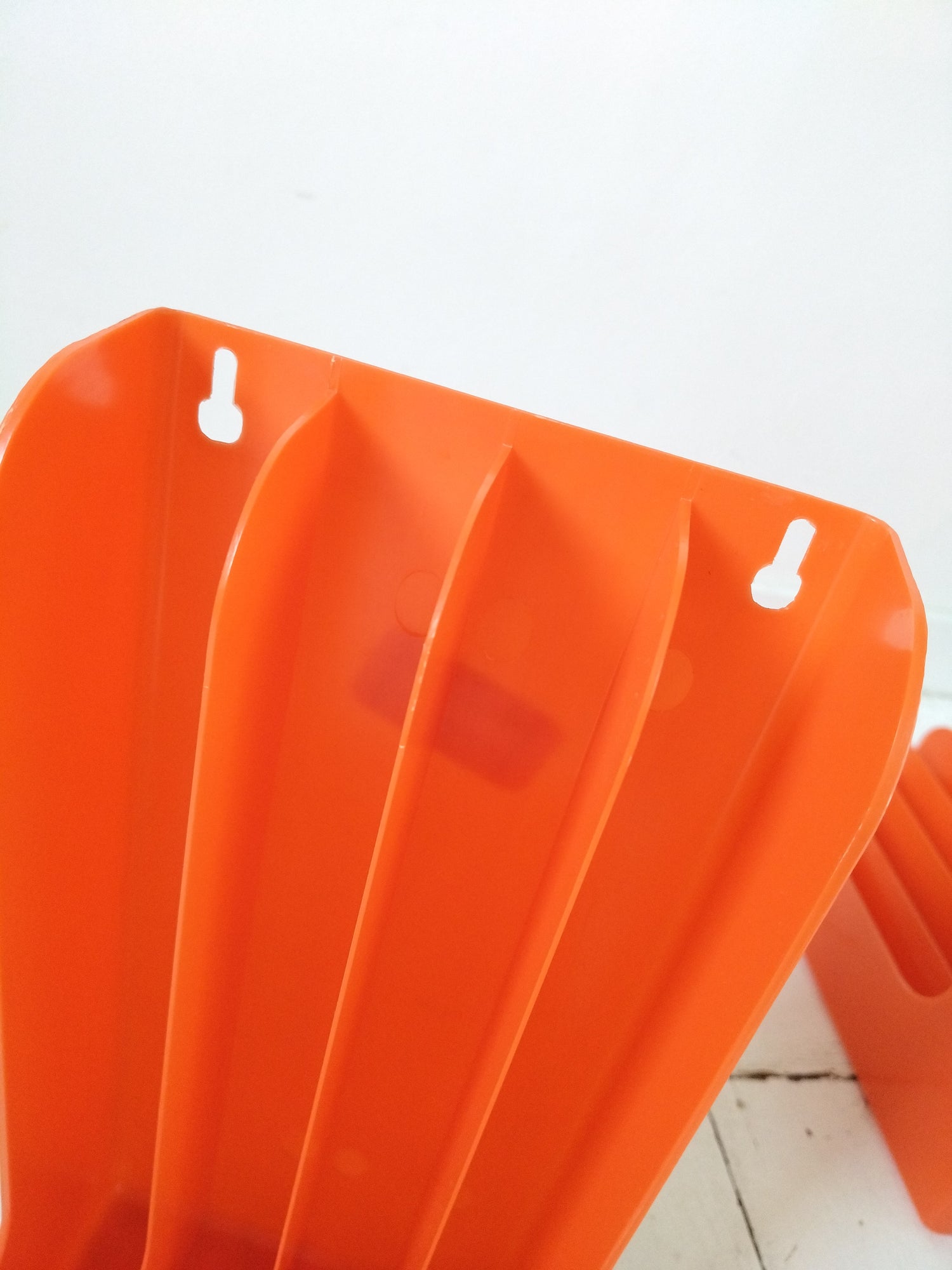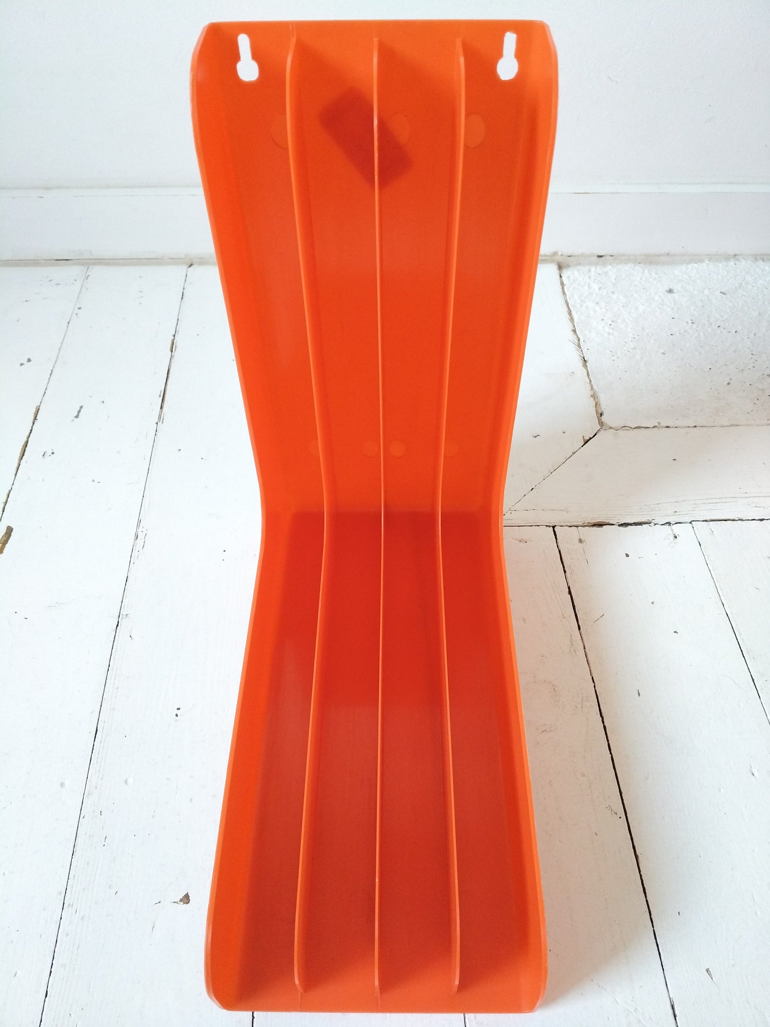 Plastique orange - à poser ou mural - très bel état d'époque rayures superficielles + quelques autres petites marques d'usage et imperfections de fabrication visibles sur les photos - 33x33cm et 15,4cm de largeur.