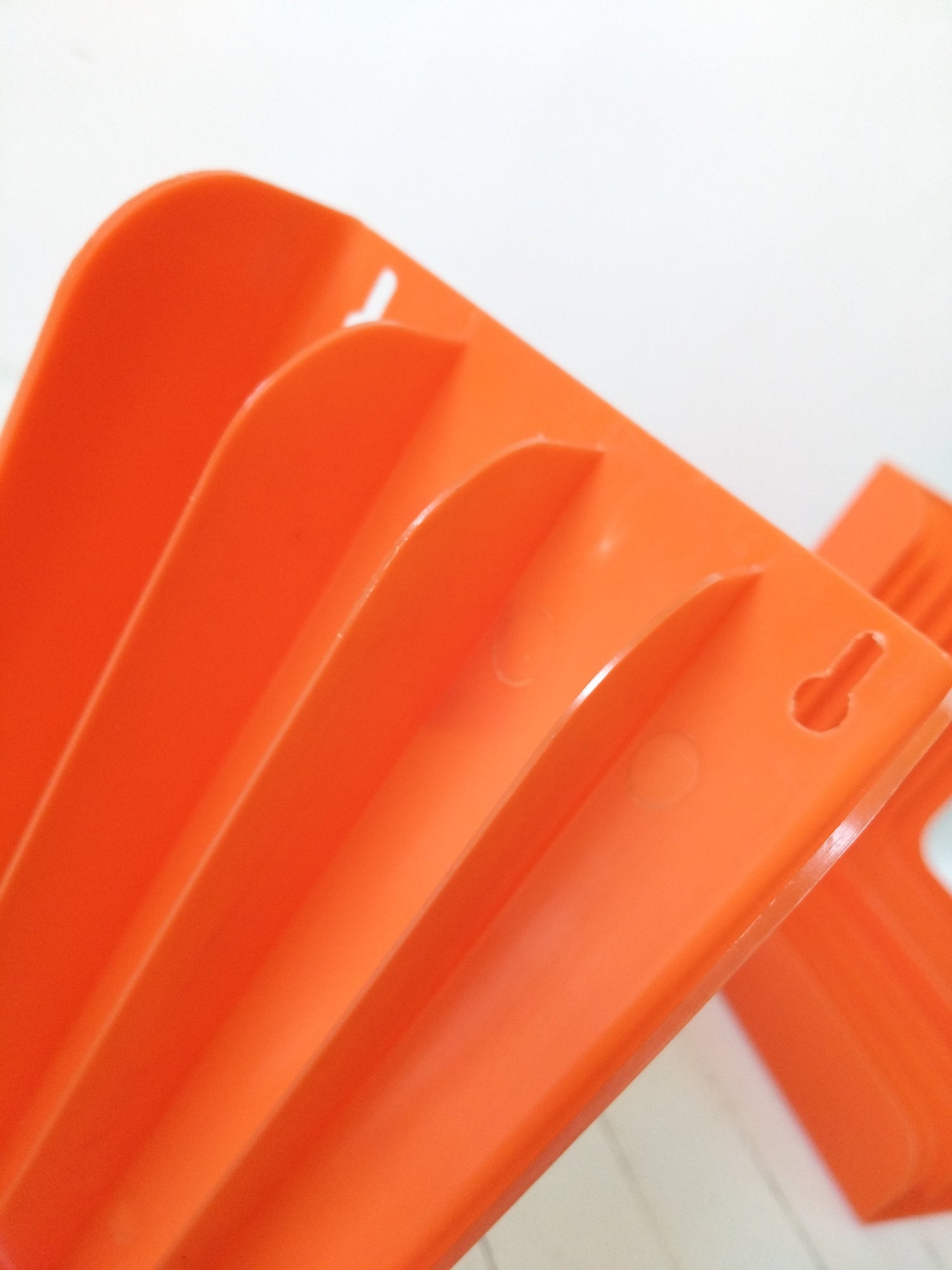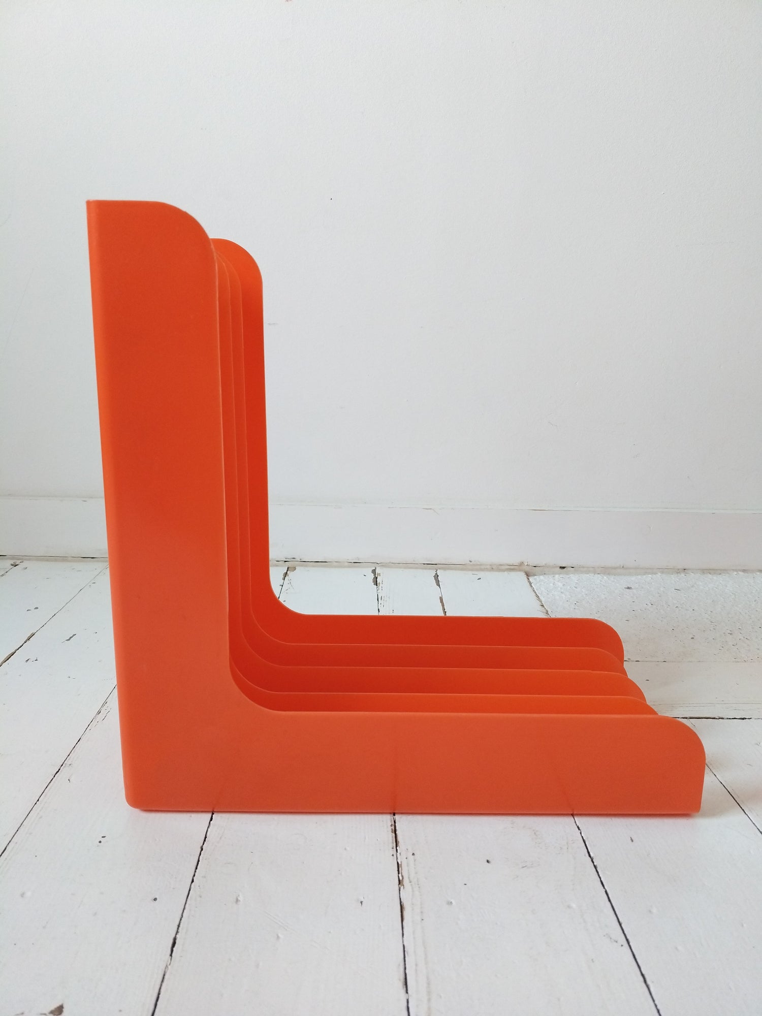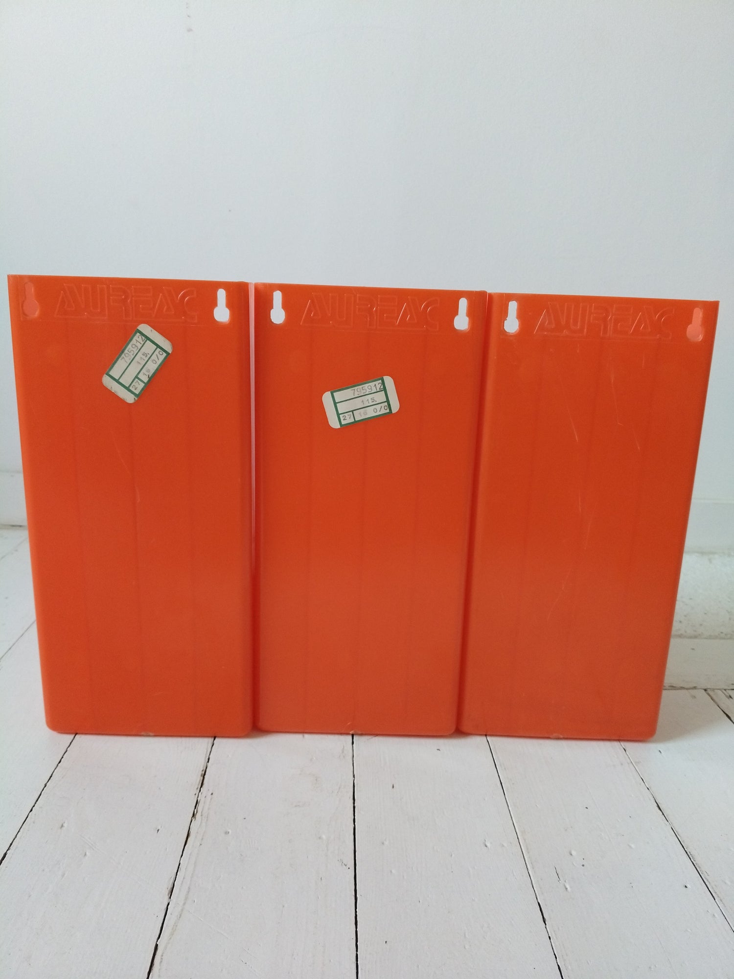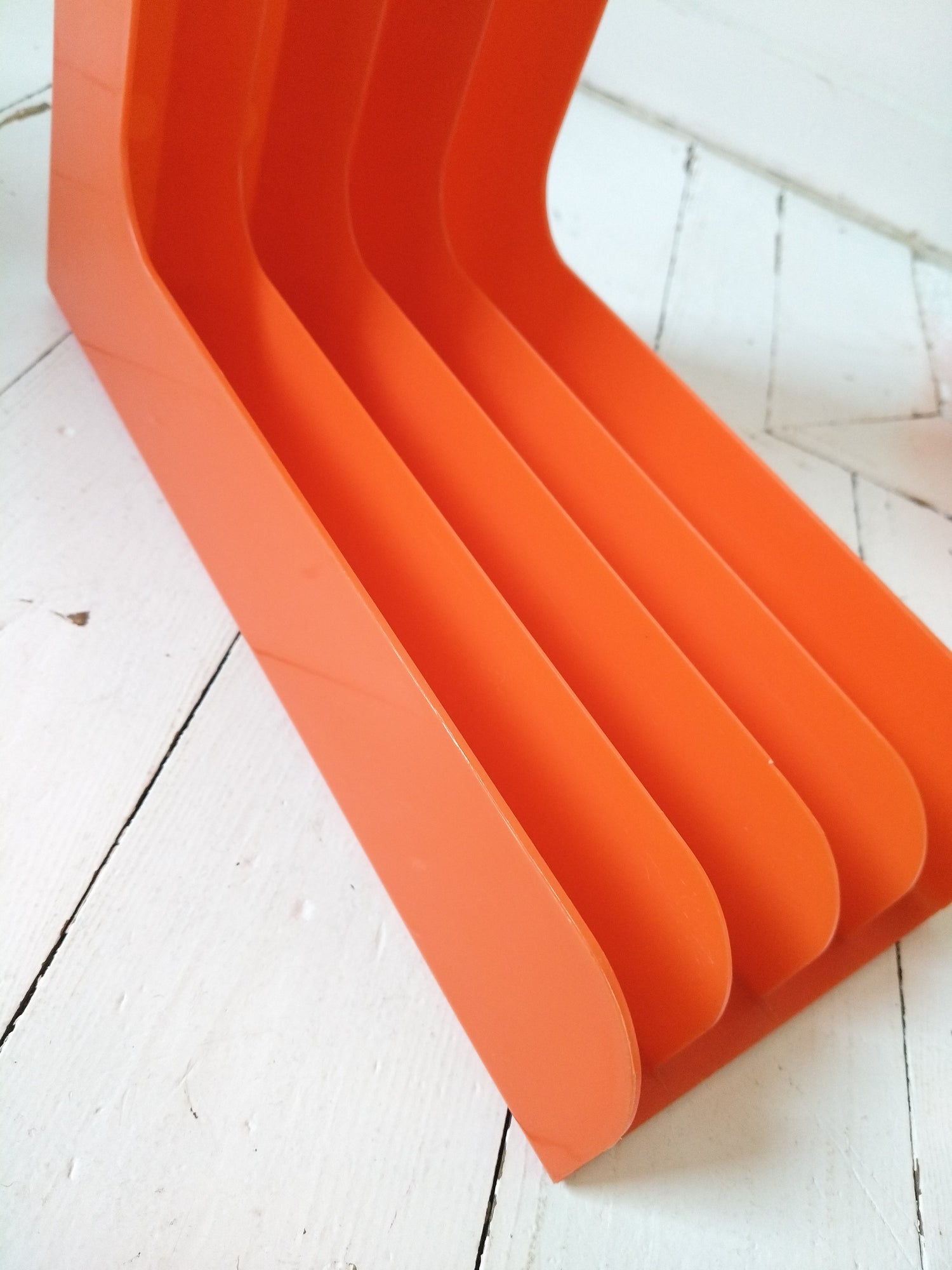 Plastique orange - à poser ou mural - très bel état d'époque rayures superficielles + quelques autres petites marques d'usage et imperfections de fabrication visibles sur les photos - 33x33cm et 15,4cm de largeur.