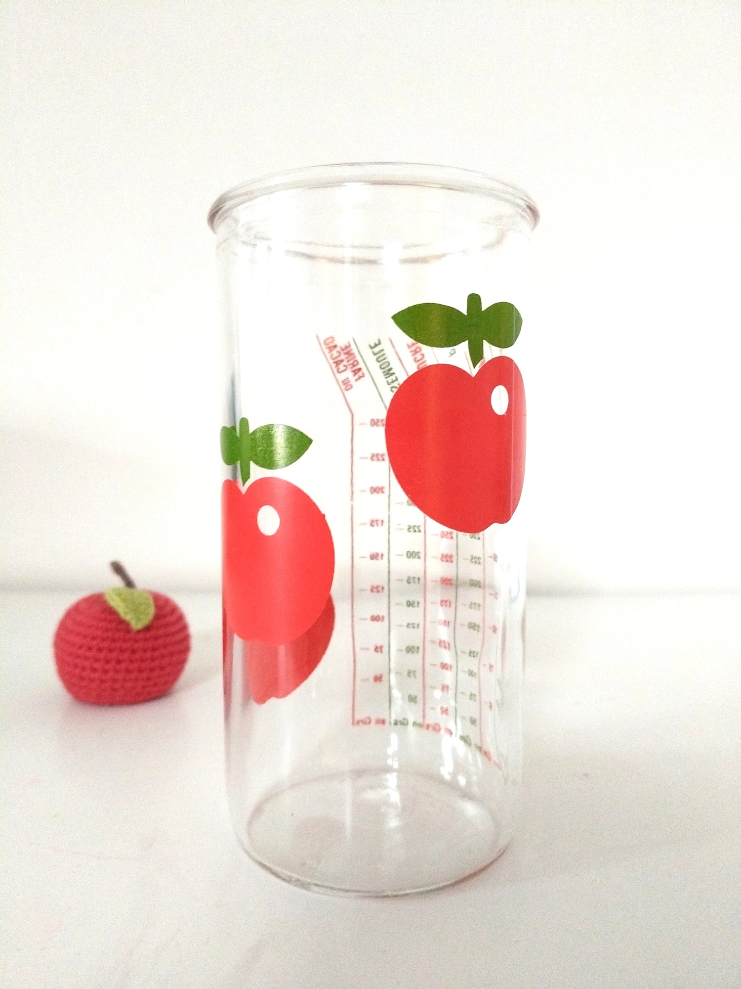 Verre doseur mesureur/ récipient gradué/ Henkel décor pommes