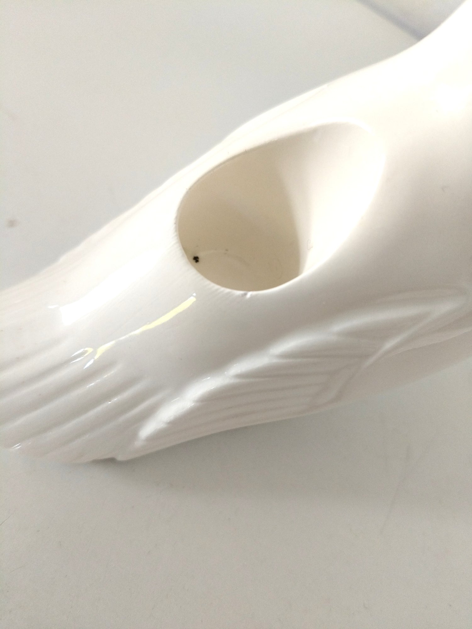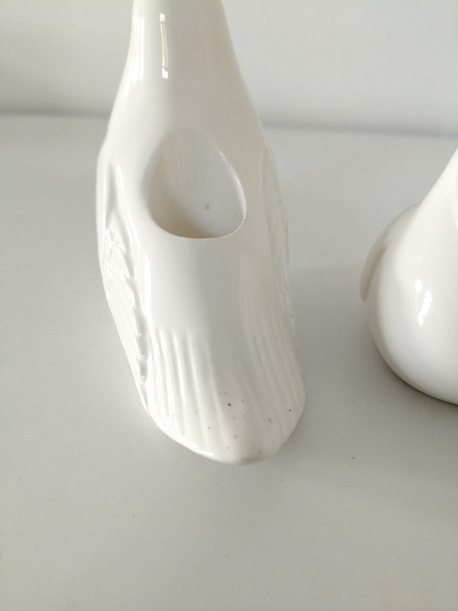 Céramique - marques à l'intérieur des deux, petites imperfections de fabrication sur la plus haute ainsi que 2 micro éclats corrigés sur le bord du creux bougie - 11,5 x 9,3cm et 13,2 x 7cm