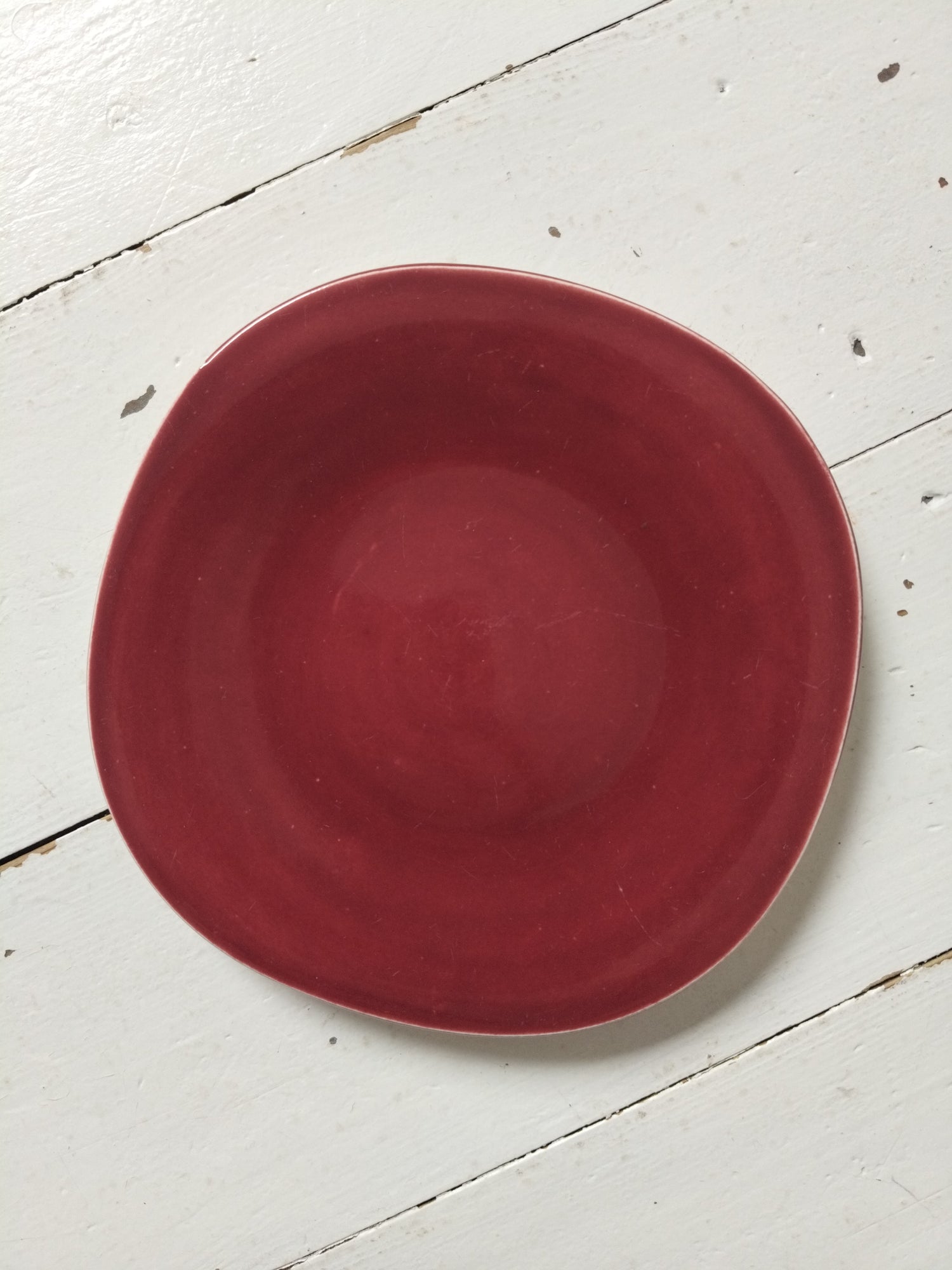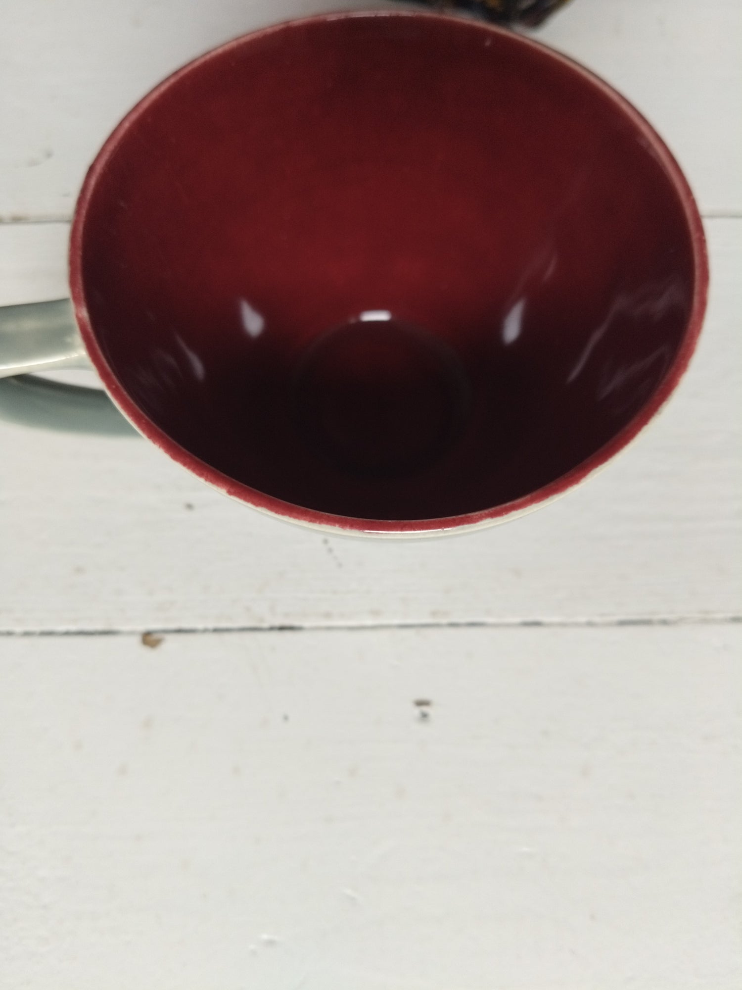 Ensemble 1 tasse grise et 1 soucoupe bordeaux Boch La Louvière Miami Bicolore