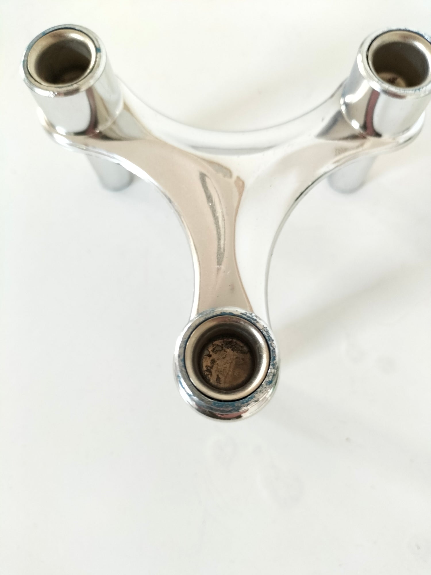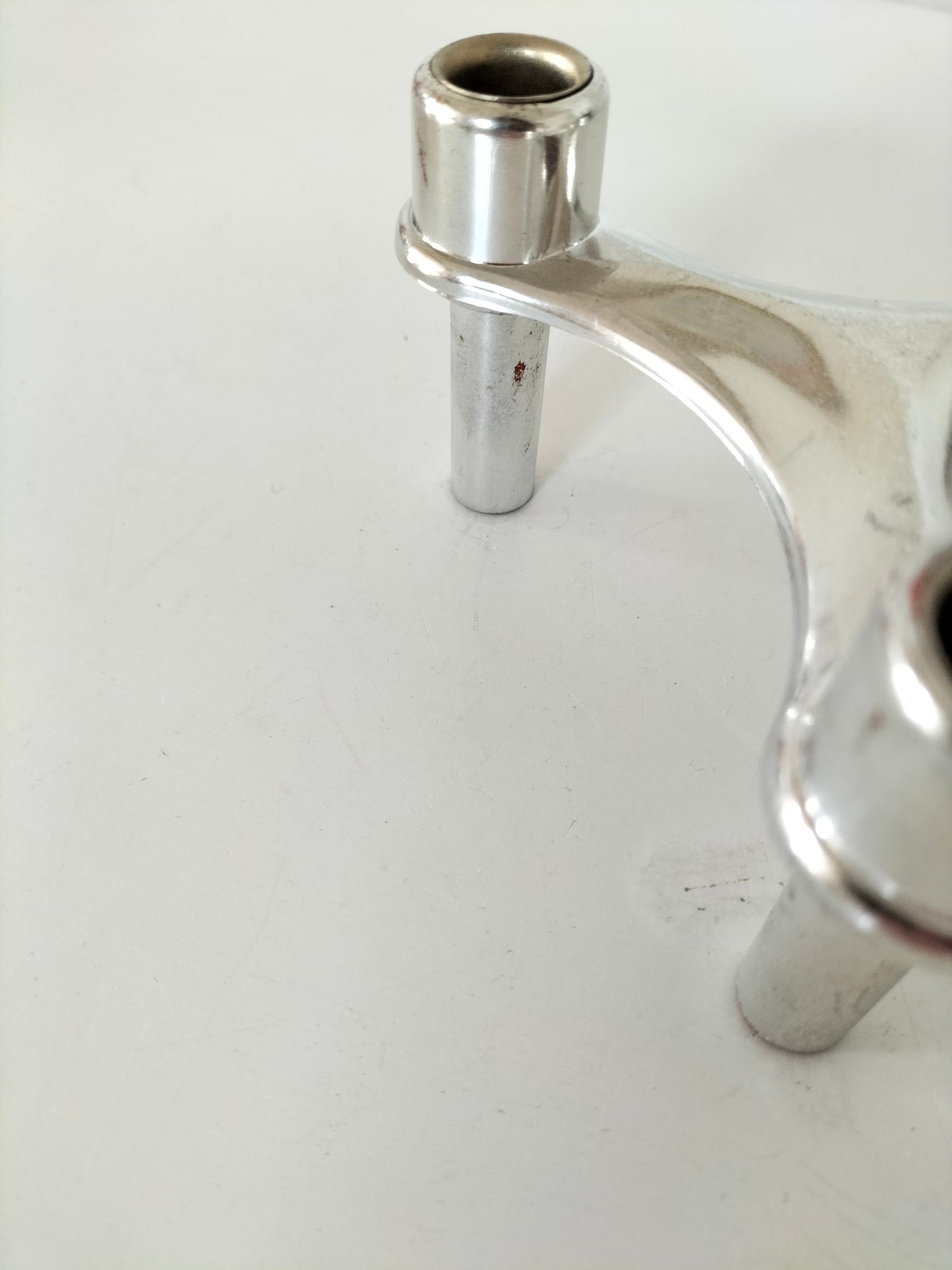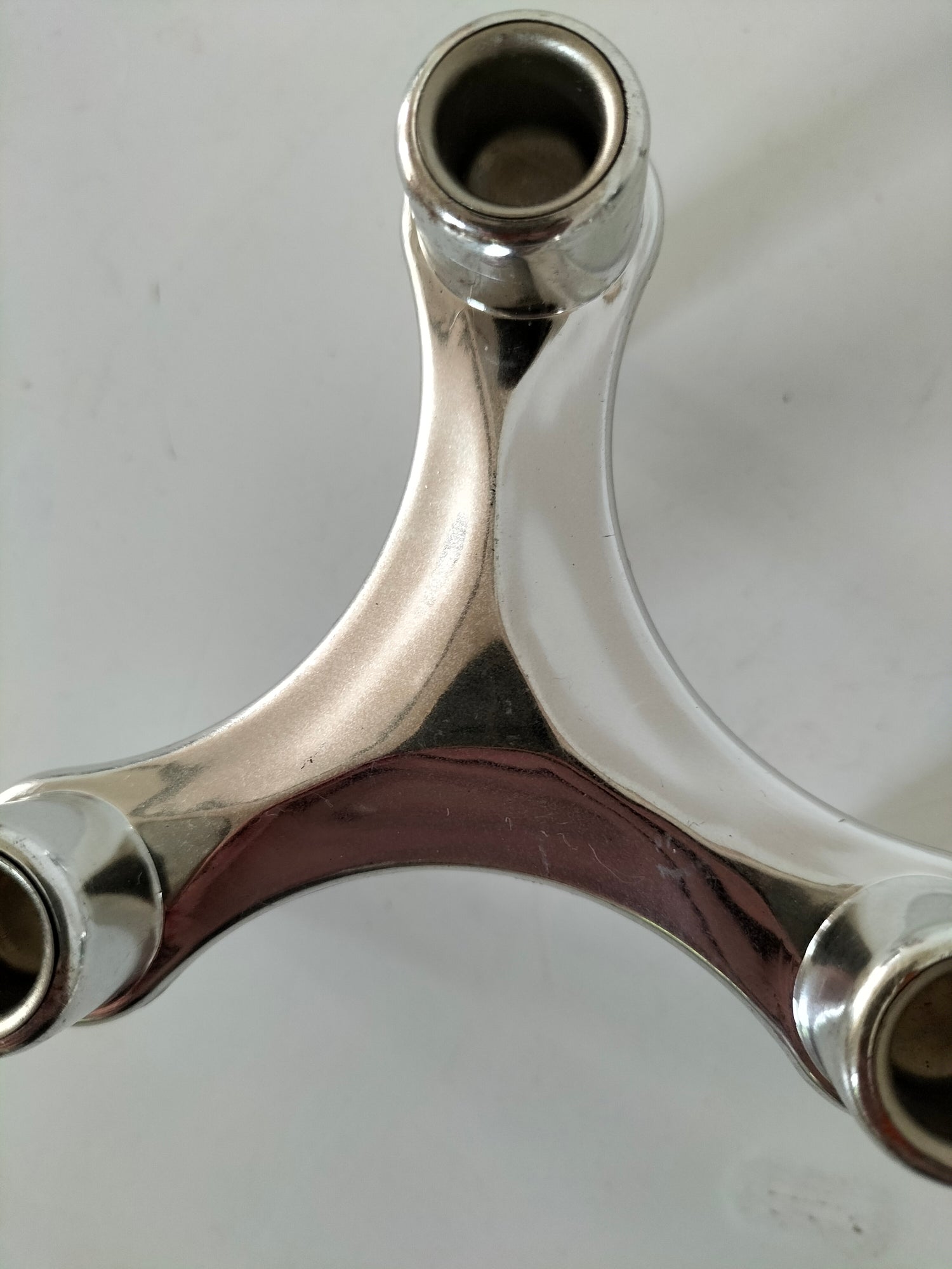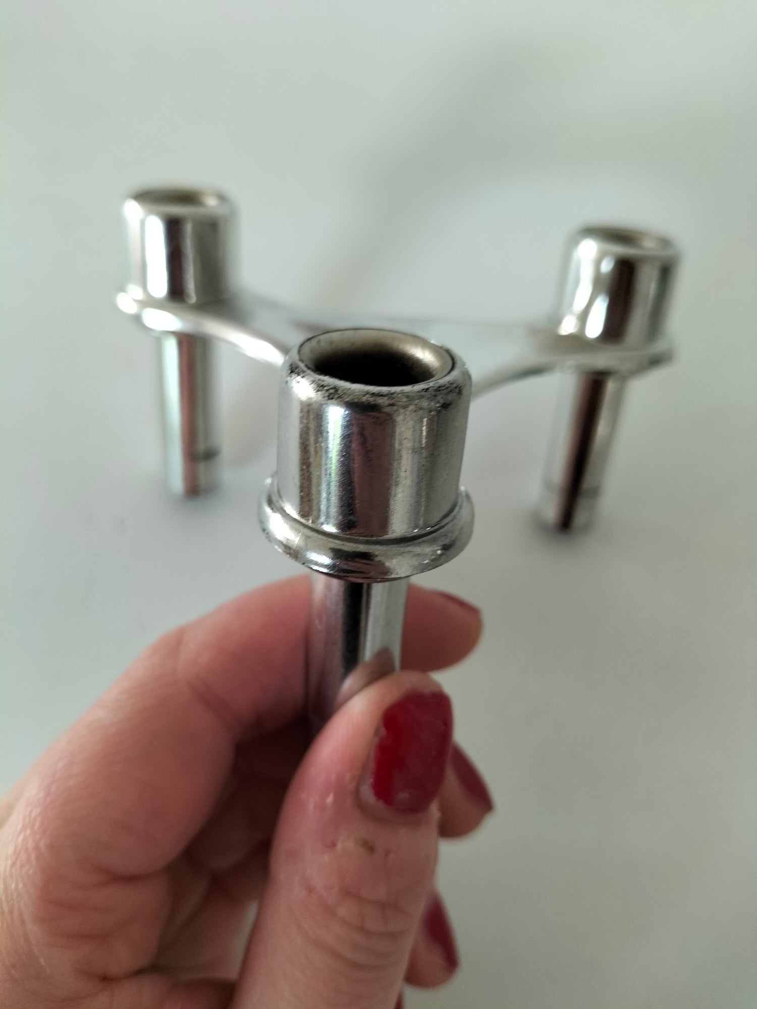 Plastique métallisé imparfait d'origine (ça reste des fantaisies) et lié à l'âge, défauts et marques d'usage peuvent être +- dissimulés si ils gênent puisqu'on module les bougeoirs comme on veut. L'ensemble reste superbe, cf photos - chacun mesure 10cm de côté et 5,8cm de hauteur.