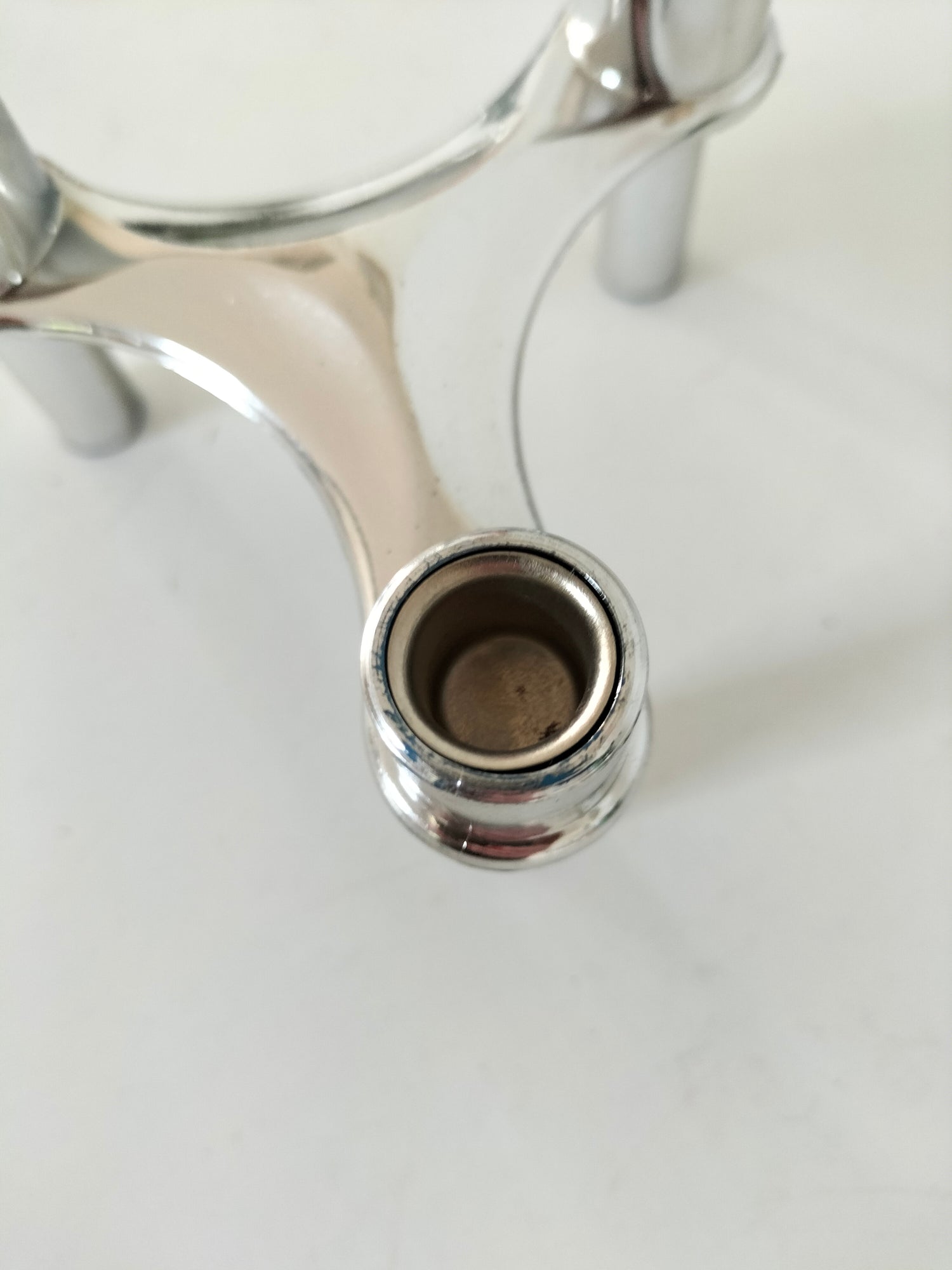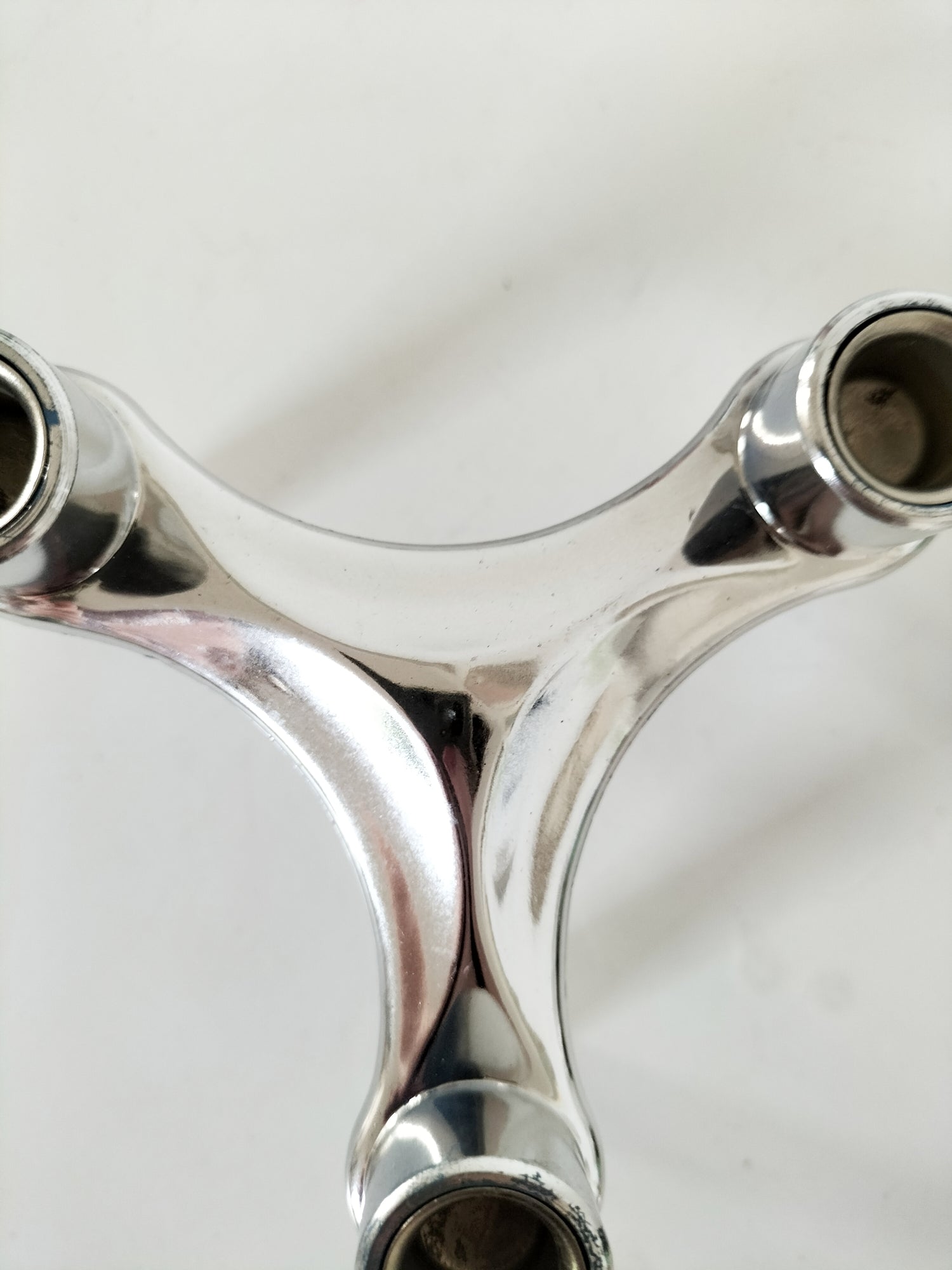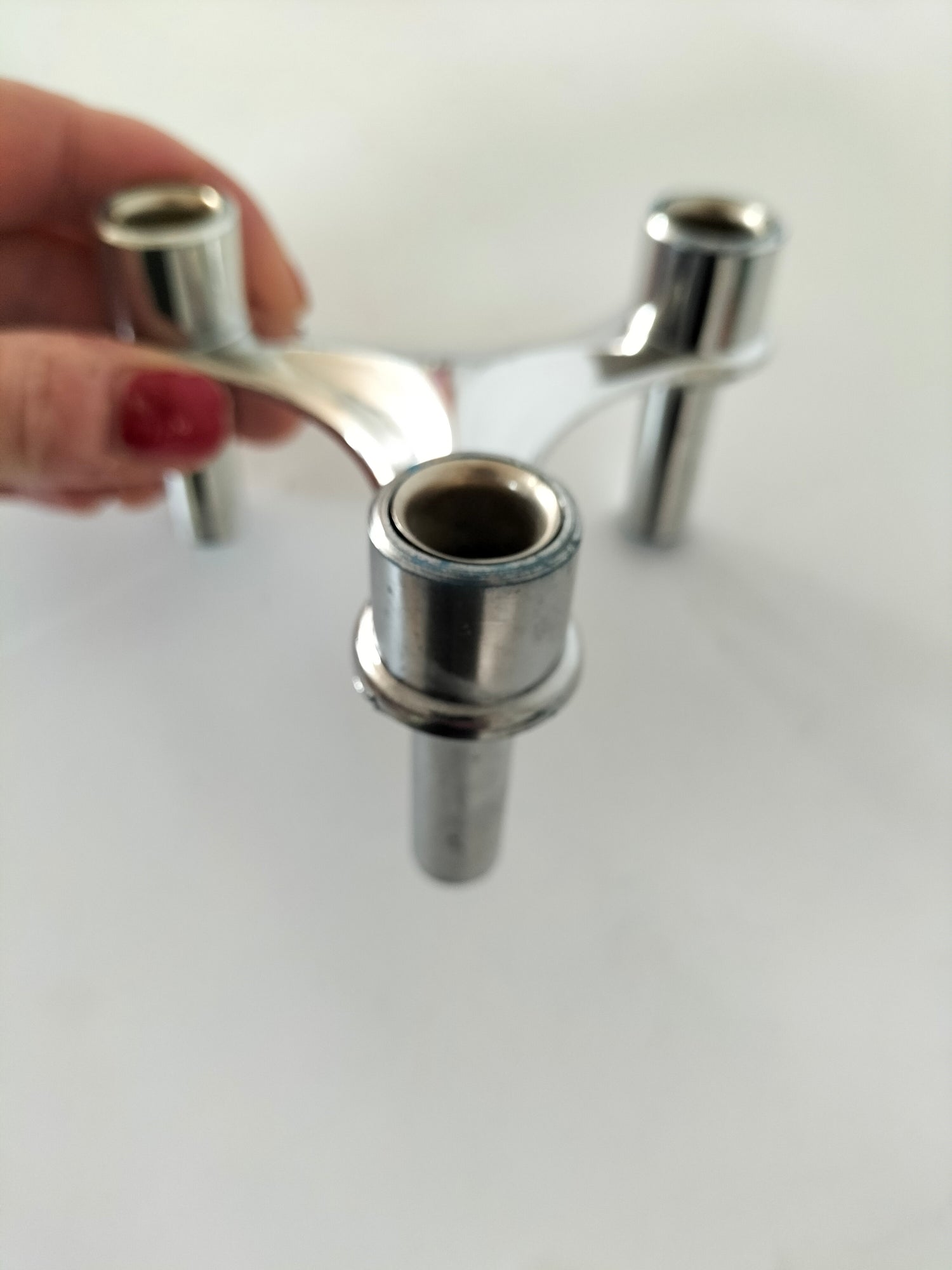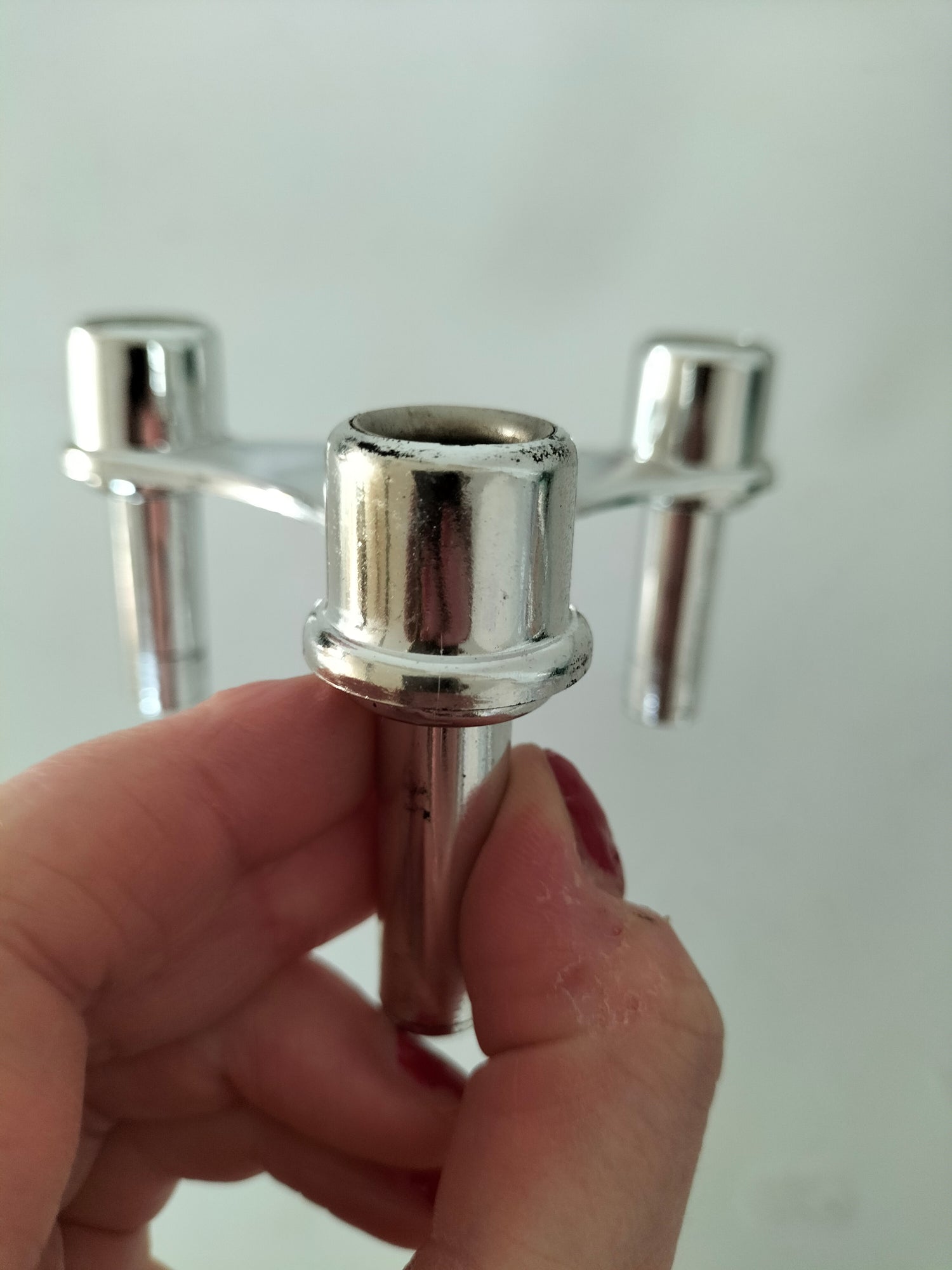 Plastique métallisé imparfait d'origine (ça reste des fantaisies) et lié à l'âge, défauts et marques d'usage peuvent être +- dissimulés si ils gênent puisqu'on module les bougeoirs comme on veut. L'ensemble reste superbe, cf photos - chacun mesure 10cm de côté et 5,8cm de hauteur.