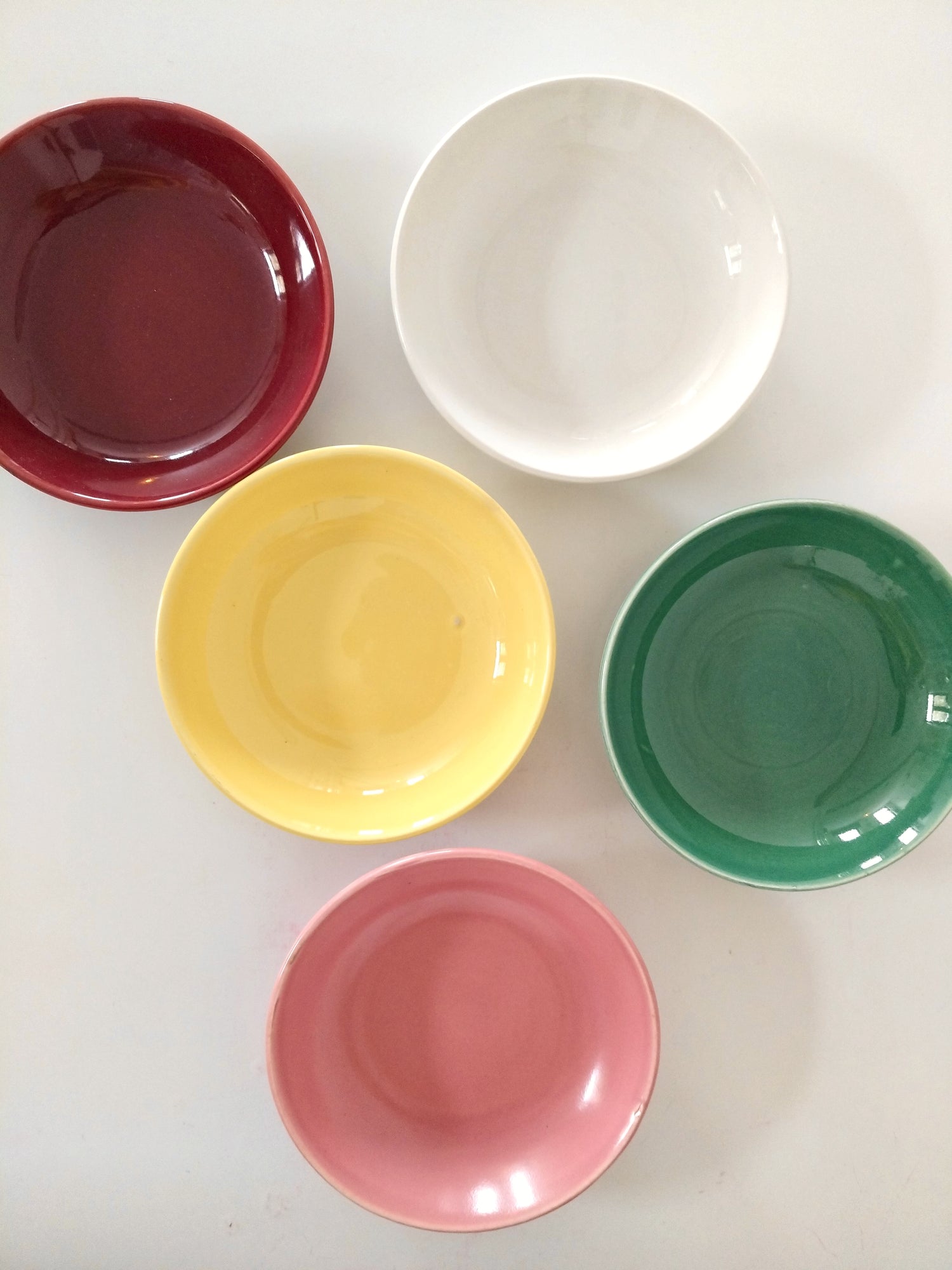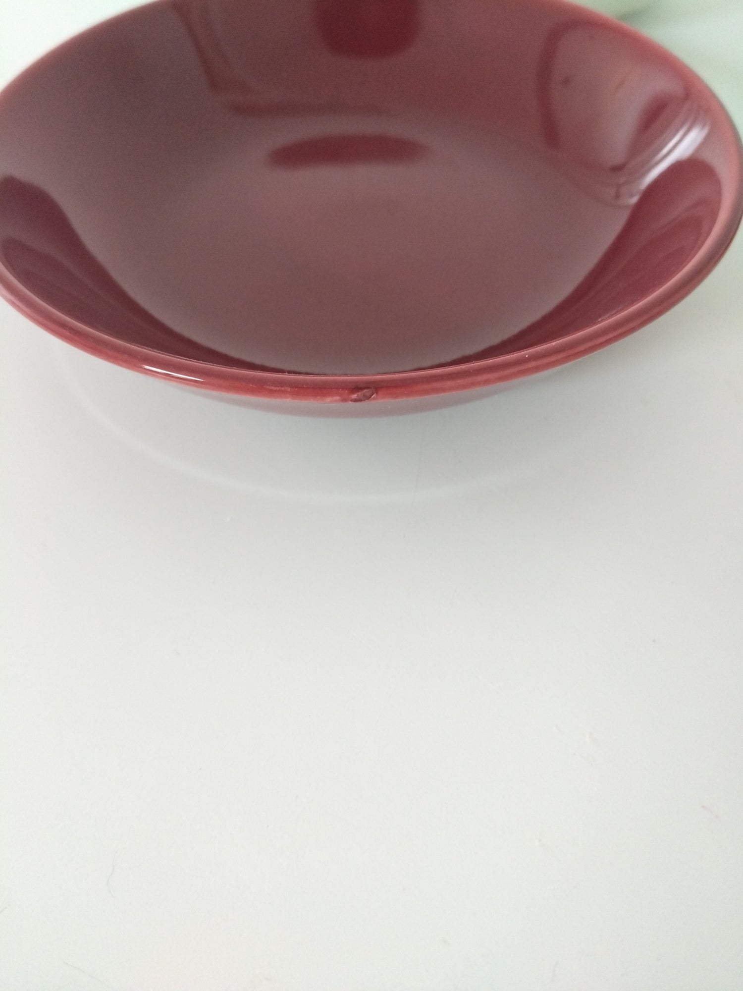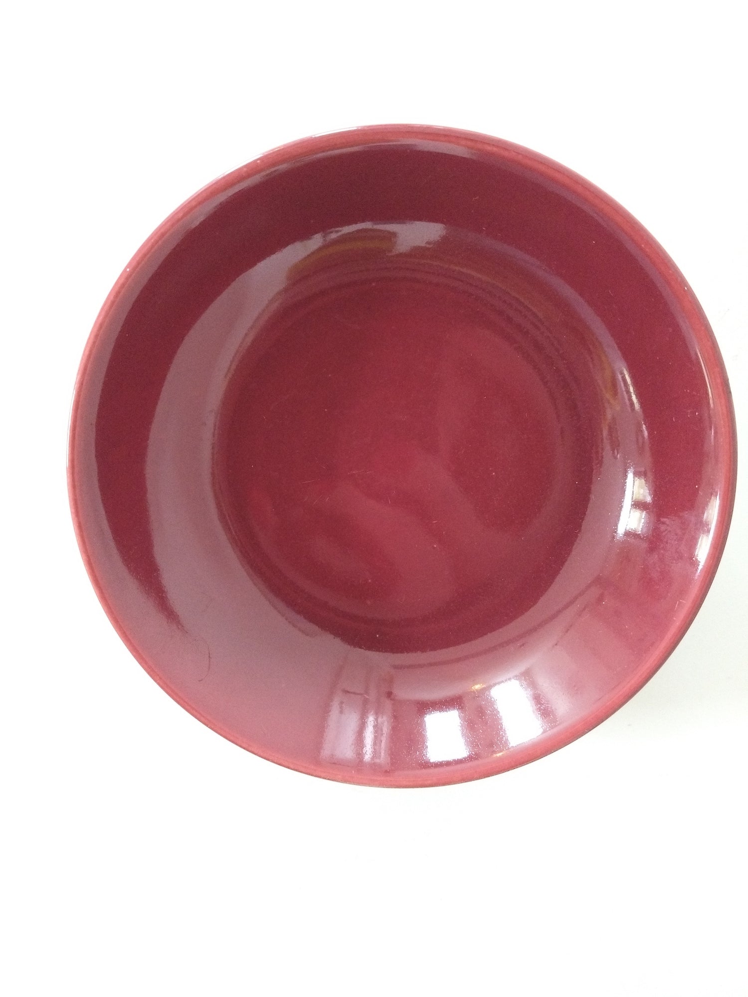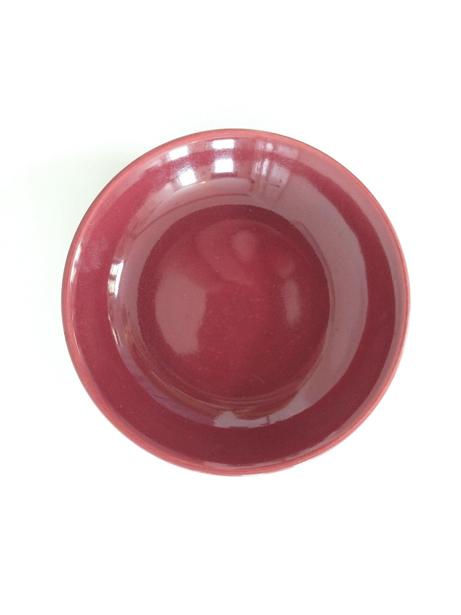 Porcelaine - quelques micro rayures, un petit éclat corrigé sur le bord de la bordeaux et plusieurs imperfections de fabrication, cf photos - seule la blanche n'est pas estampillée. - 13cm de diamètre.