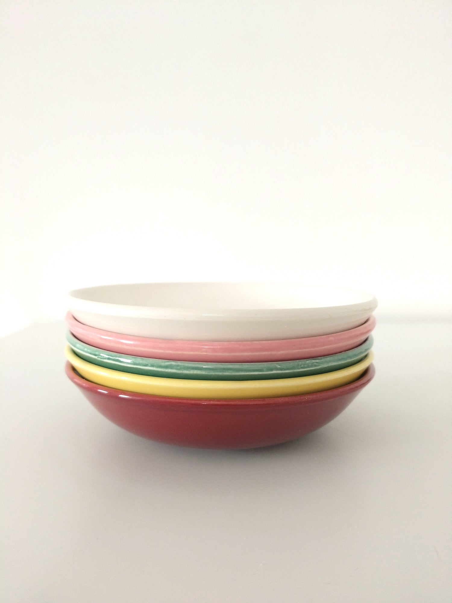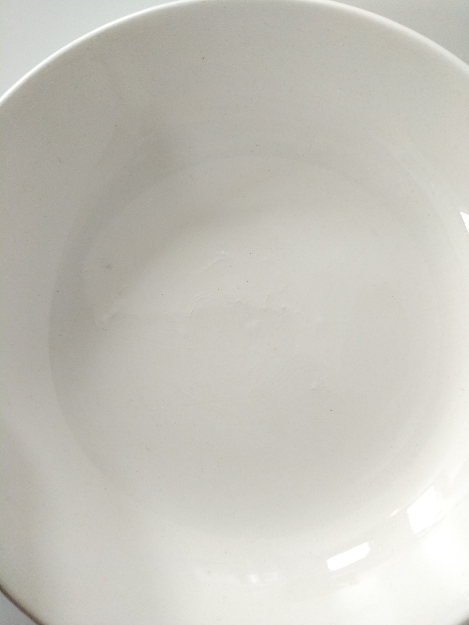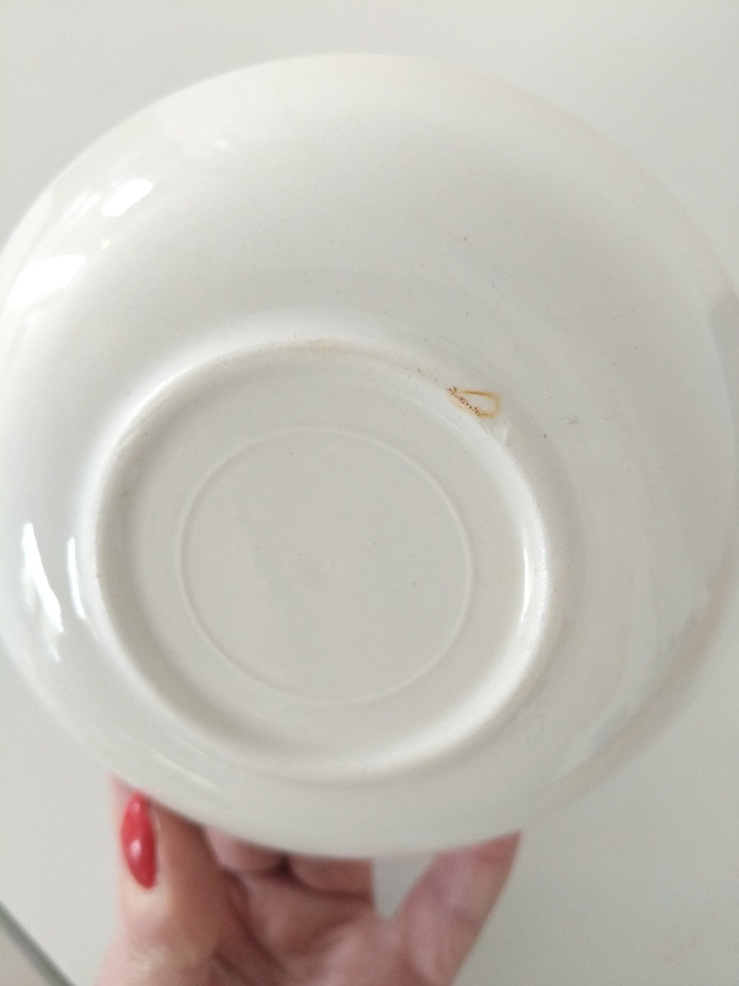 Porcelaine - quelques micro rayures, un petit éclat corrigé sur le bord de la bordeaux et plusieurs imperfections de fabrication, cf photos - seule la blanche n'est pas estampillée. - 13cm de diamètre.