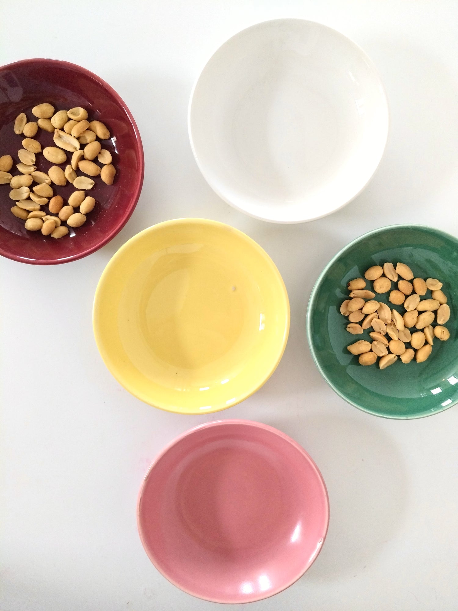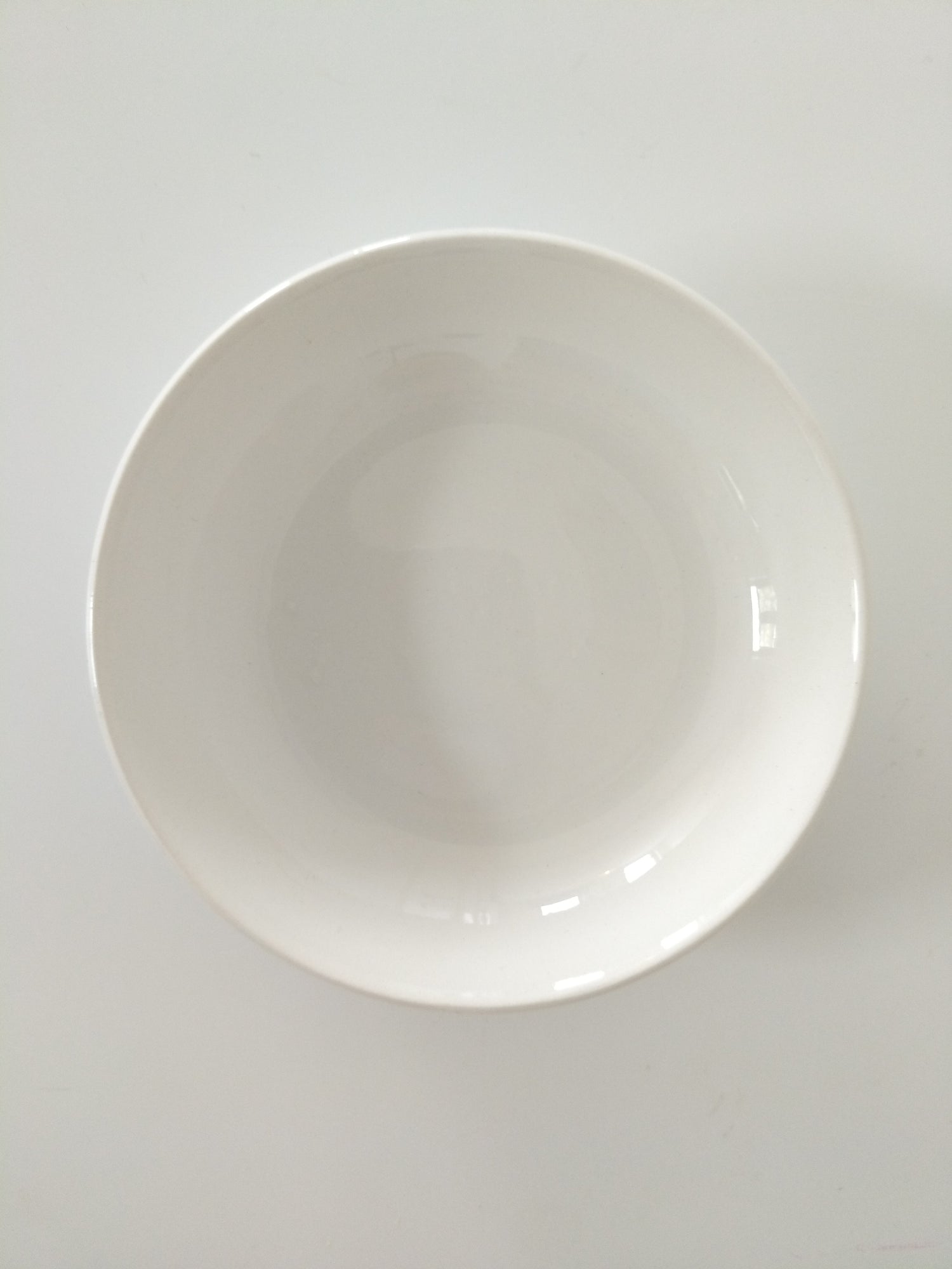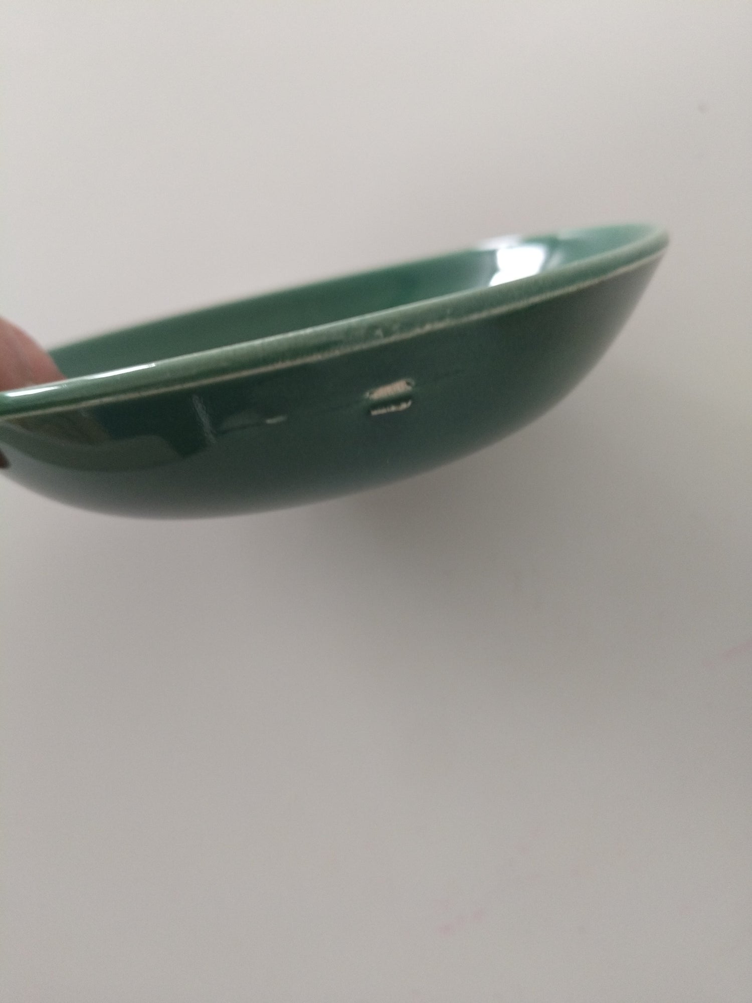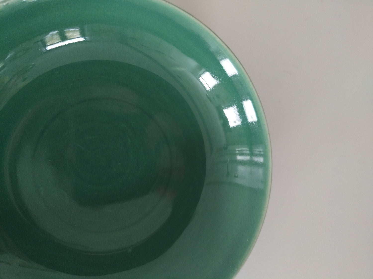 Porcelaine - quelques micro rayures, un petit éclat corrigé sur le bord de la bordeaux et plusieurs imperfections de fabrication, cf photos - seule la blanche n'est pas estampillée. - 13cm de diamètre.