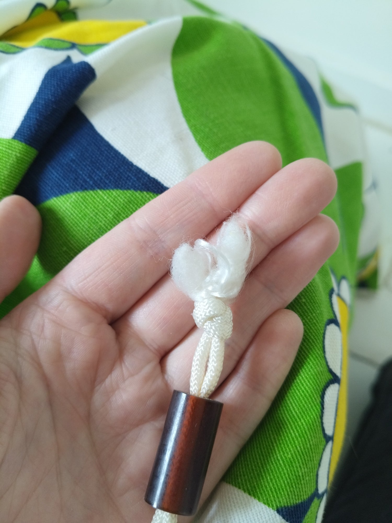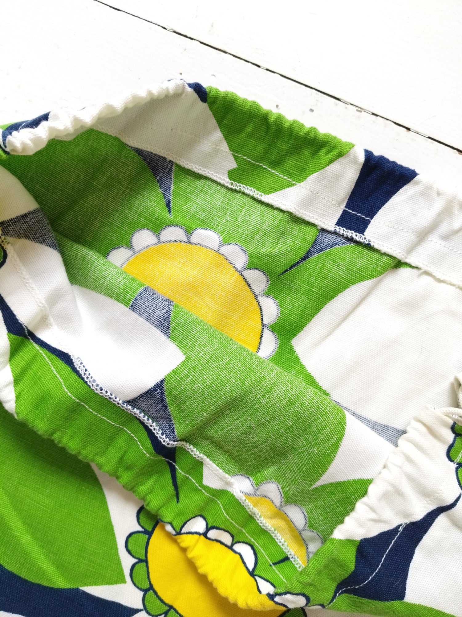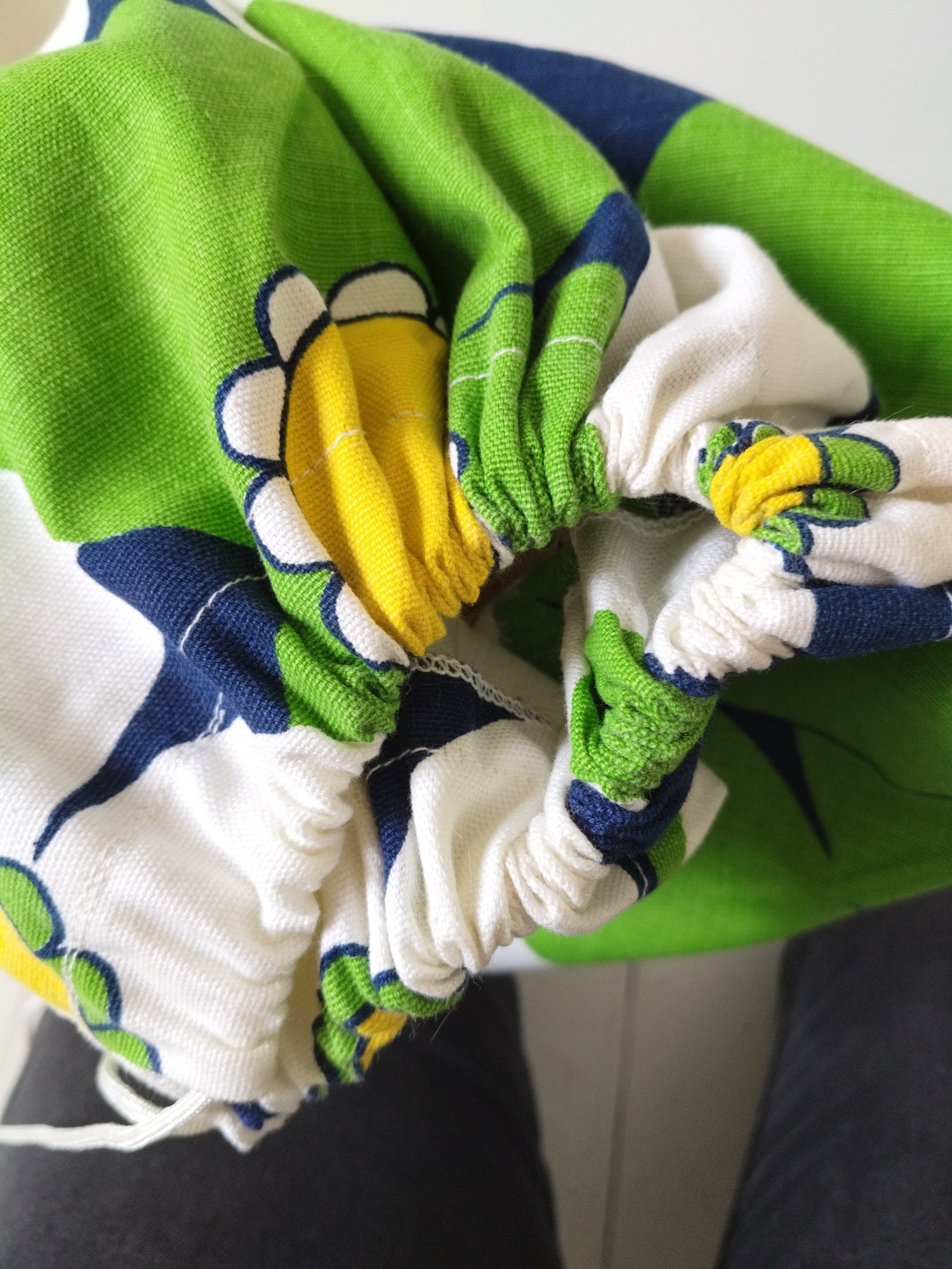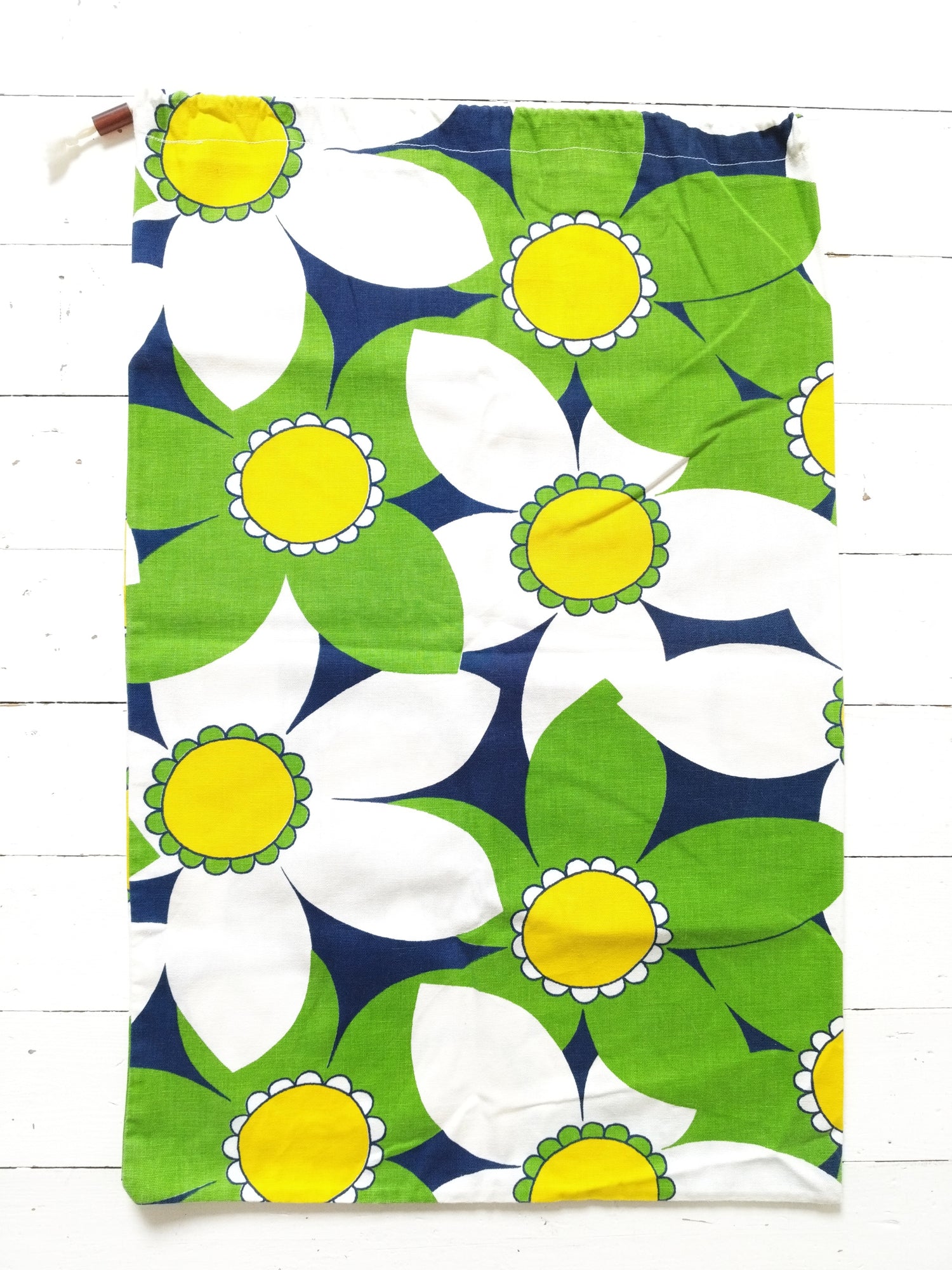 Tissu - probablement jamais été utilisé, lavé, micro tache, une couture "grossière" et le bout du cordon qui s'effiloche un peu, après le nœud, sans aucun impact. Beau format : 74 x 48cm