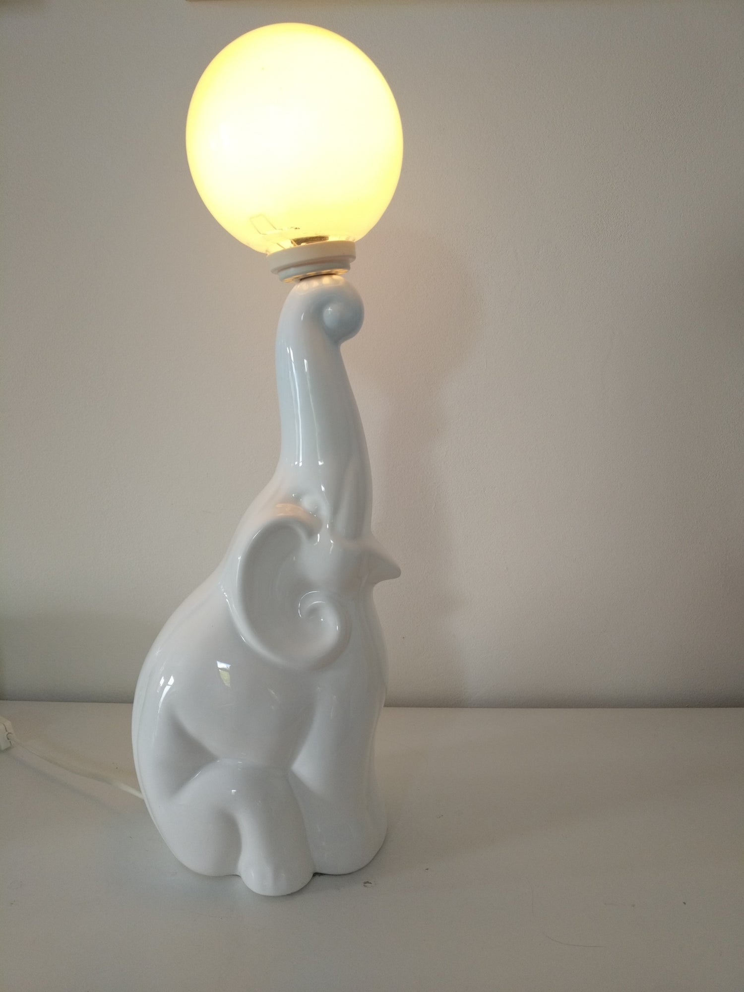 Grande lampe éléphant vintage en céramique