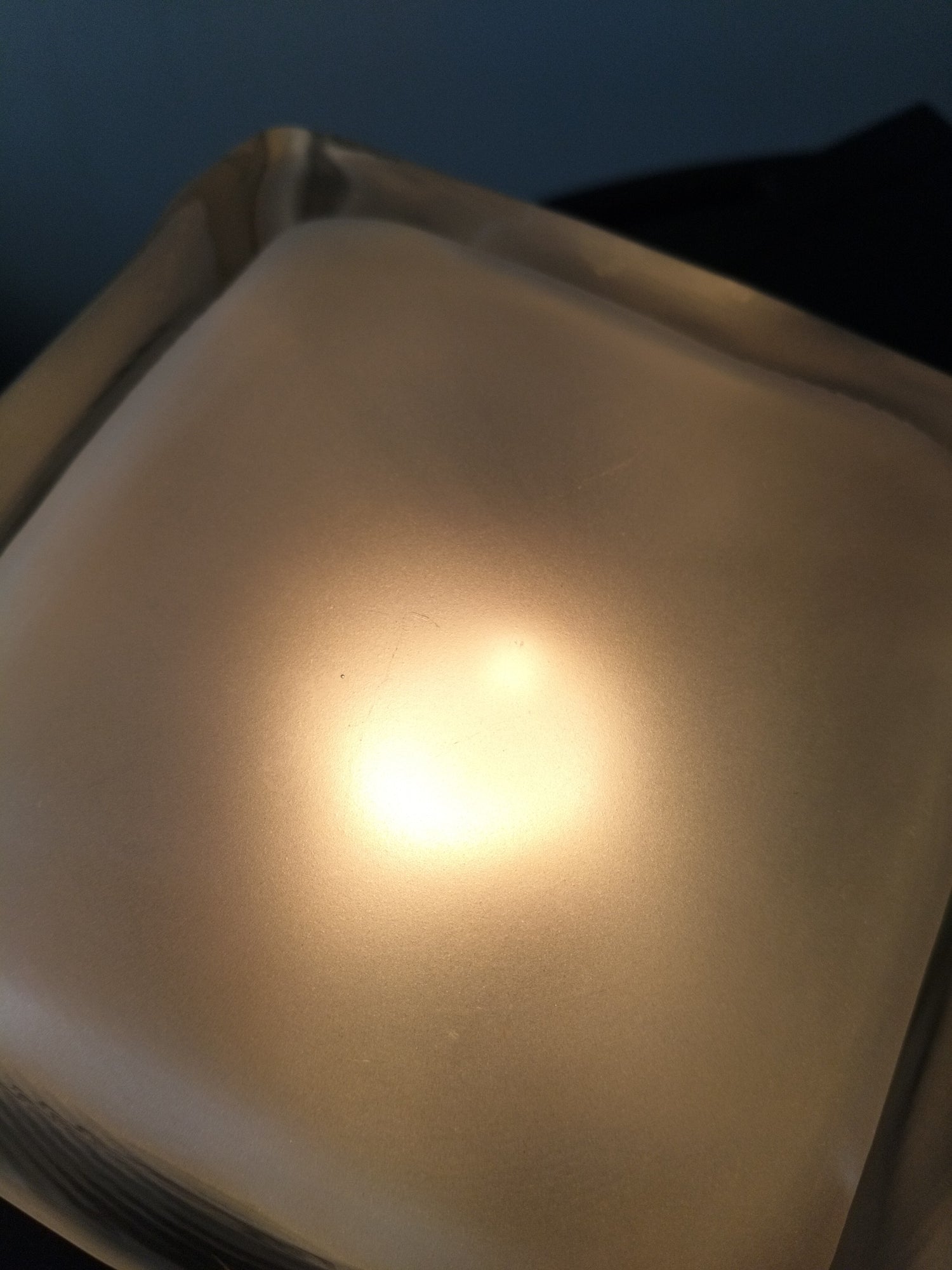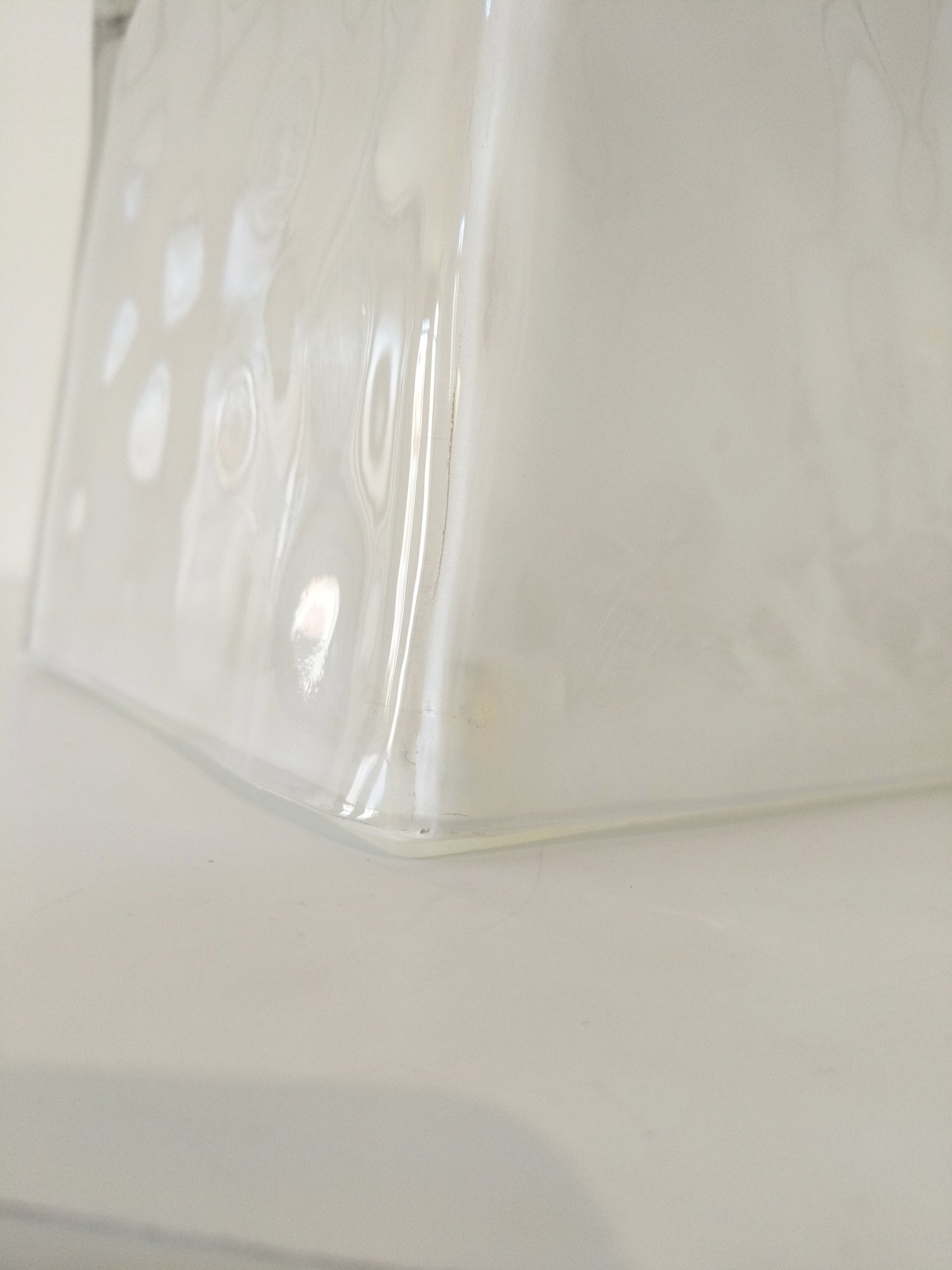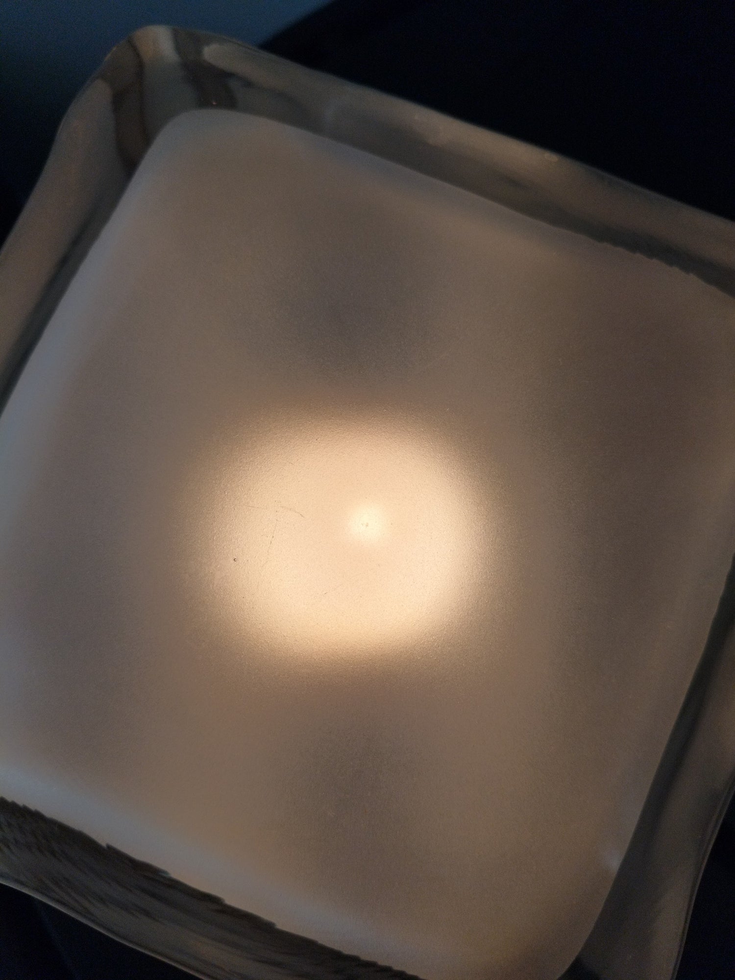 Verre très épais et base en plastique - très bel état, minimes marques d'usage visibles sur les photos (très légères rayures sur le dessus, fine ligne colorée sur une arête + petites marques en dessous et marques résistantes sur le câble) - +- 15cm de côté.