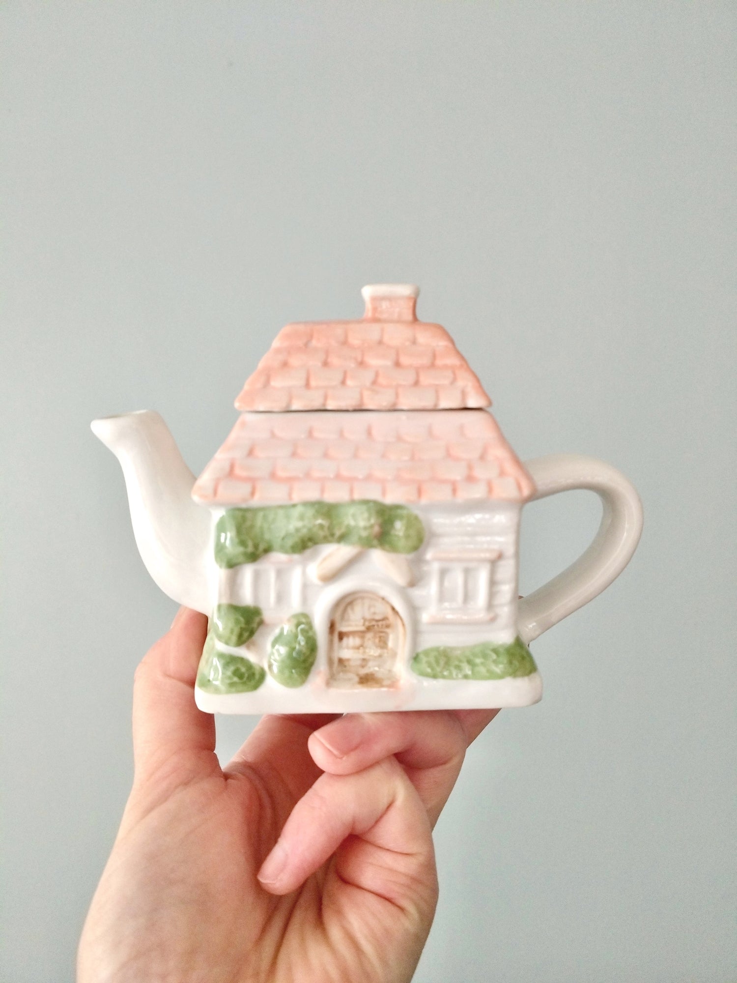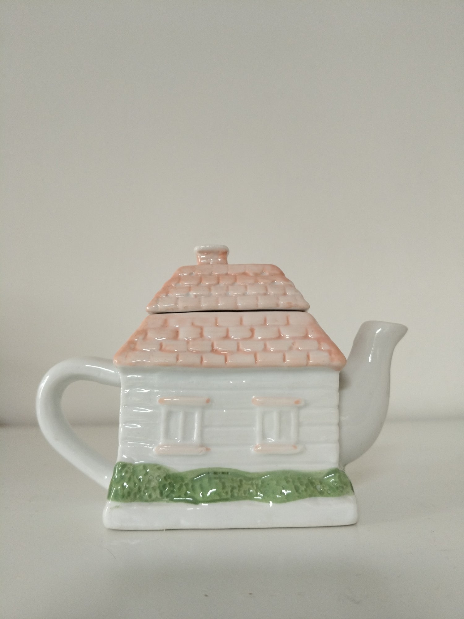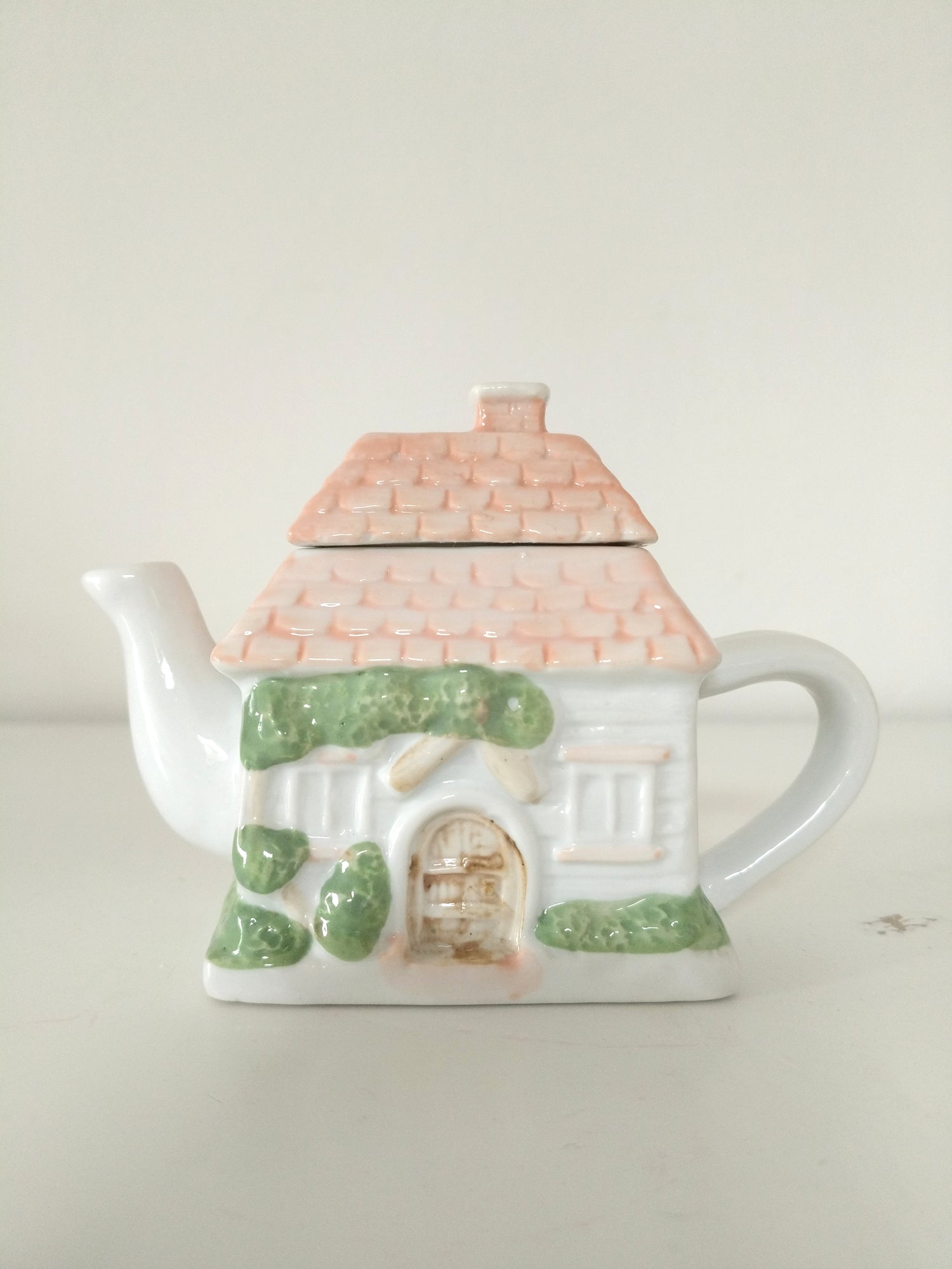 Céramique - super bel état - format riquiqui, elle sera décorative ou utilisée comme crémier : 8,3cm de longueur (sans la anse et sans le bec verseur) pour 10cm de hauteur (couvercle inclus)