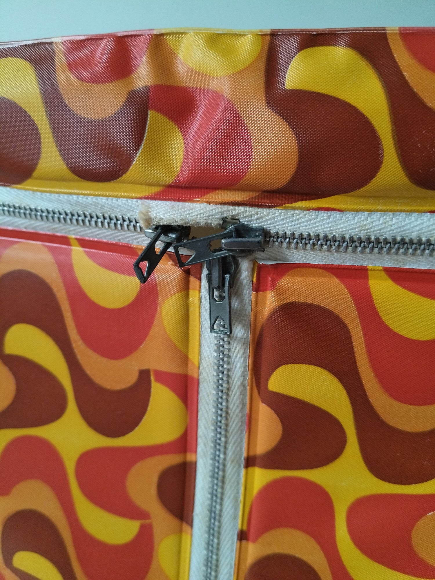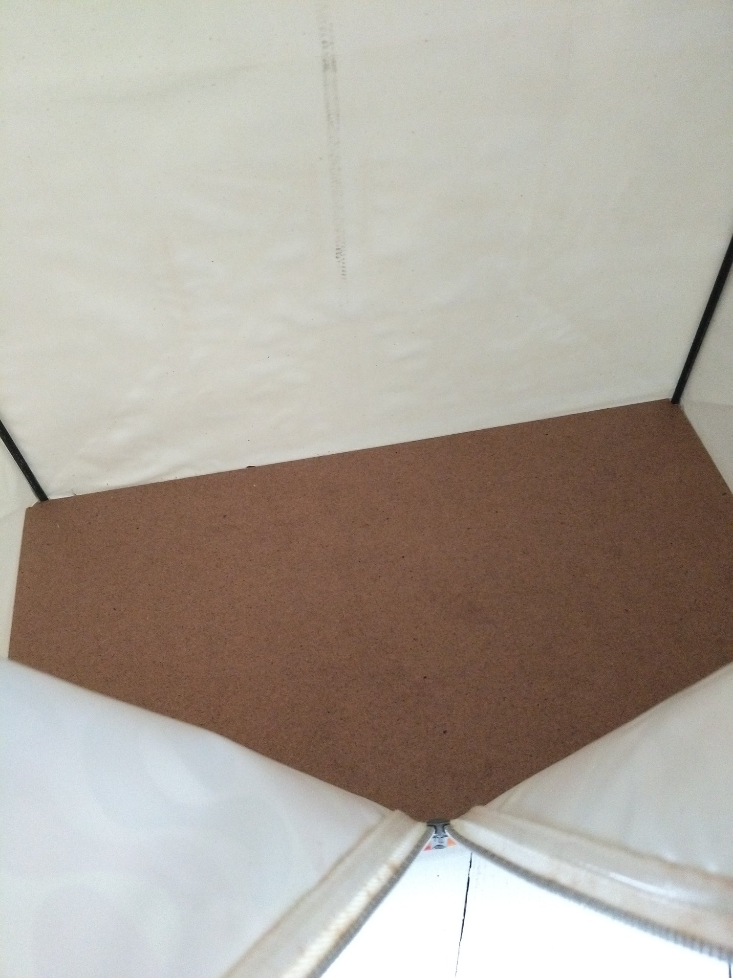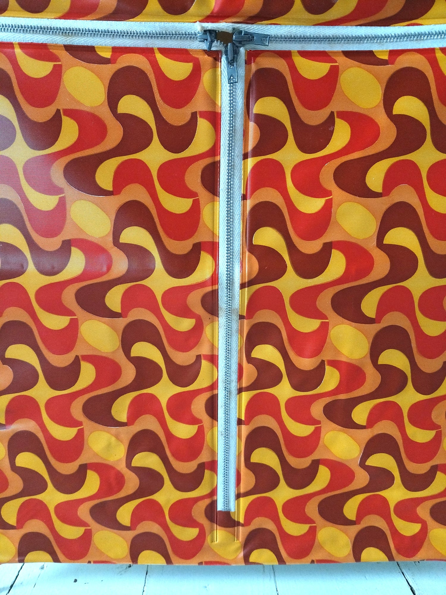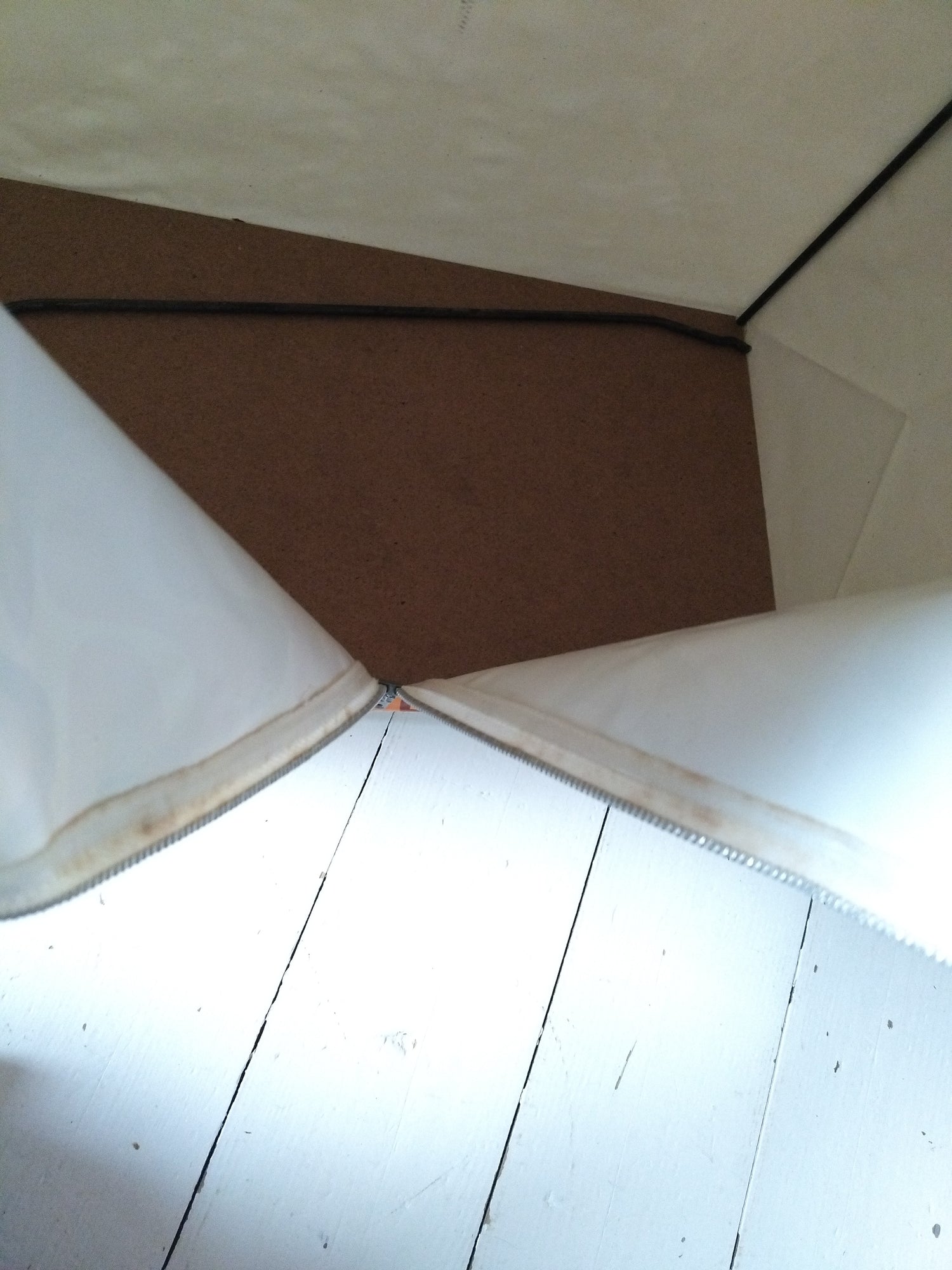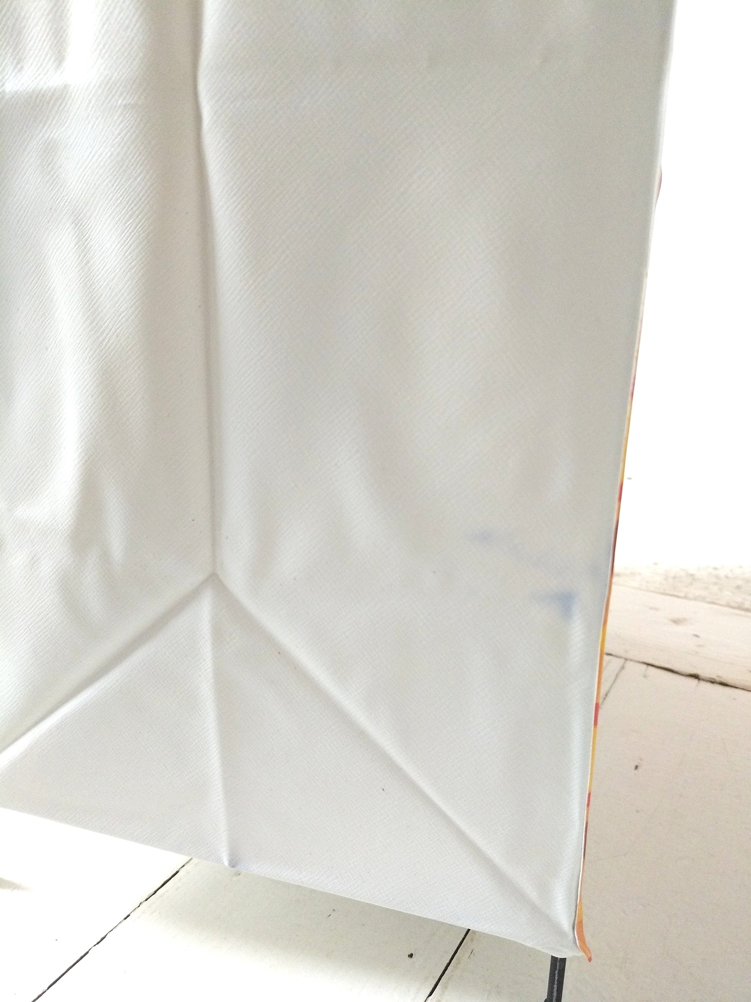 Structure métallique et bois, habillage plastifié - neuf et était emballé. Malgré tout, quelques petites marques de stockage et/ou fabrication, cf photos (dont : coton de la fermeture souillée, micro rupture solidifiée (gauche, bord tirette), 2 embouts de pieds fissurés mais ok pour les placer et ok placés). - 36,5 x 20cm pour 43,5cm de hauteur.