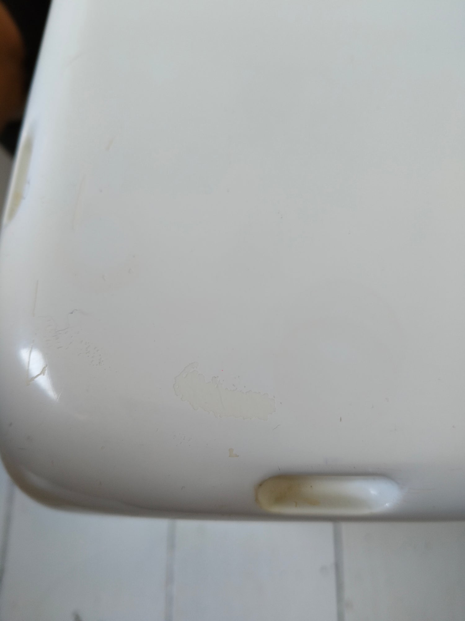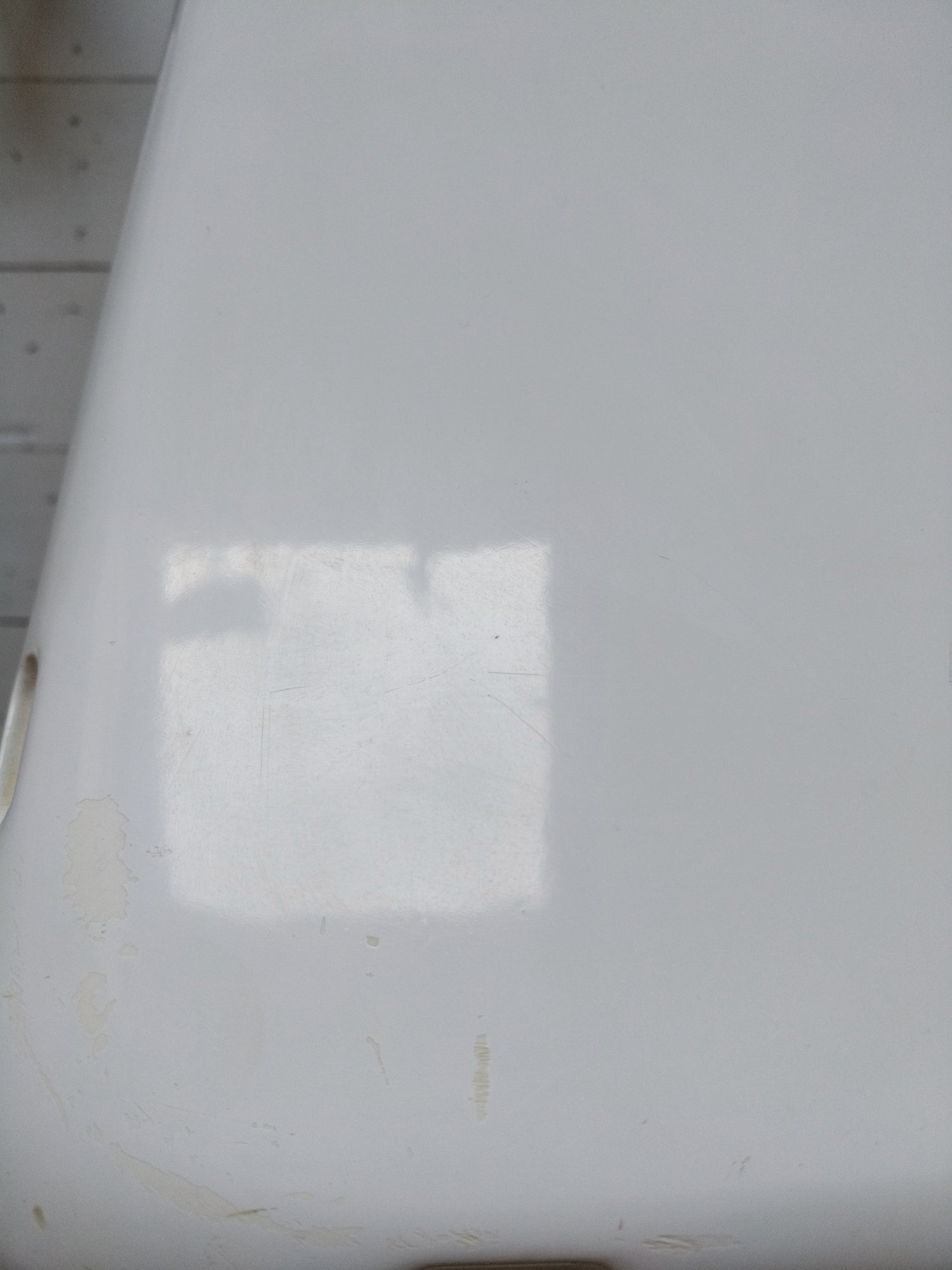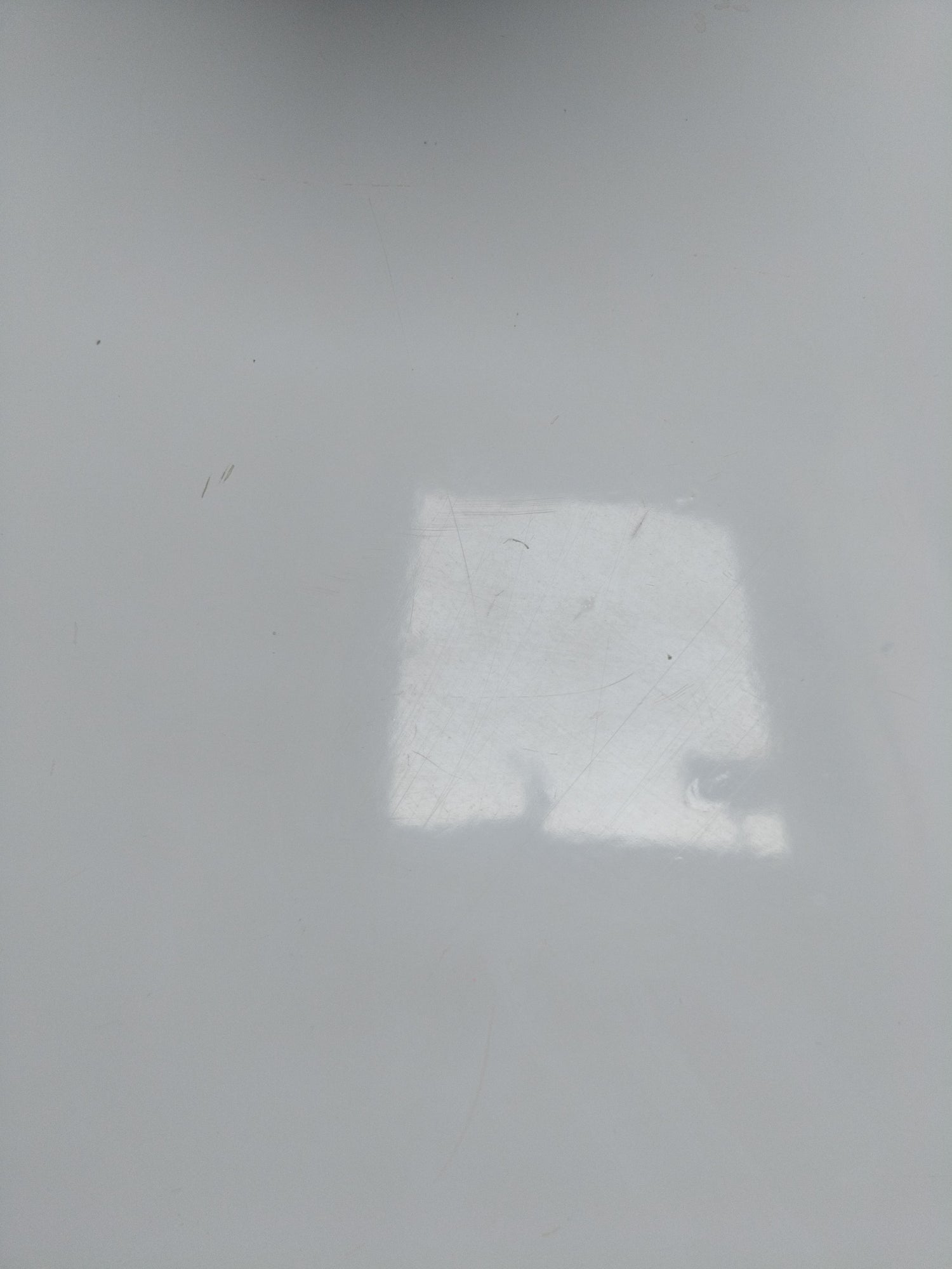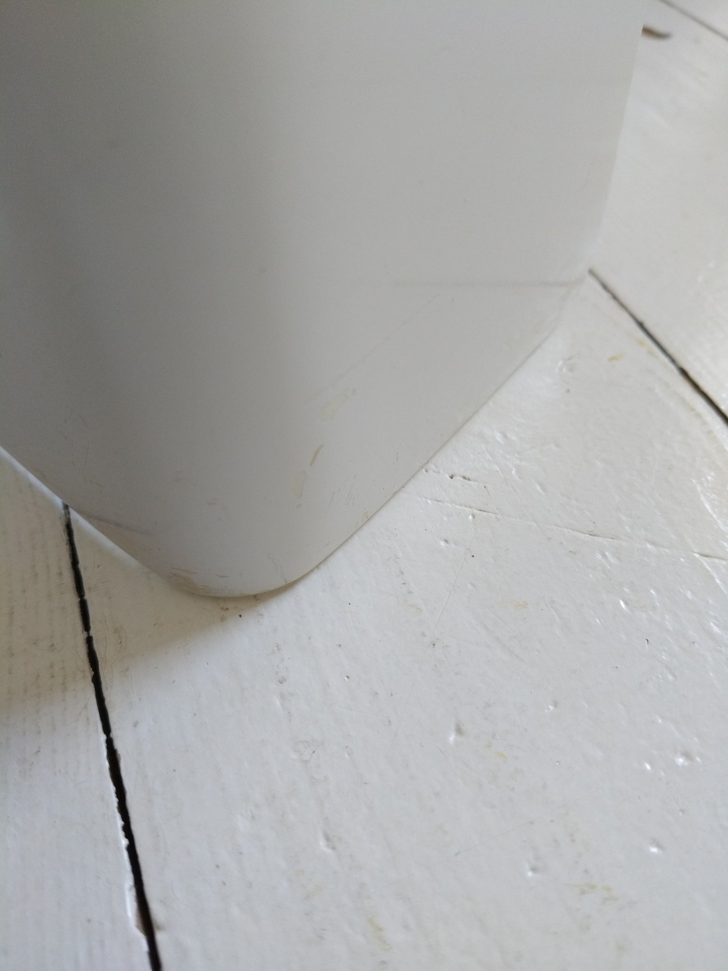 Fibre de verre - j'y ai passé beaucoup de temps et j'ai récupéré bon nombre de marques, même des brûlures! Il reste tout de même beaucoup de marques d'usage irréversibles dont micro fissure sur la base d'un pied (plus visible sur l'intérieur), cf photos. Encore très belle malgré cela, belle brillance, blanc bien blanc et en vrai, il faut déjà être bien près pour constater ses multiples signes du temps! Format 1 (c'est un petit format mais le plus grand des quatre produits) : 49,5cm de côté, 25cm de hauteur