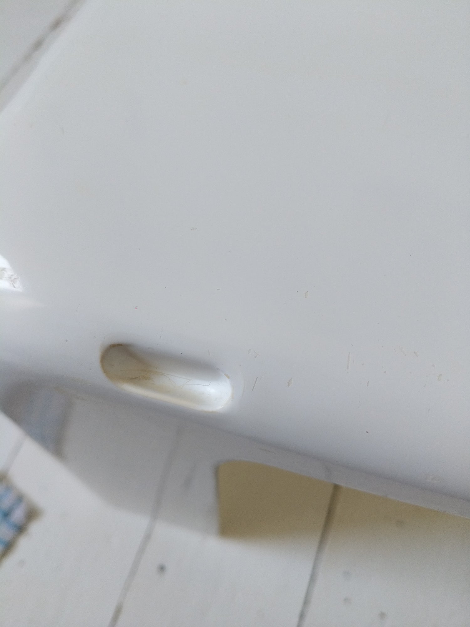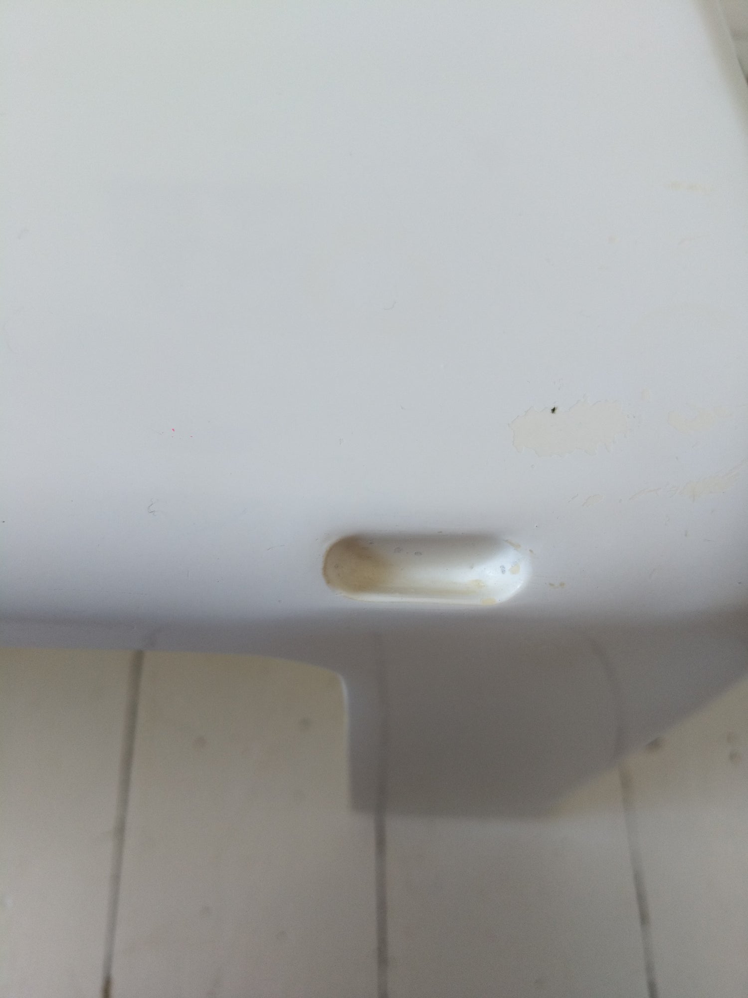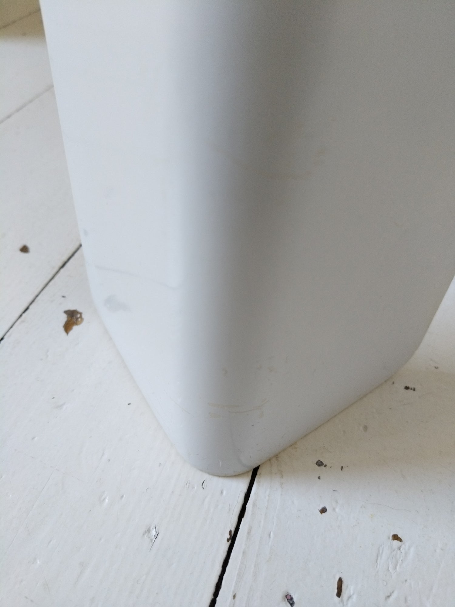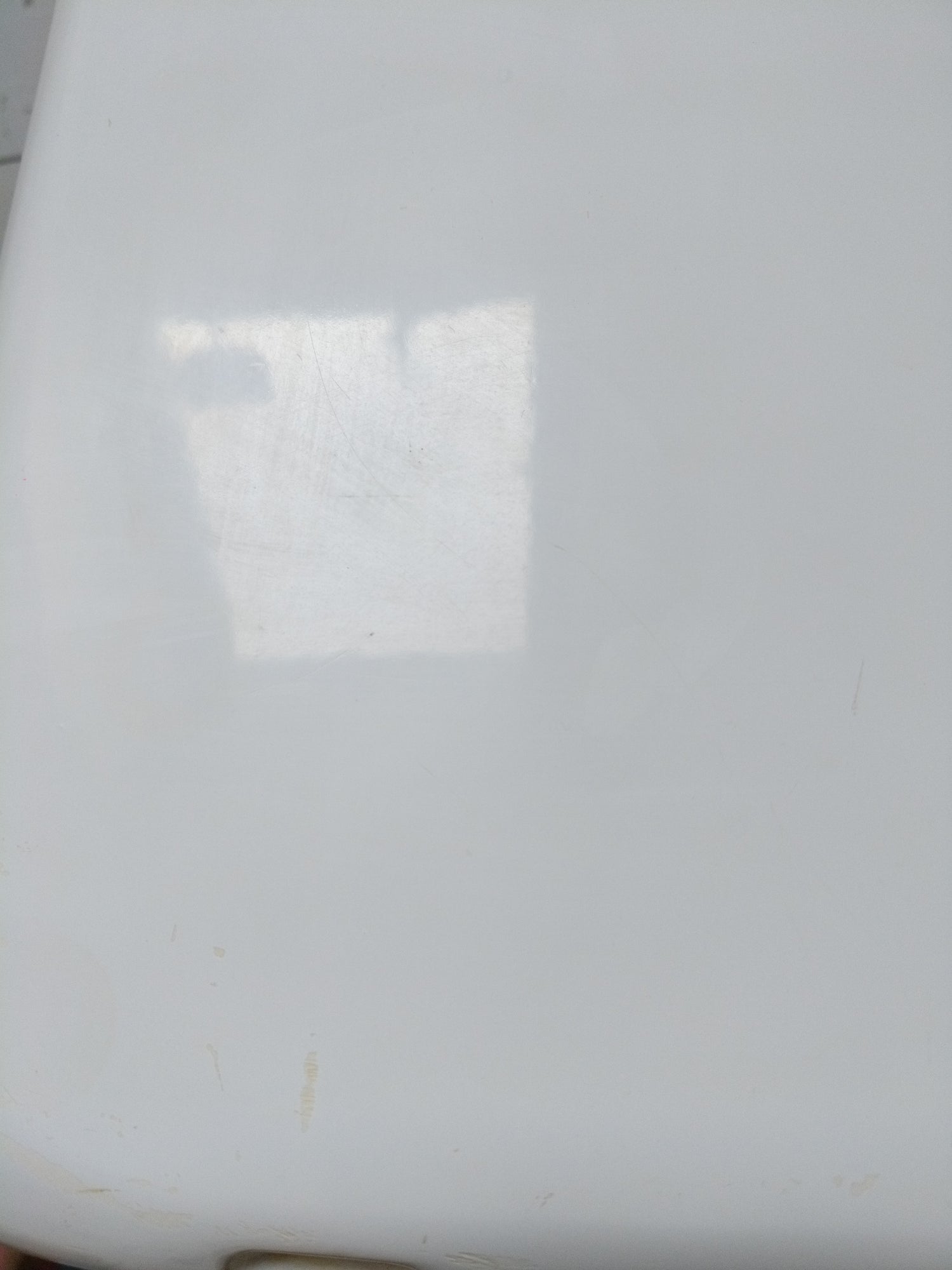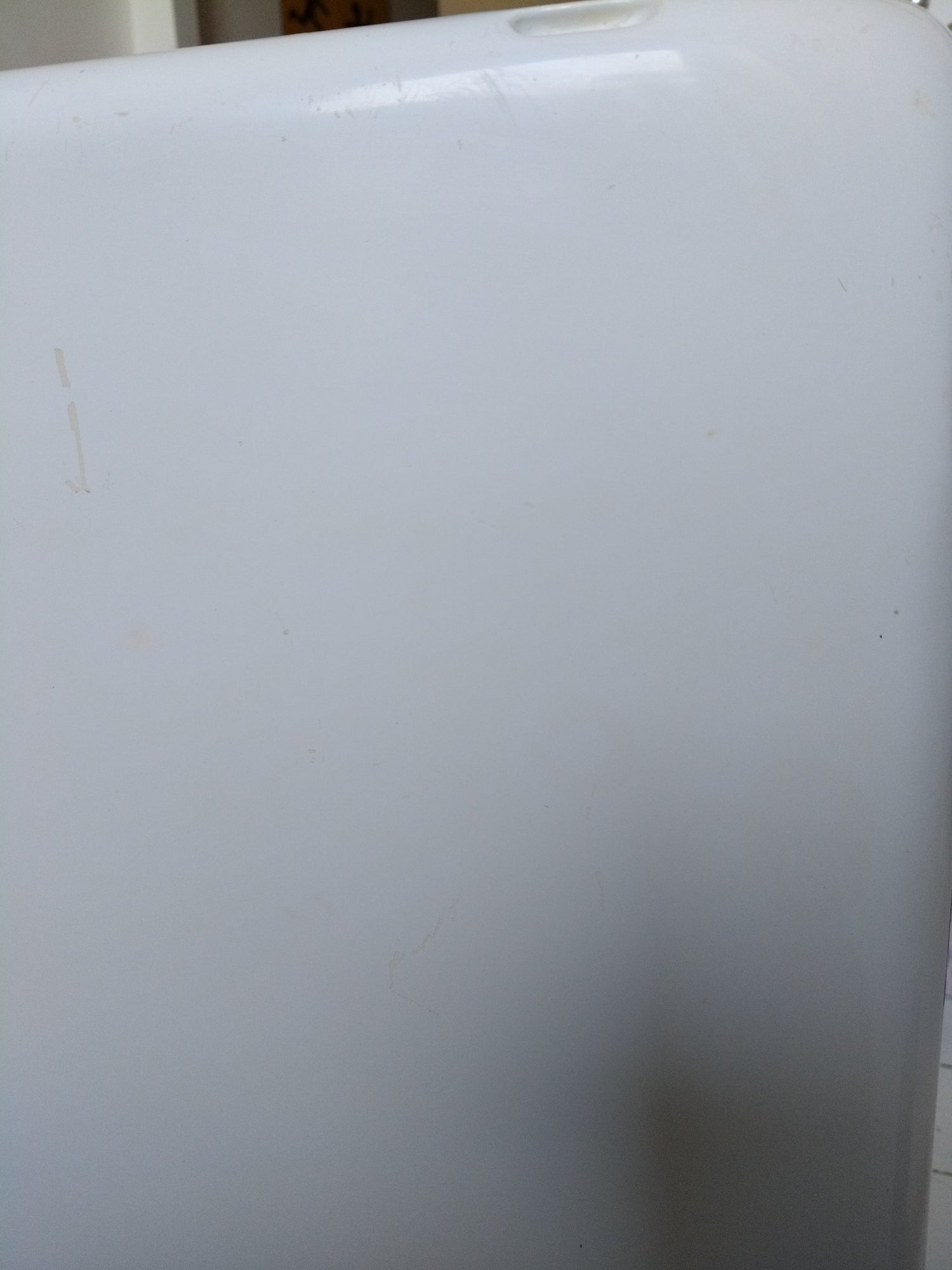 Fibre de verre - j'y ai passé beaucoup de temps et j'ai récupéré bon nombre de marques, même des brûlures! Il reste tout de même beaucoup de marques d'usage irréversibles dont micro fissure sur la base d'un pied (plus visible sur l'intérieur), cf photos. Encore très belle malgré cela, belle brillance, blanc bien blanc et en vrai, il faut déjà être bien près pour constater ses multiples signes du temps! Format 1 (c'est un petit format mais le plus grand des quatre produits) : 49,5cm de côté, 25cm de hauteur