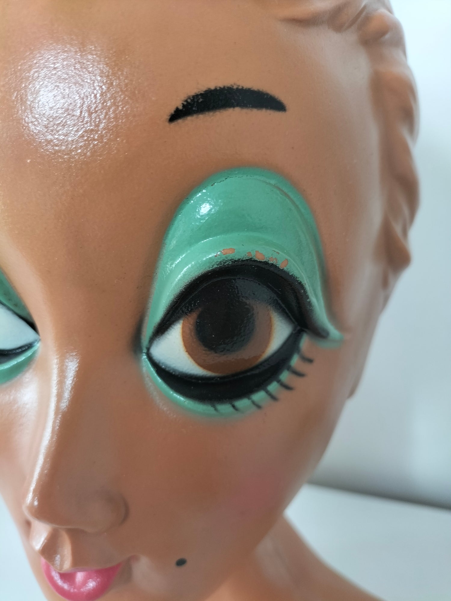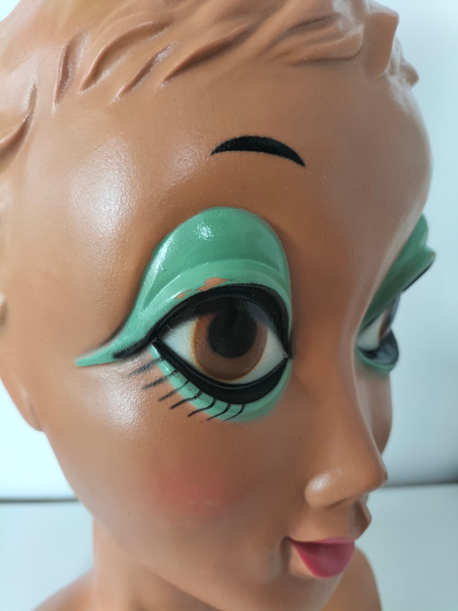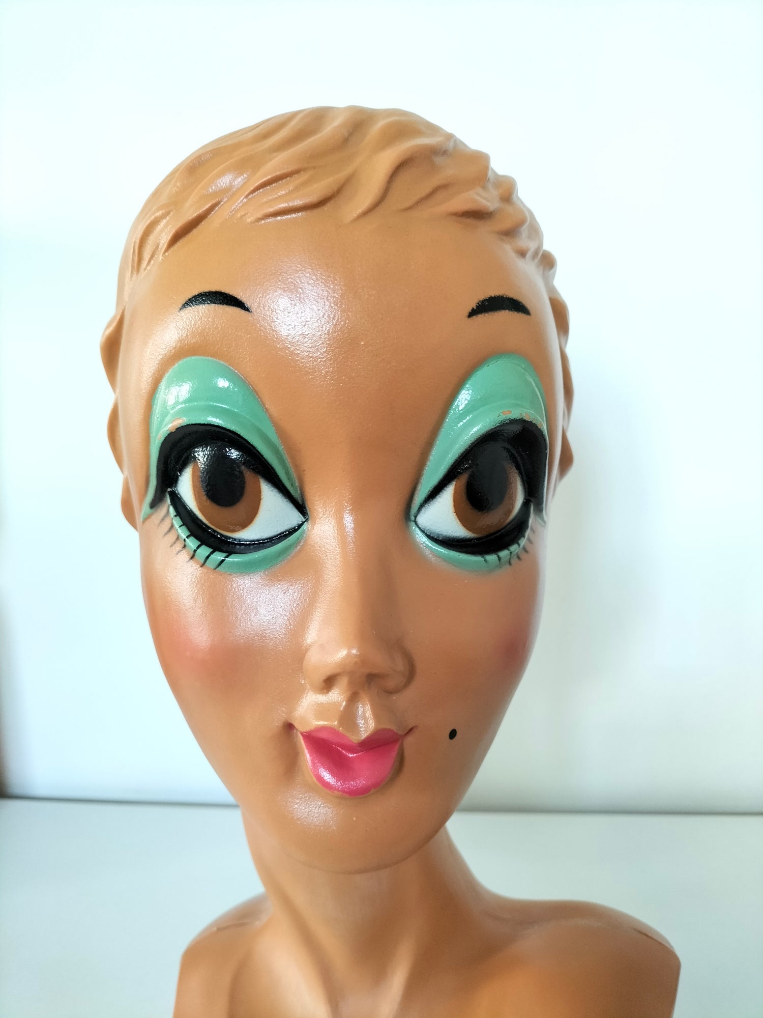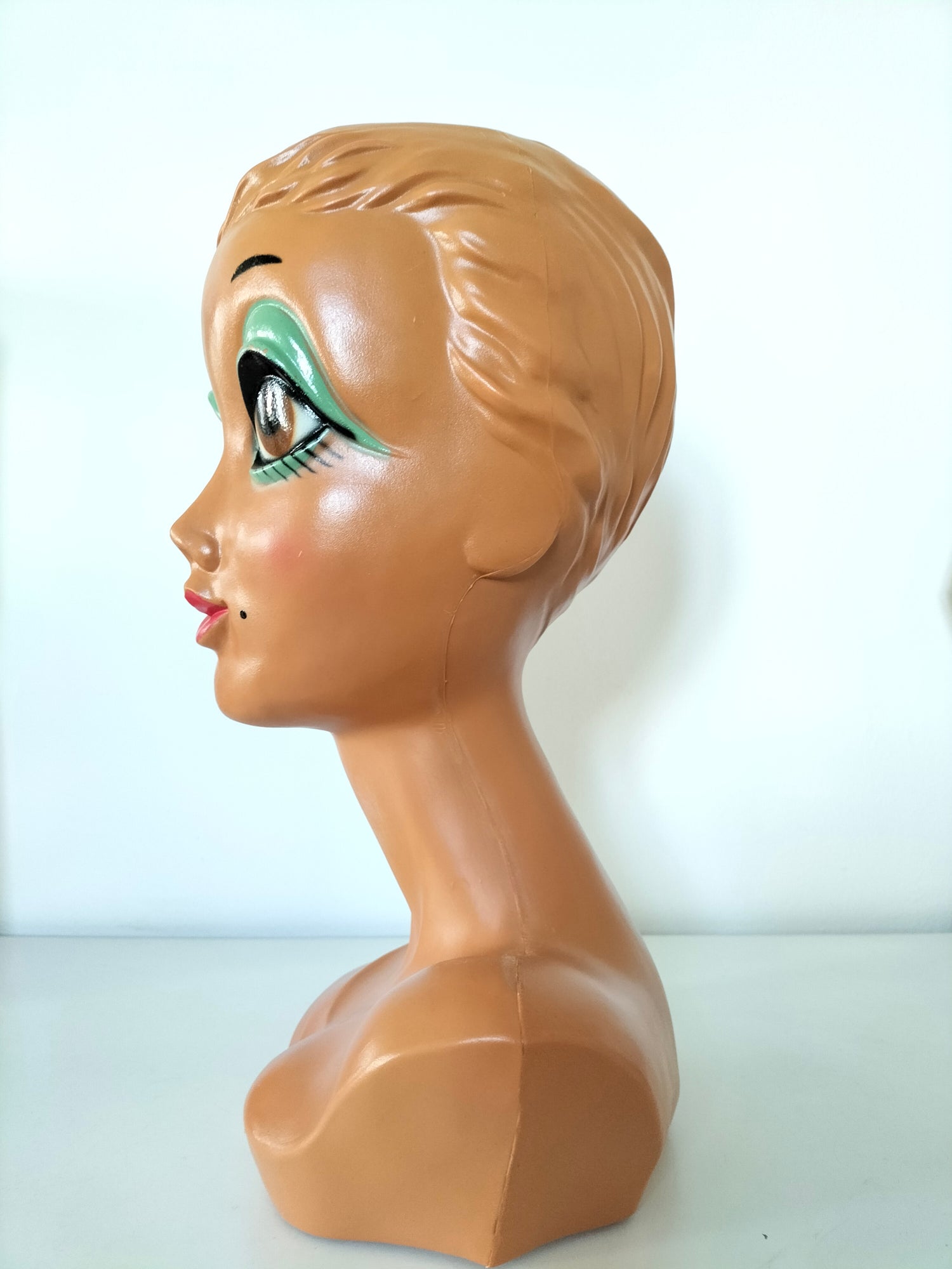 Superbe tête à chapeau "Twiggy", inspirée de la magnifique et célèbre mannequin des années sixties de son vrai nom, Lesley Hornby!