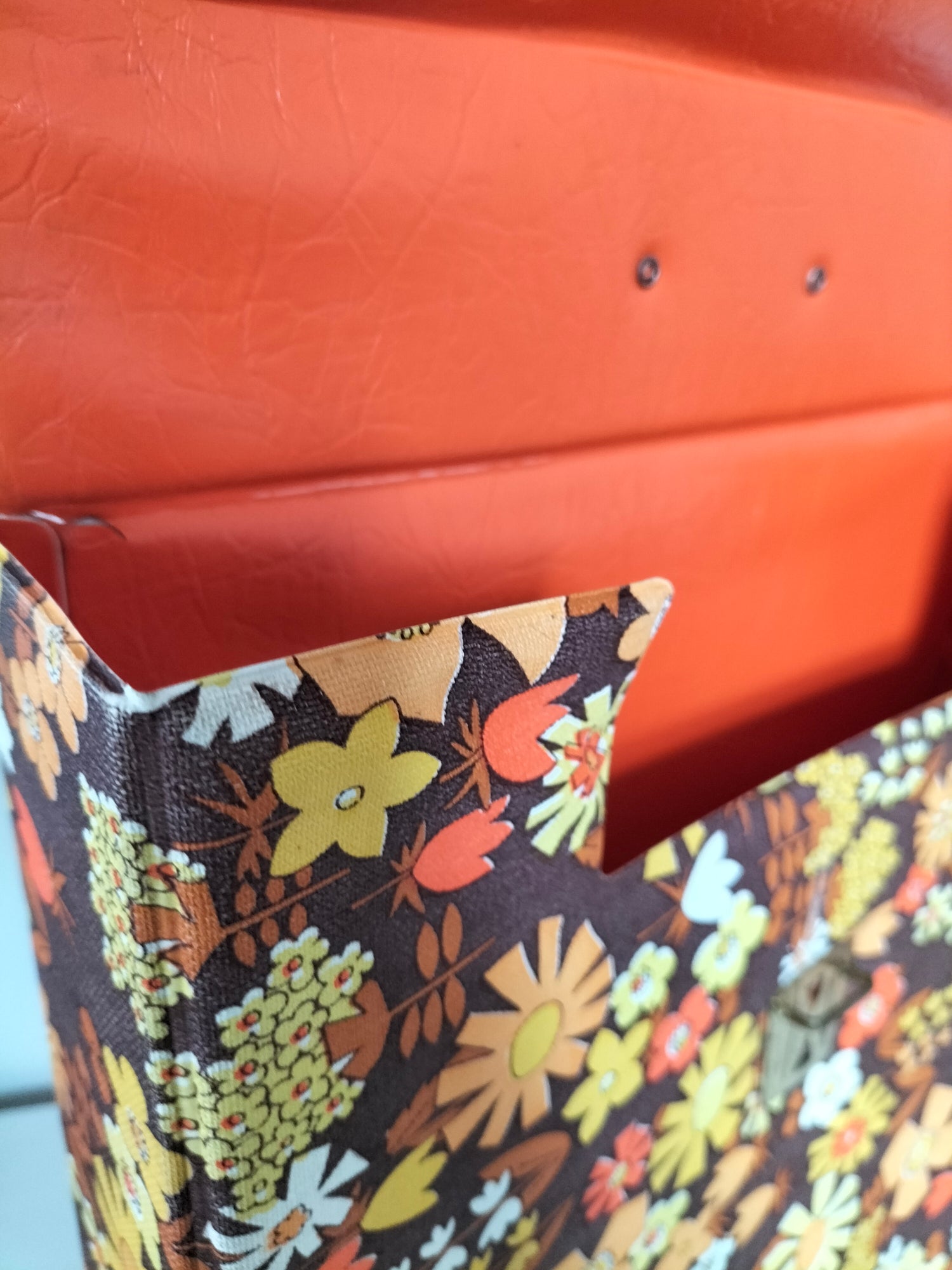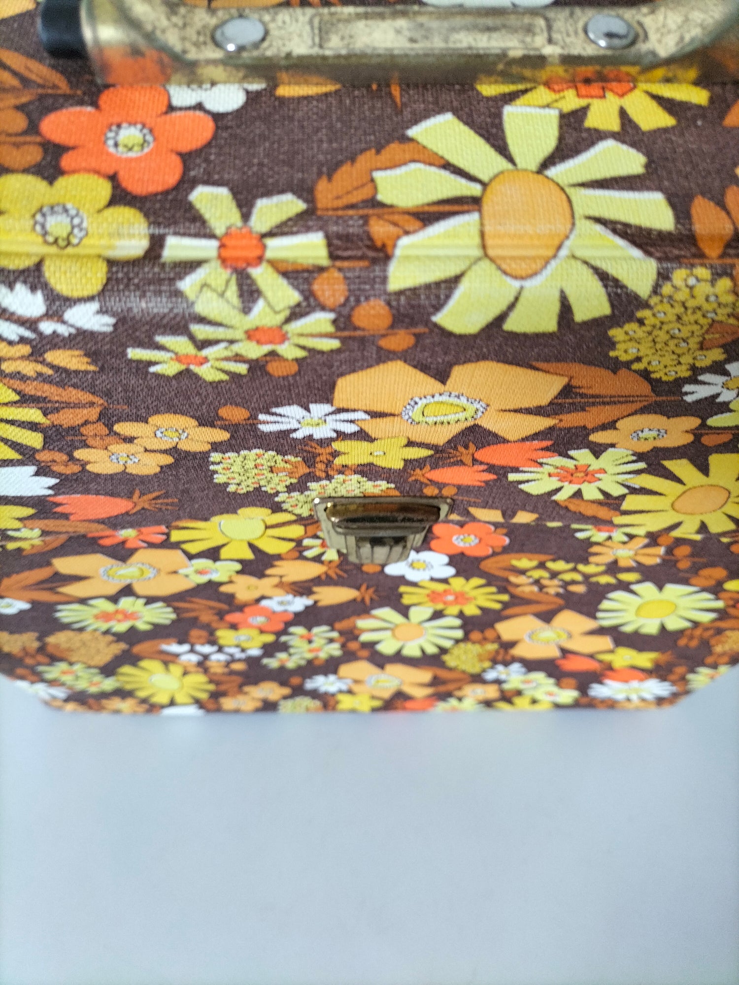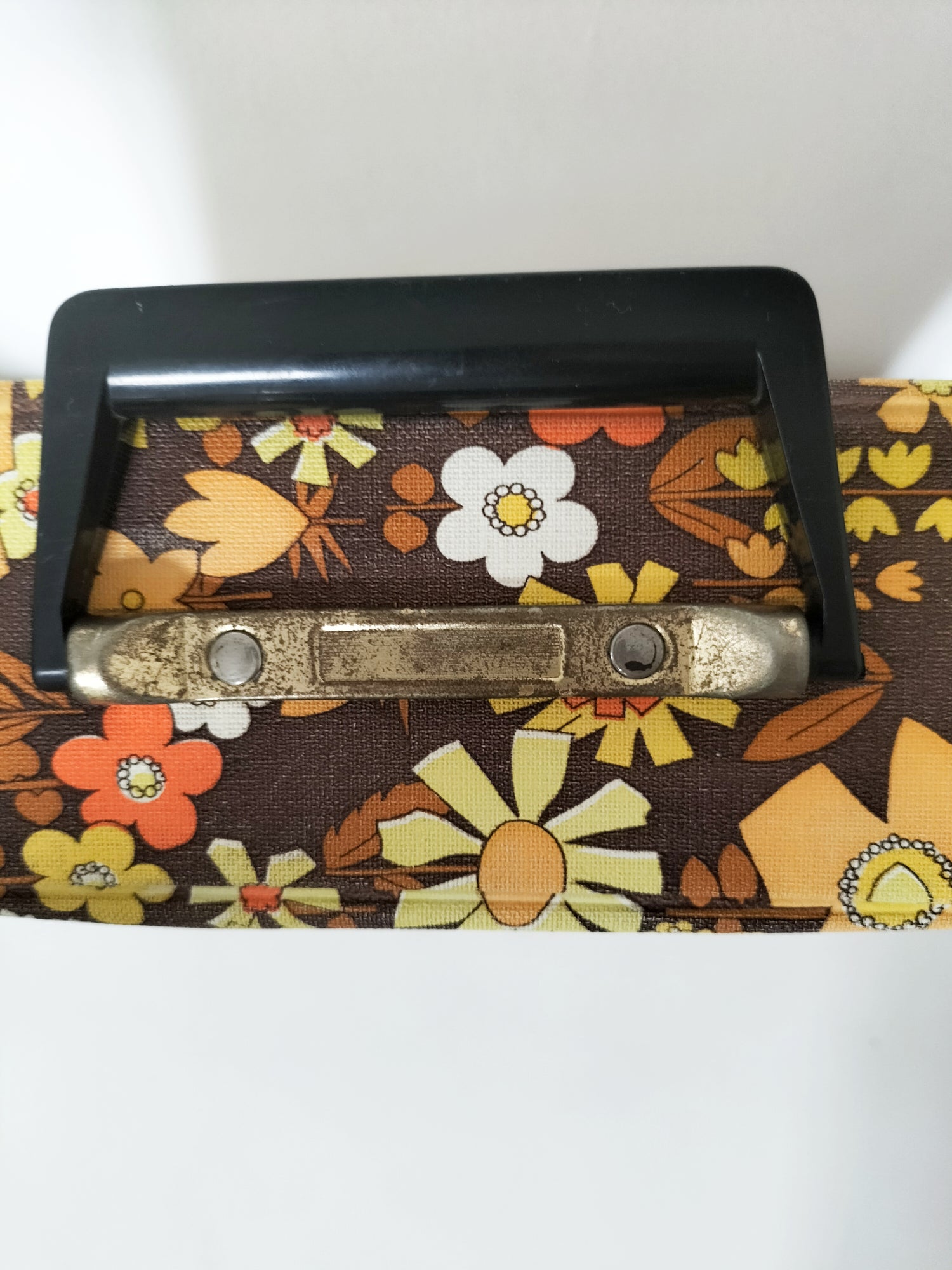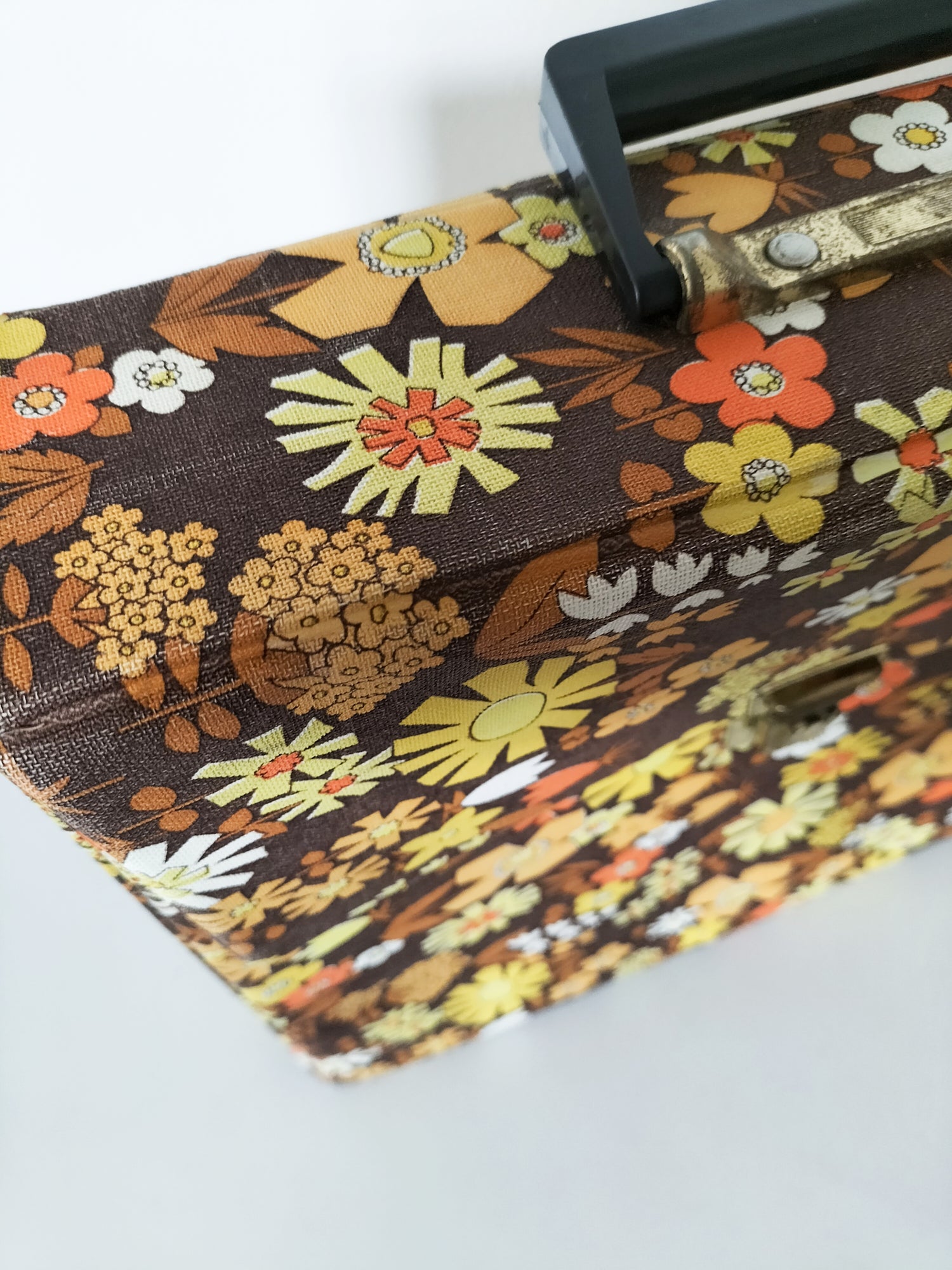 32,5x32 cm et 7,3cm de profondeur - elle a des signes d'usage visibles en photos et ce qui a pu être solidifié l'a été afin d'éviter toute aggravation et que le rendu soit plus joli (fragilités du vinyle au niveau des pliures à l'arrière).